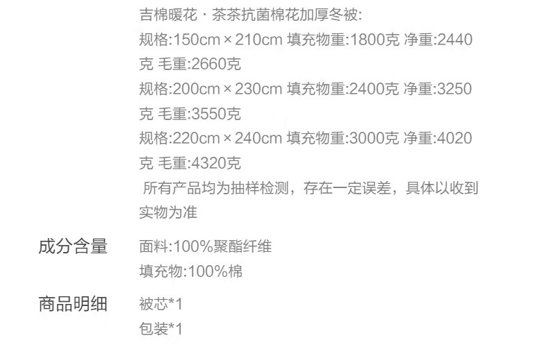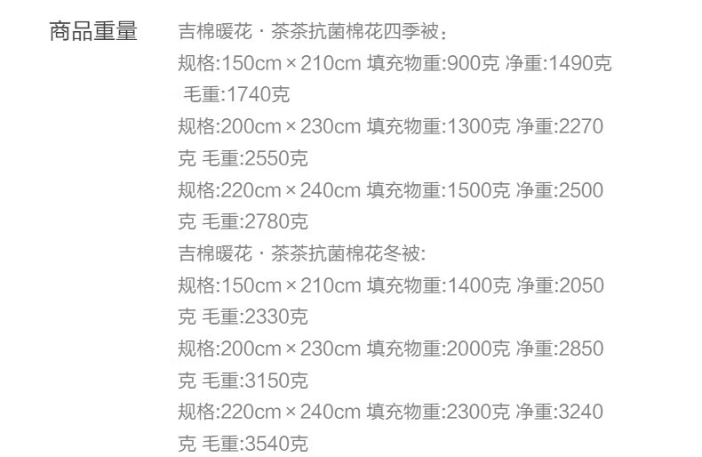 百丽丝被子100新疆棉花被母婴A类被子四季被冬季被子加厚保暖 吉棉暖花·茶茶抗菌棉花四季被 150cm*210cm