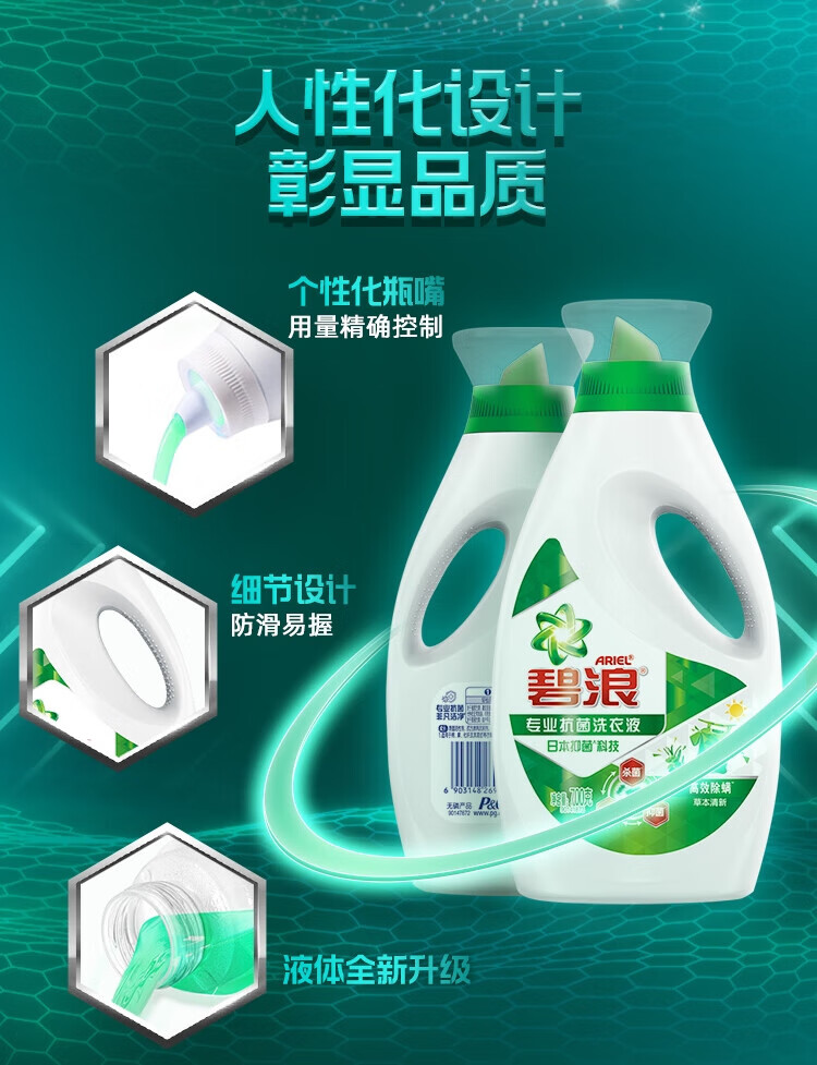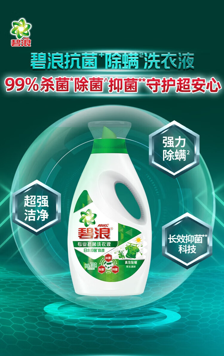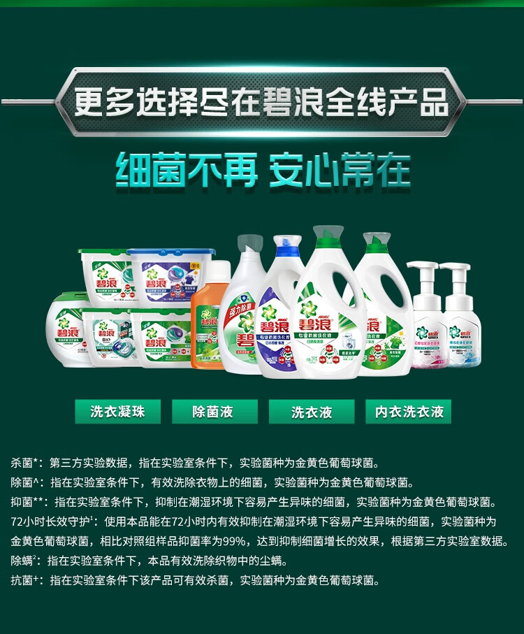 碧浪洗衣液700g高效持久留香家庭装手洗试用装 1瓶 700g 高效除螨