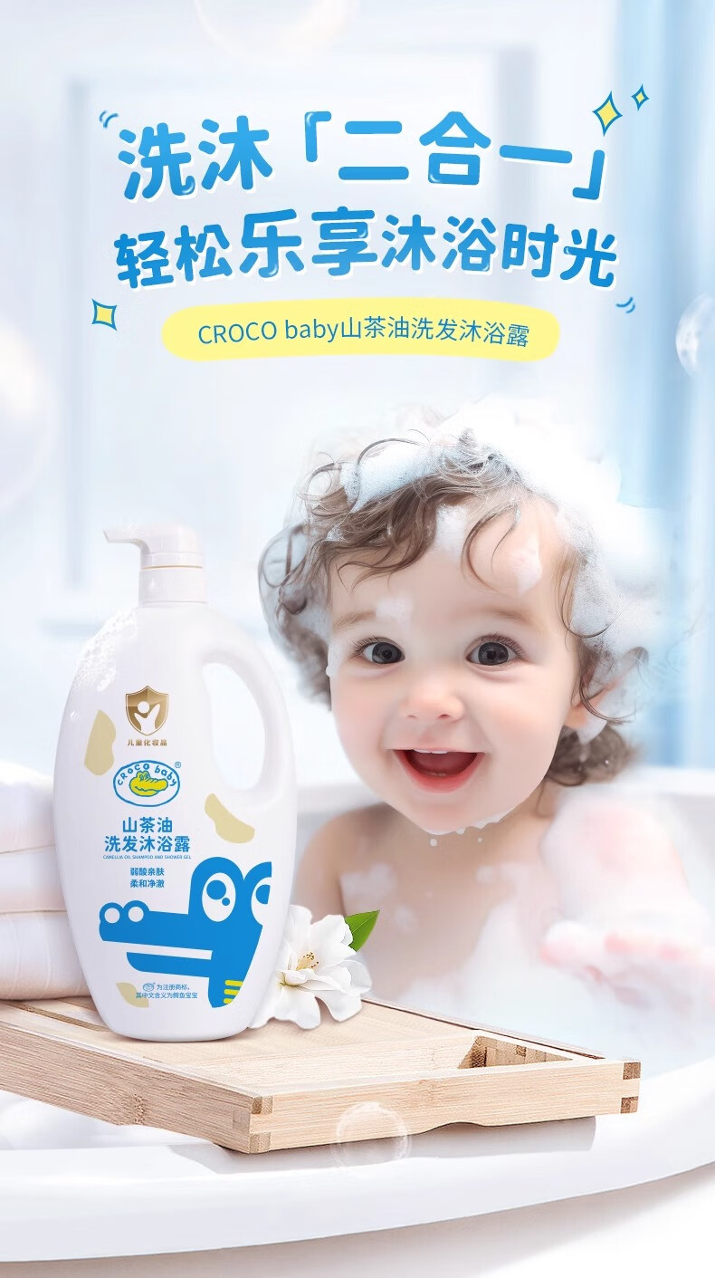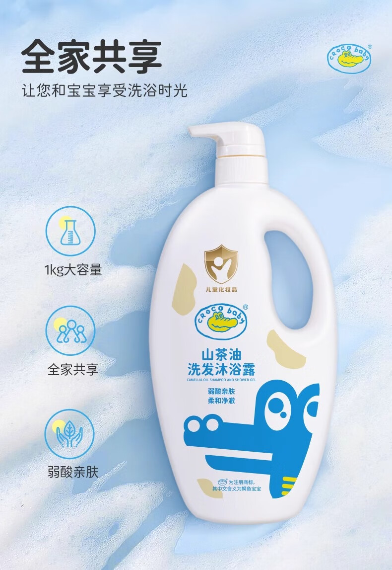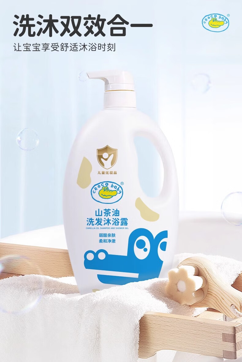 鳄鱼宝宝山茶油洗发沐浴露二合一婴儿童新生儿洗头洗澡专用弱酸温和氨基酸 山茶油洗发沐浴露1000g*1瓶