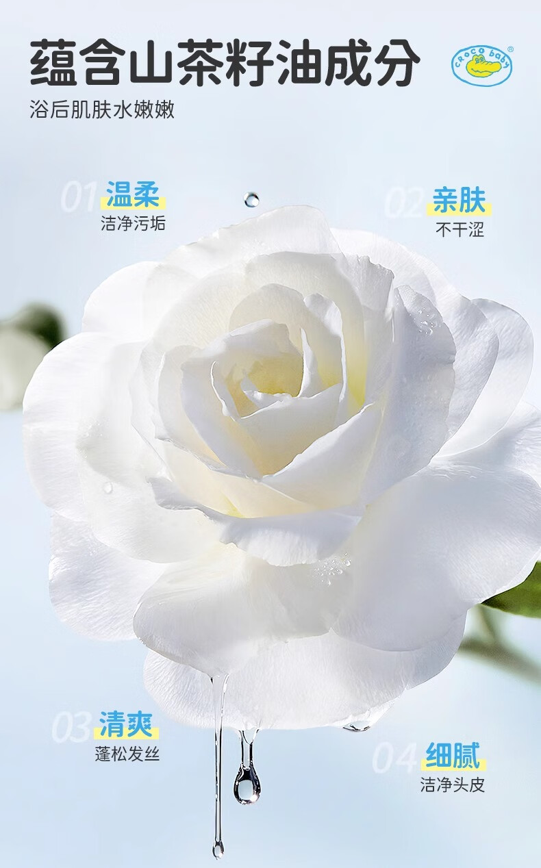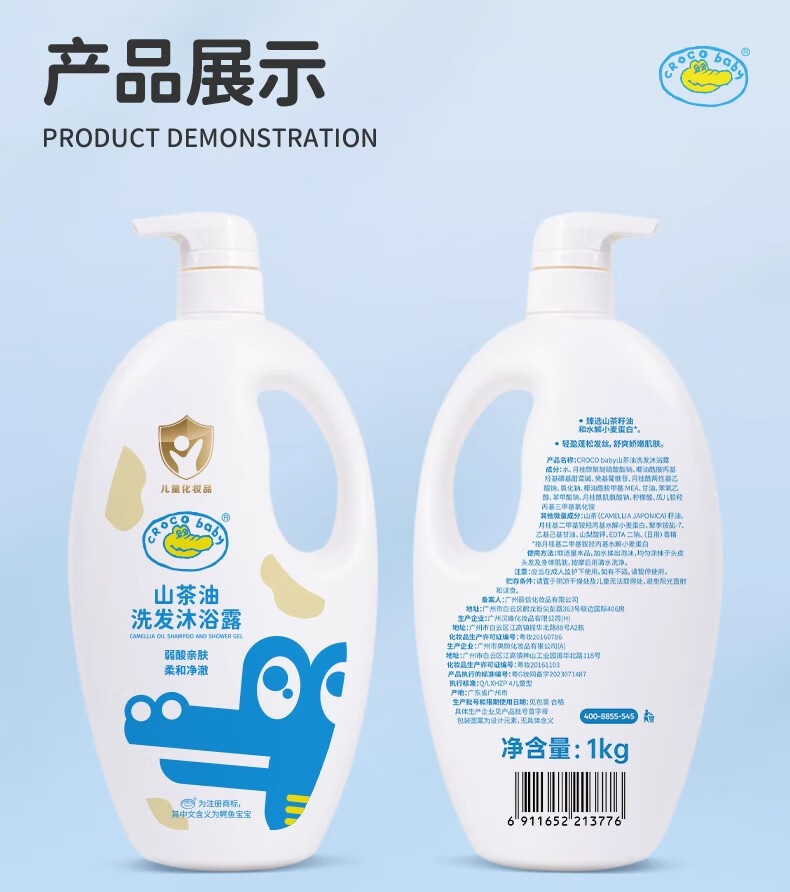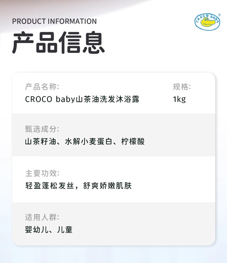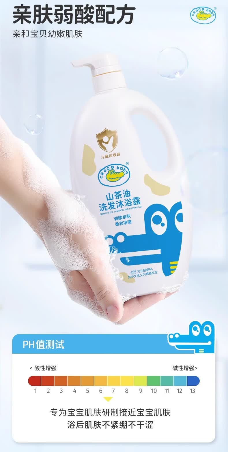 鳄鱼宝宝山茶油洗发沐浴露二合一婴儿童新生儿洗头洗澡专用弱酸温和氨基酸 山茶油洗发沐浴露1000g*1瓶