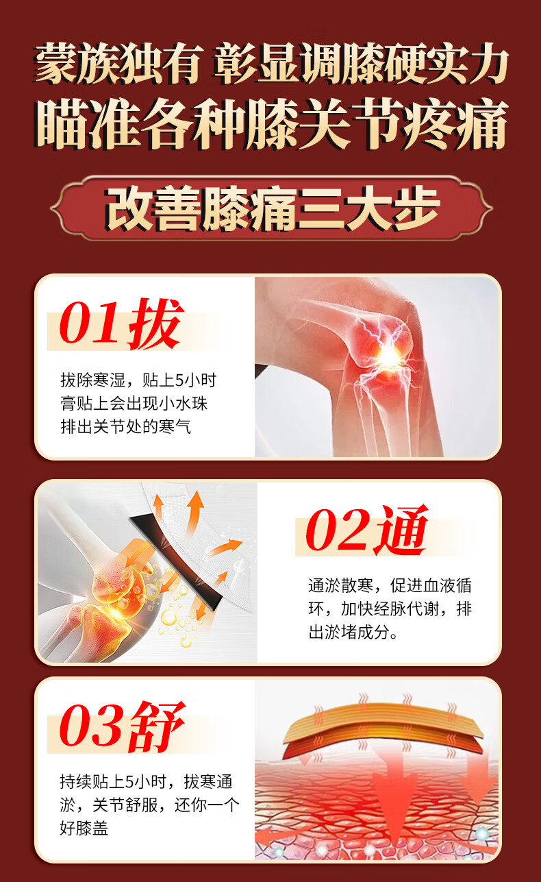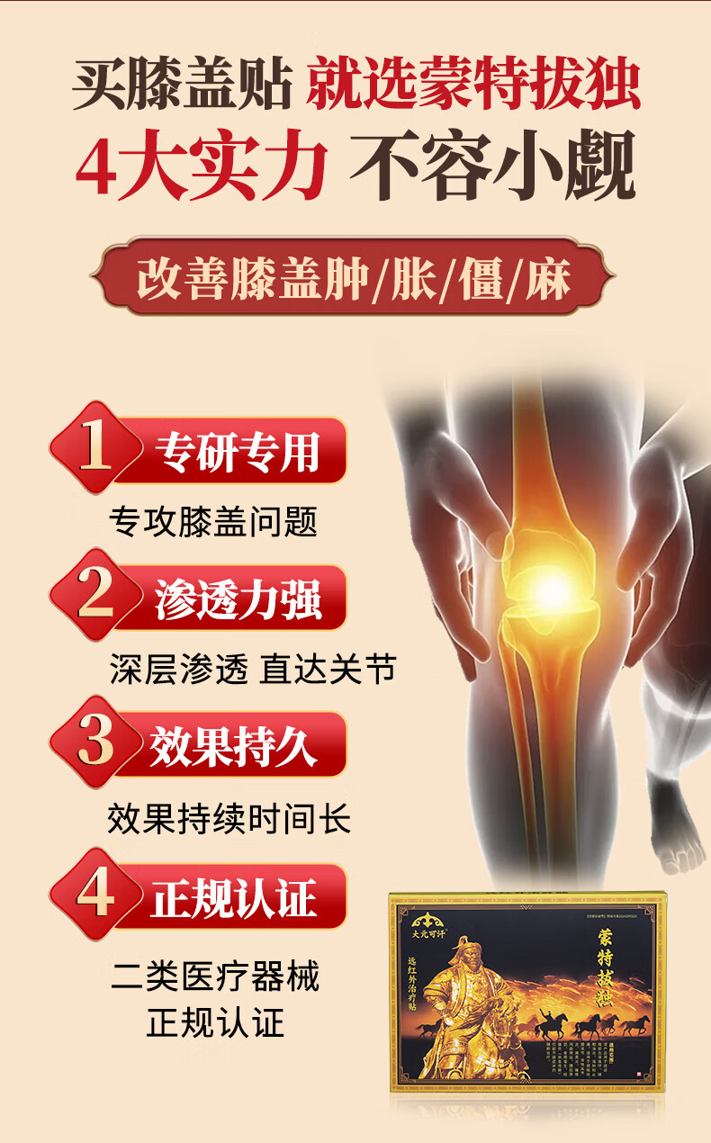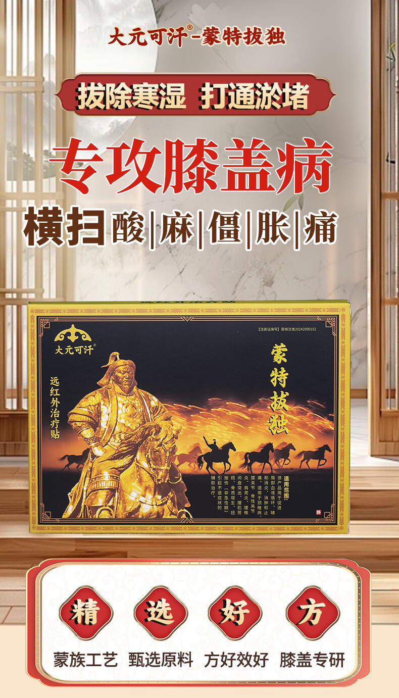 大元可汗蒙特拔独贴 厂家直发 专攻膝盖腰颈肩疼痛关节炎旗舰拔独贴 4盒巩固装【多年反复】超值