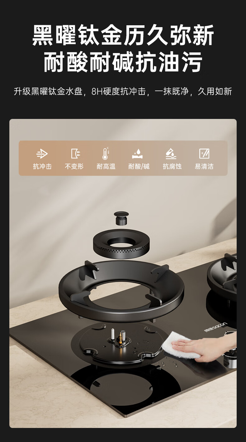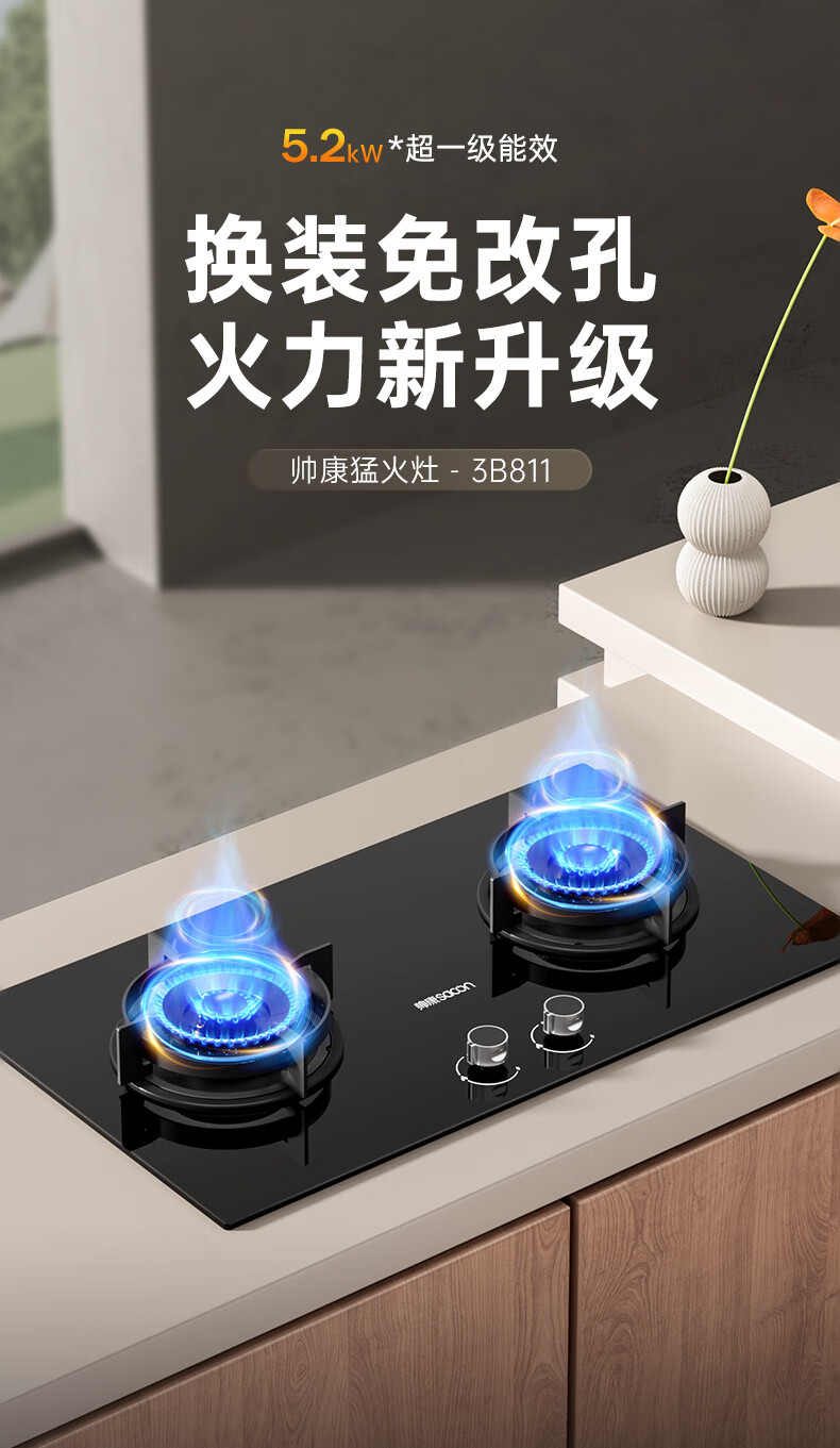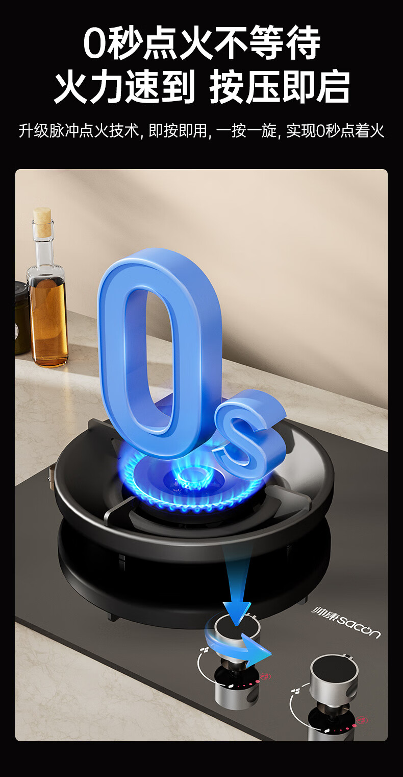 帅康(Sacon)燃气灶煤气灶铜火盖双灶天然气台嵌两用5.2kW双边定时灶免改孔烟灶联动9B828/9G826/9B868Max 5.2kW双边定时联动灶9B828 天然气