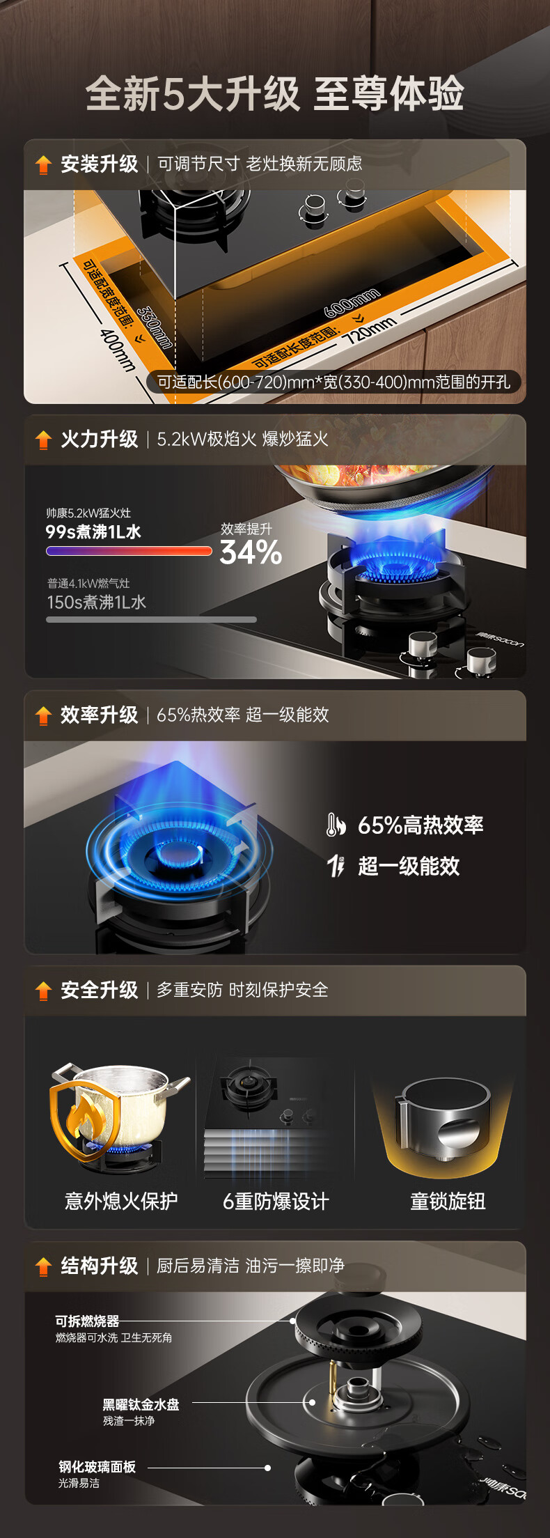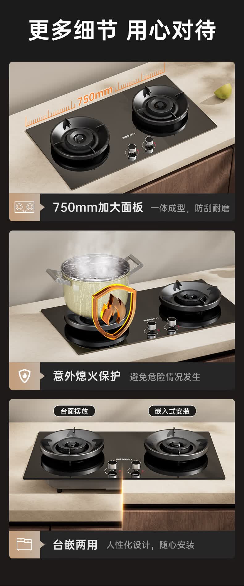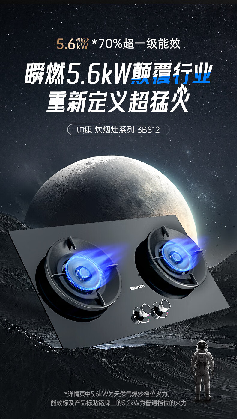 帅康(Sacon)燃气灶煤气灶铜火盖双灶天然气台嵌两用5.2kW双边定时灶免改孔烟灶联动9B828/9G826/9B868Max 5.2kW双边定时联动灶9B828 天然气