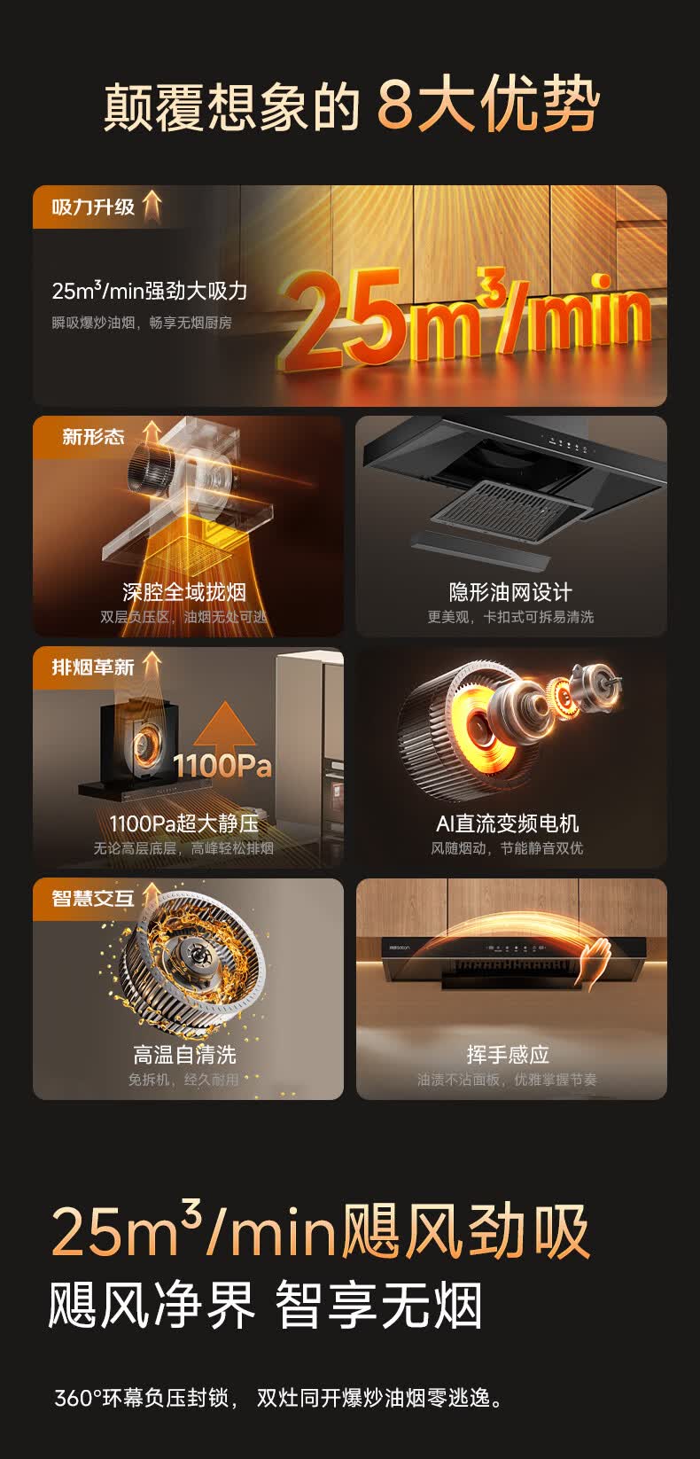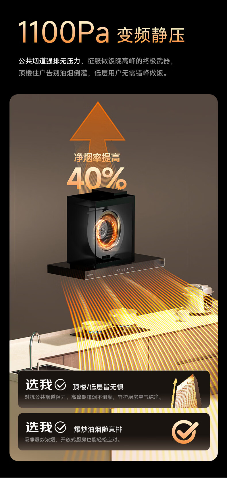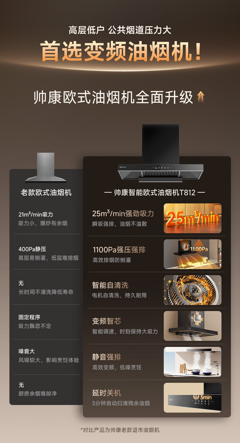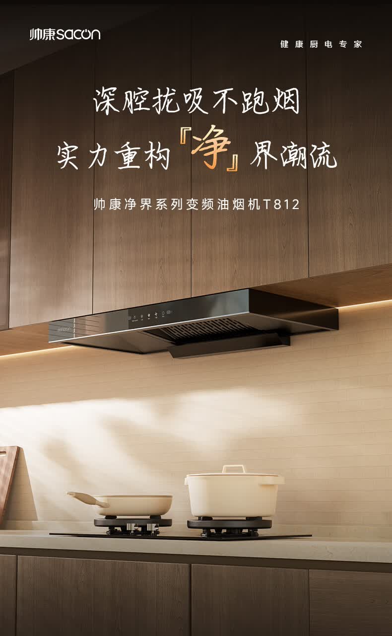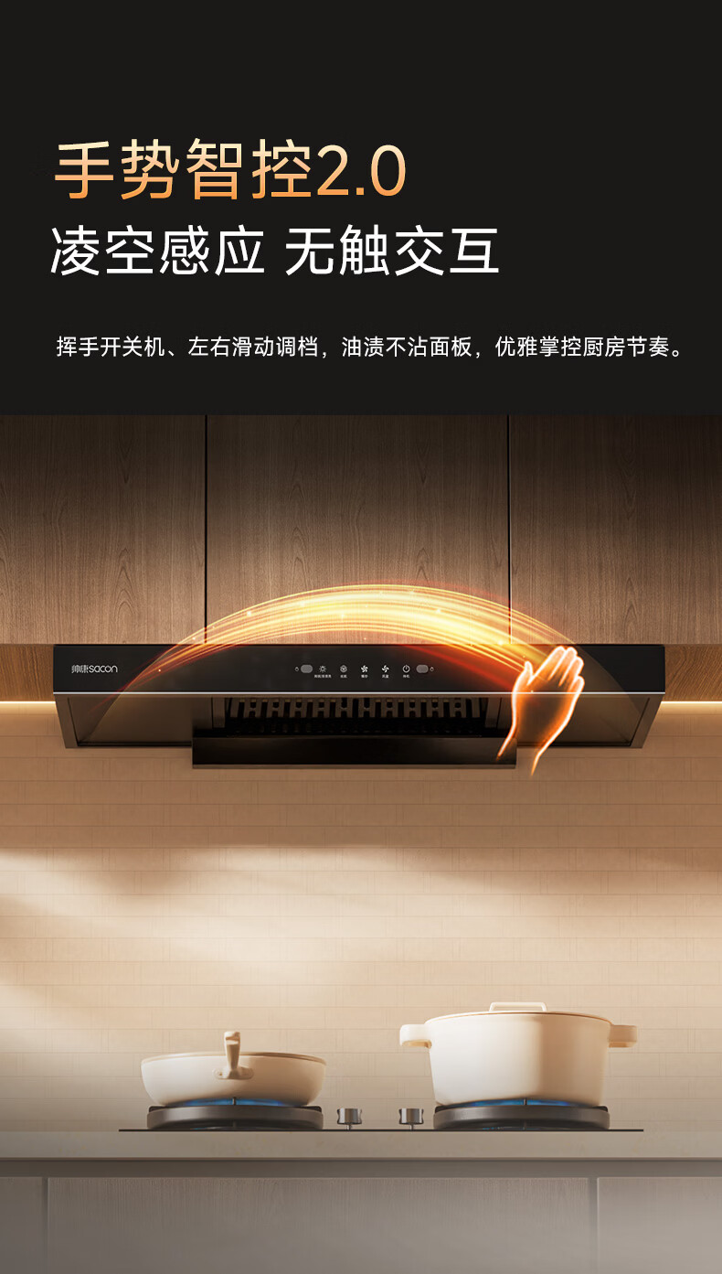 帅康(Sacon)抽吸排油烟机家用顶吸欧式吸油烟机变频1100Pa大风压25立方大吸力油烟机挥手智控抽烟机T812 【单烟机】25风量性价比油烟机 天然气