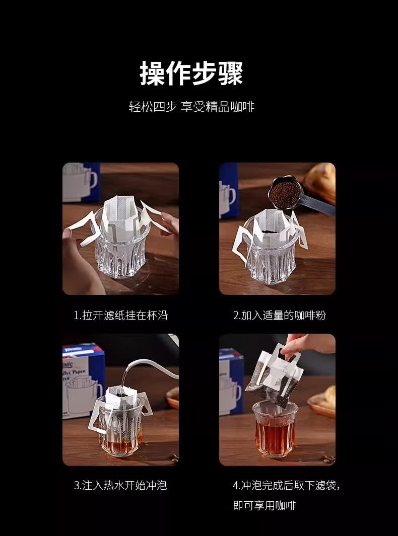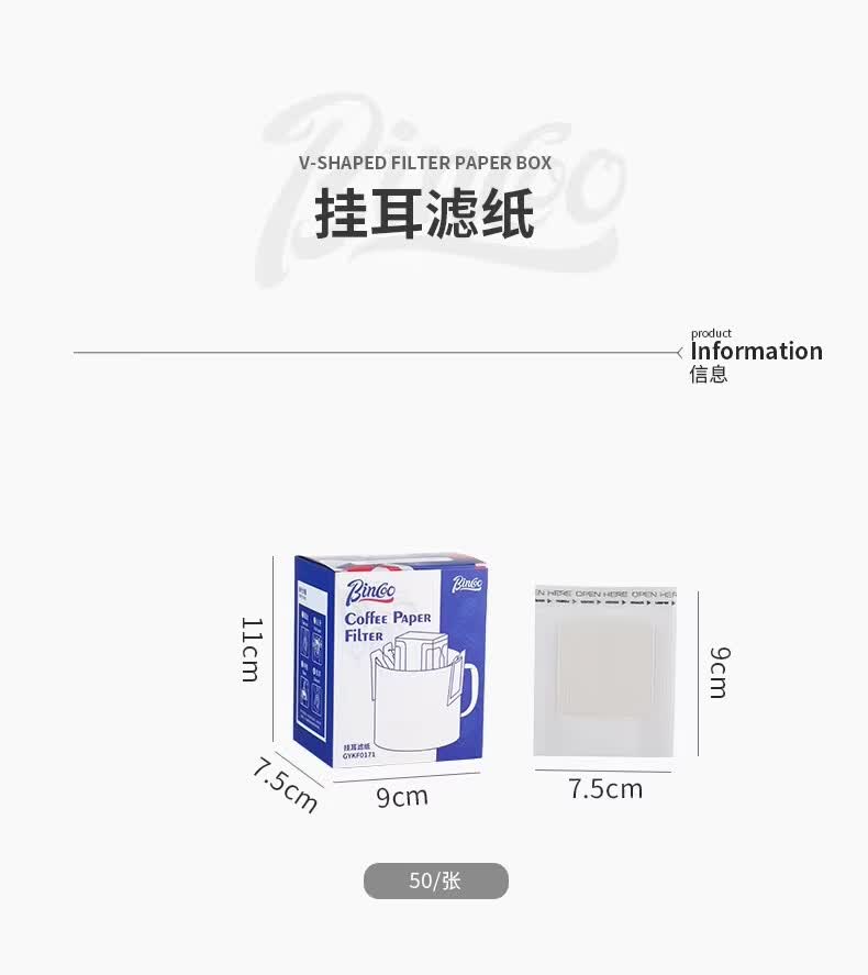 Bincoo挂耳滤纸咖啡过滤袋木质纤维手冲咖啡过滤纸盒装家用办公室 挂耳滤袋*50枚