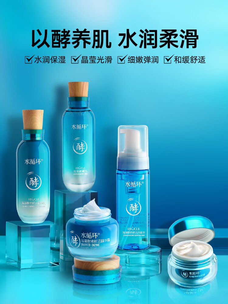水循环(REOCLE)海藻酵素护肤套装洁面水乳霜眼霜保湿化妆品专柜 两件套滋润(水+乳)