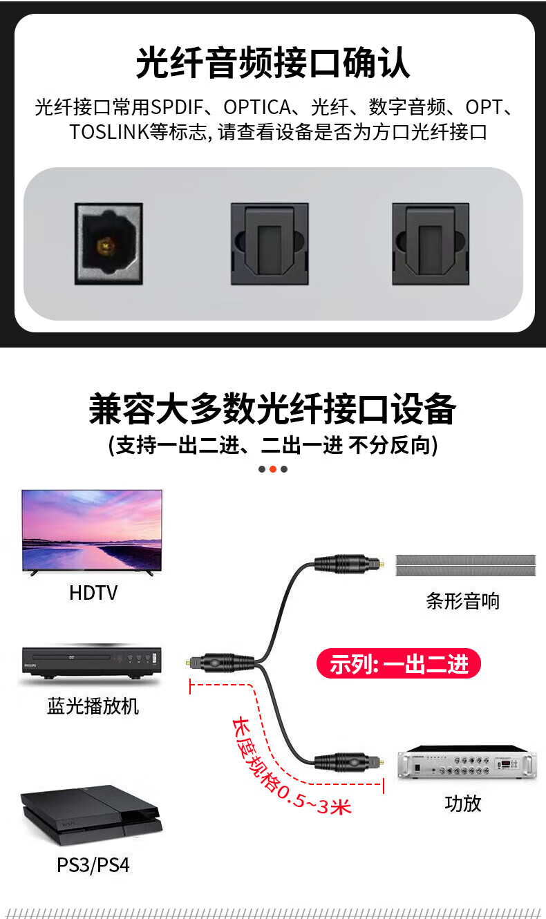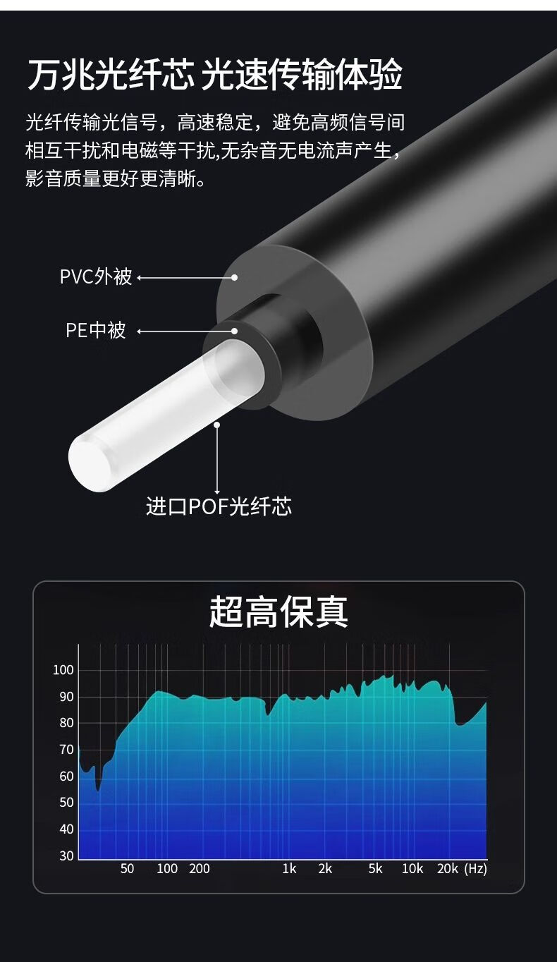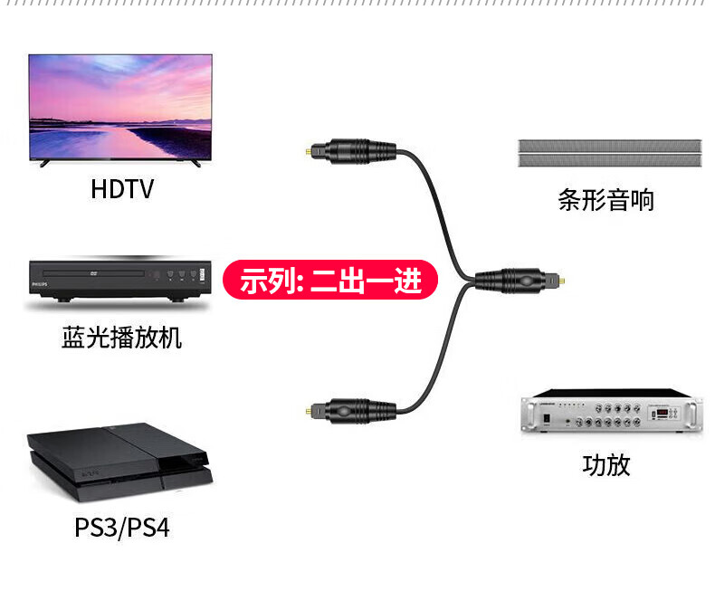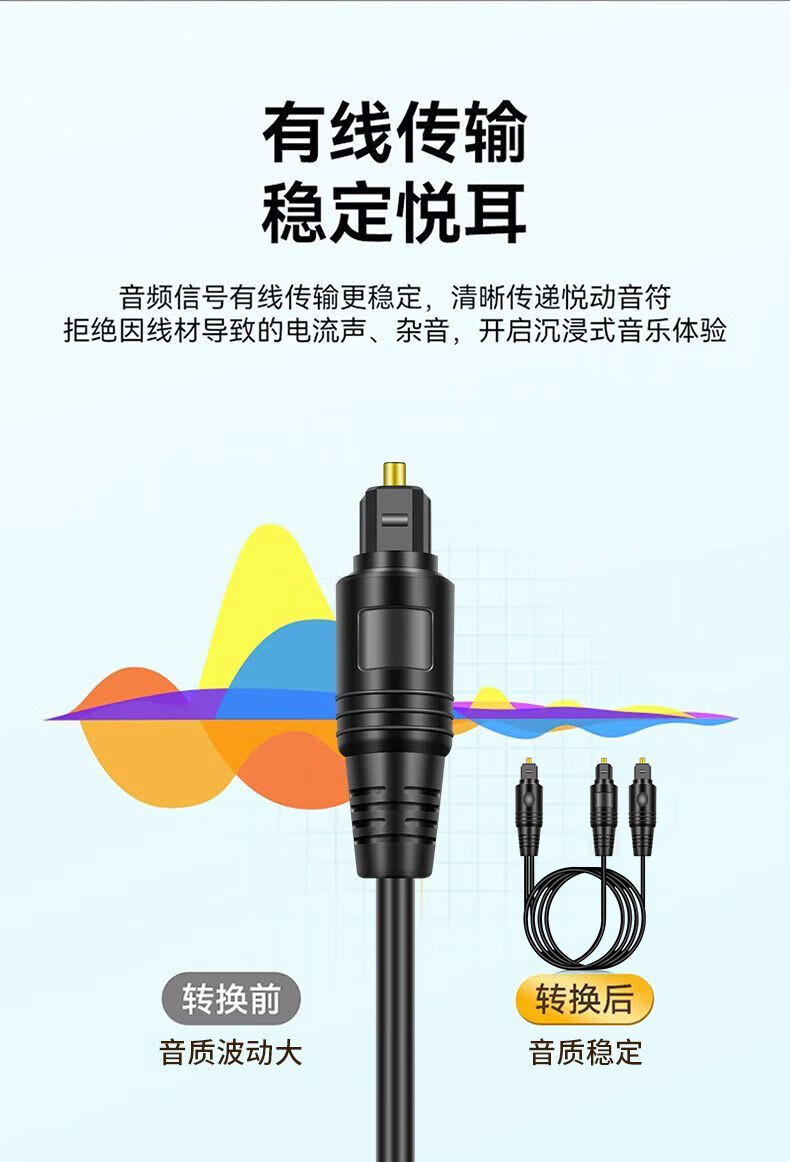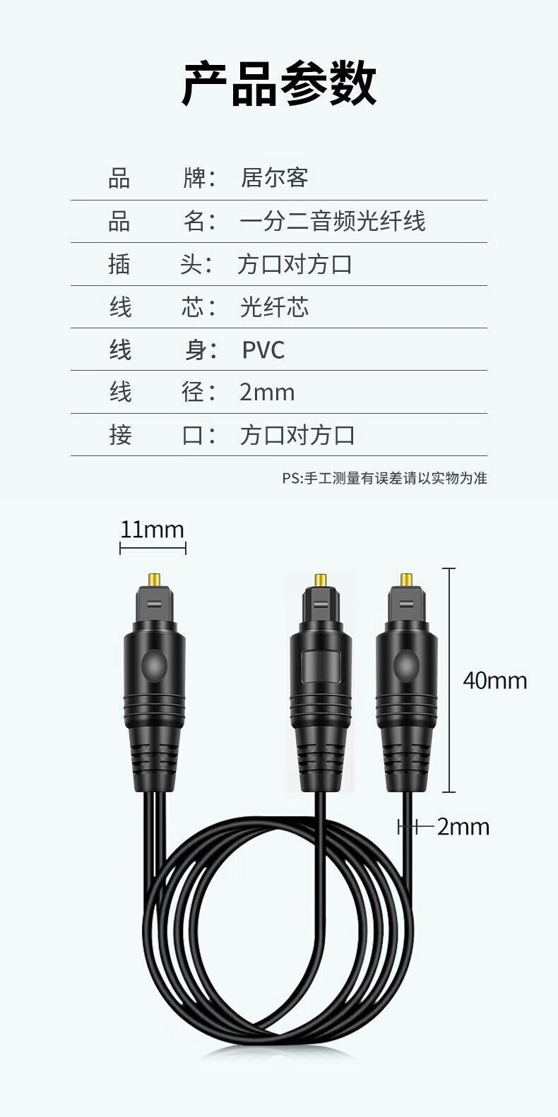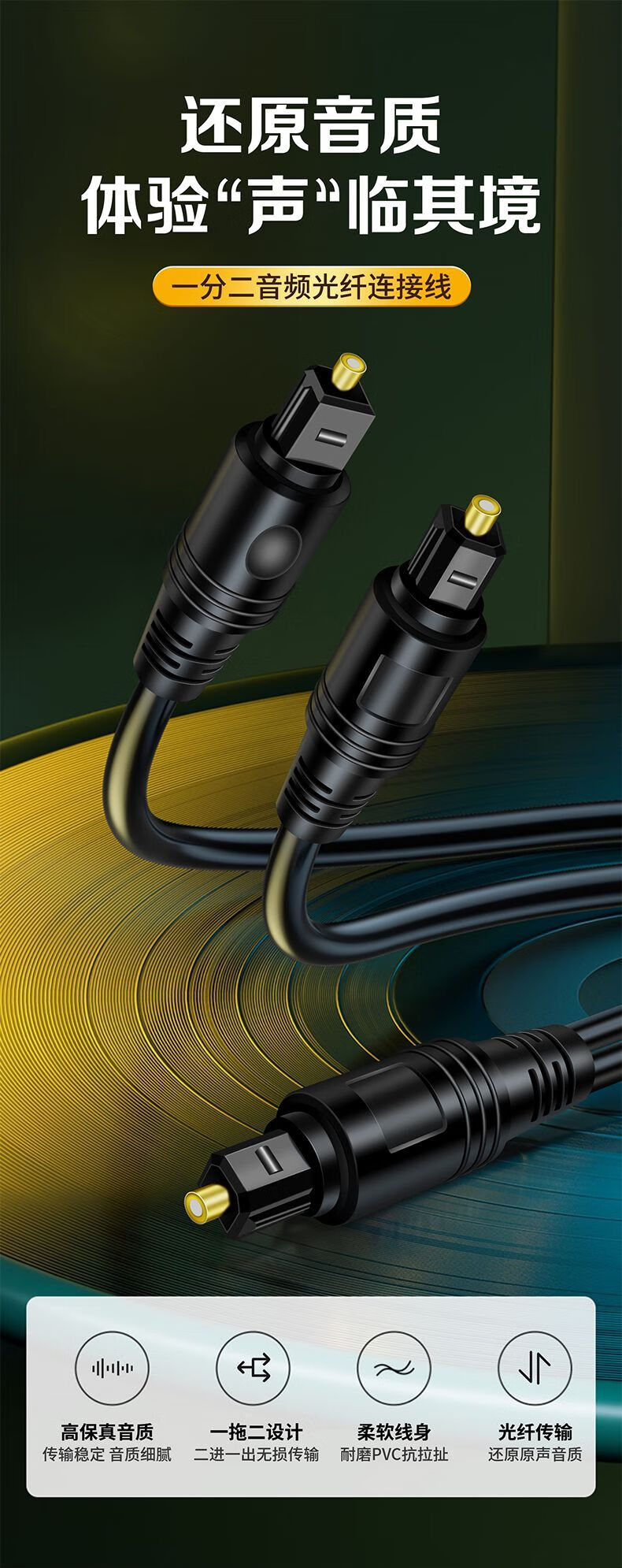 居尔客SPDIF数字光纤音频线 一分二分配线一出二进 二进一出OPT/toslink电视功放音响回音壁连接线一拖二 一分二光纤音频线 1.5米