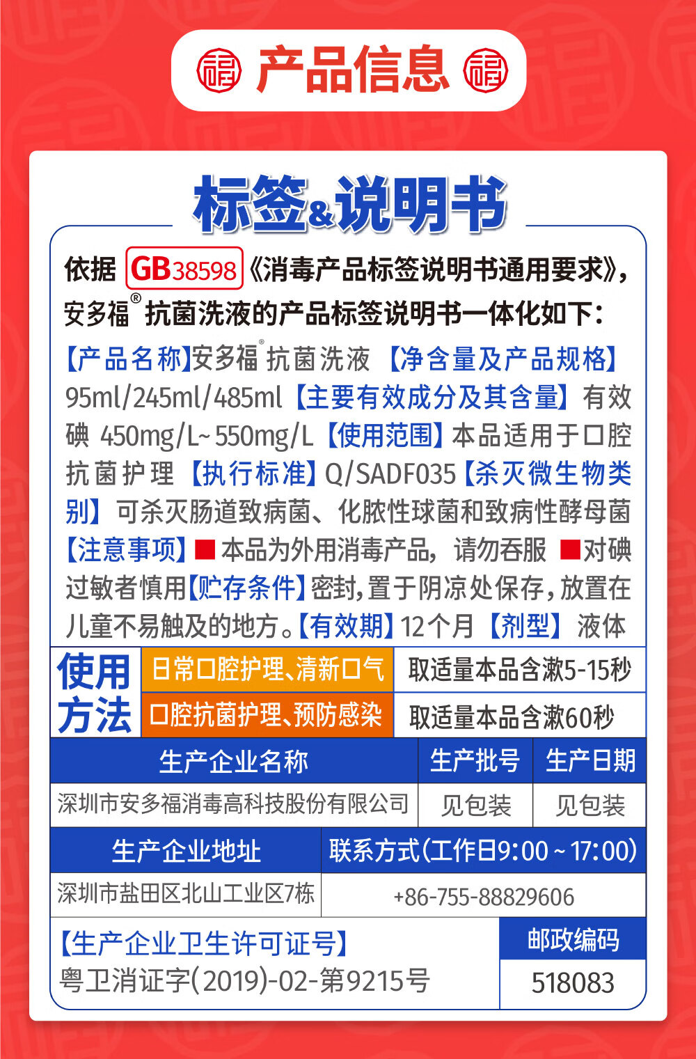安多福聚维酮碘漱口水幽HP杀菌便携牙龈牙周无酒精孕婴可用清新口气 【不含酒精】95ml六瓶