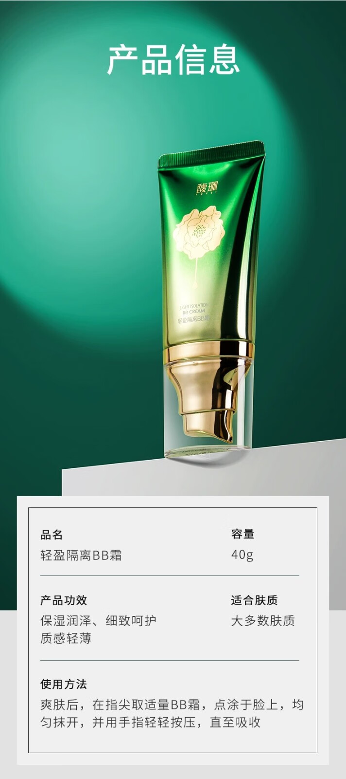 馥珮轻盈隔离BB霜遮瑕不易脱妆自然色保湿隔离修饰二合一粉底液女 轻盈隔离BB霜40g