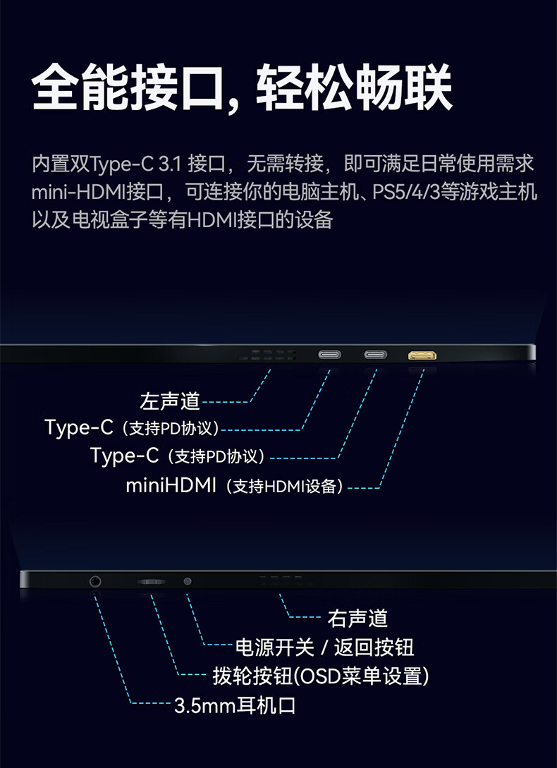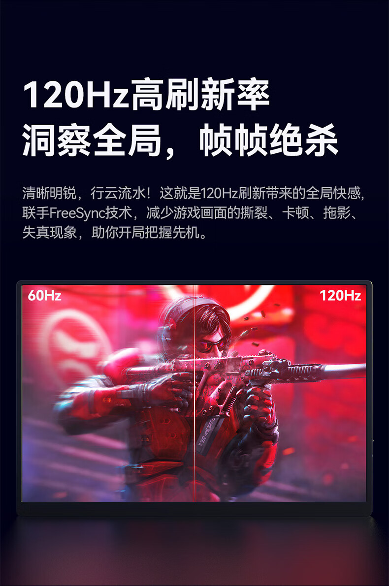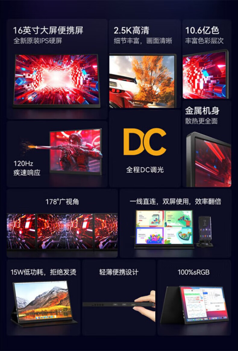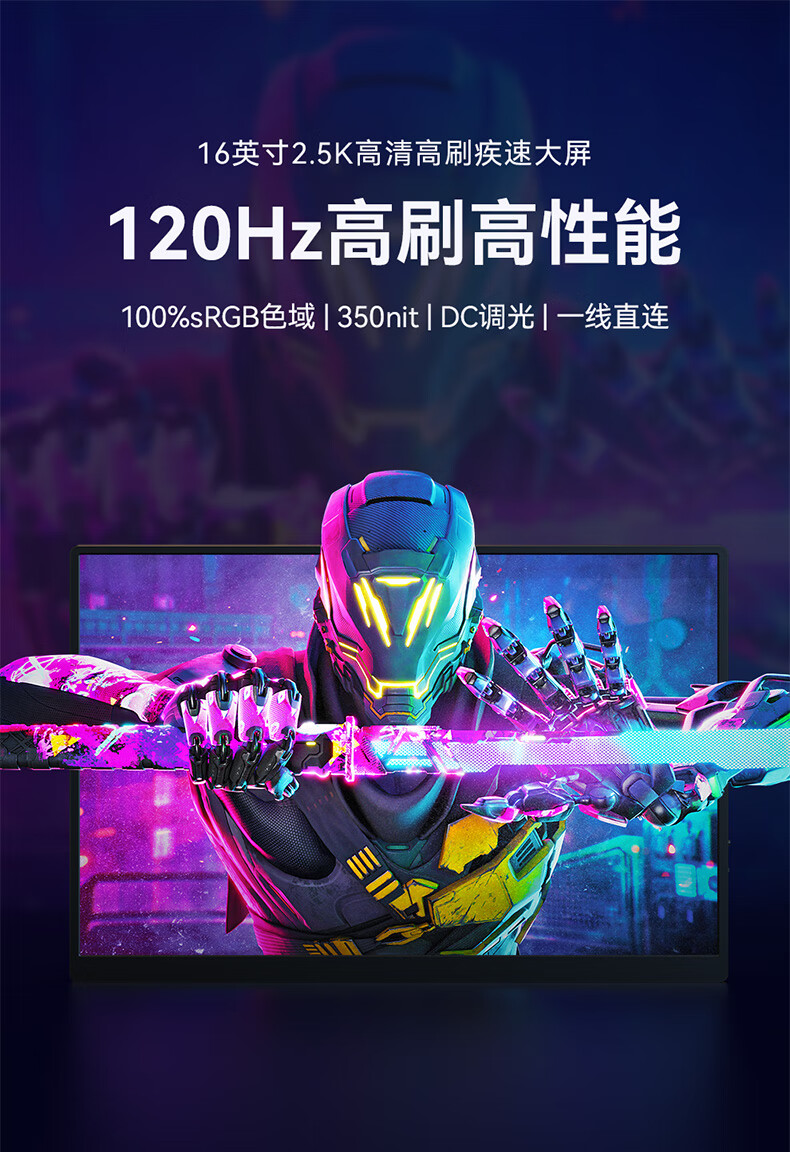 奥斯曼(AOSIMAN)便携式显示器电脑笔记本副屏switch便携屏PS5扩展屏安卓IOS手机外接显示屏幕2K120Hz游戏办公大屏 16英寸 2.5K英寸高清高刷【120Hz】