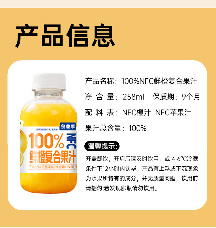 泉鼎季100%NFC荔枝芭乐果汁汁猕猴桃汁苹果汁便携装果蔬汁饮料饮品 荔枝汁 6瓶