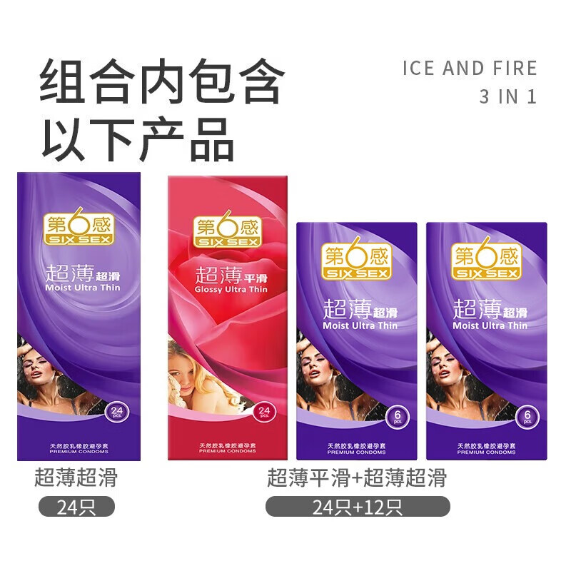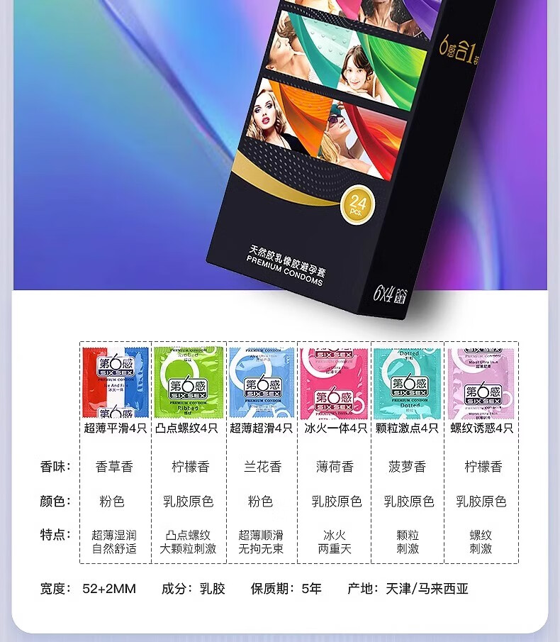 第六感超薄避孕套男女专用 女 戴安全套无套裸入狼牙棒延时持久大颗粒 5种体验劲惠低价【50只】超薄超滑组合50只