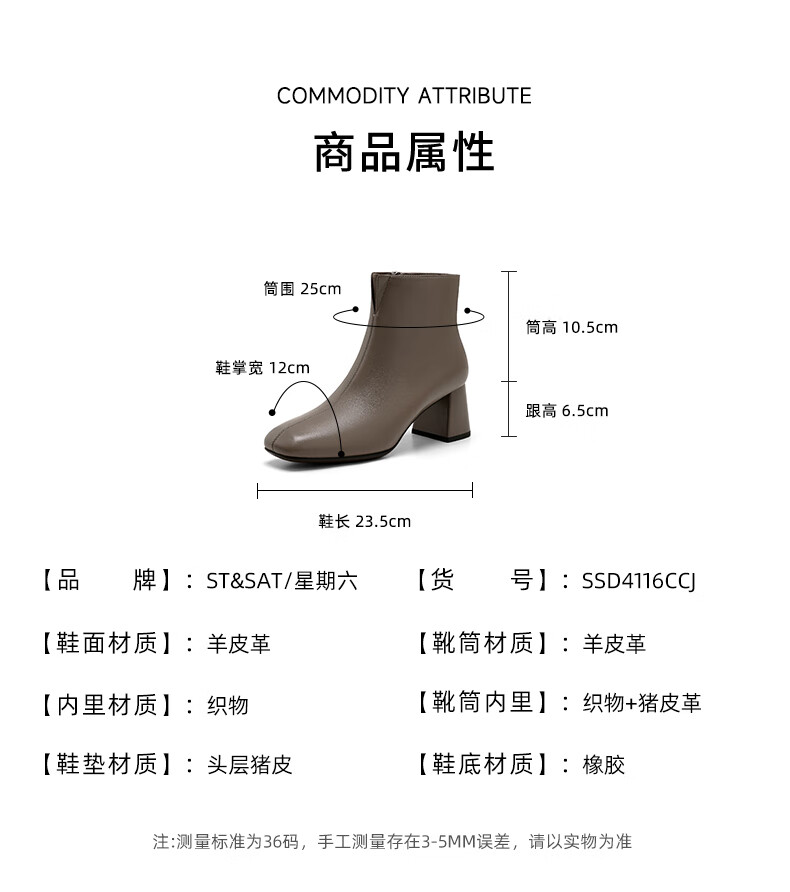 星期六复古风机车靴女2025新款秋冬休闲百搭舒适皮靴短靴百搭马丁靴 棕色 【复古百搭】 35 225
