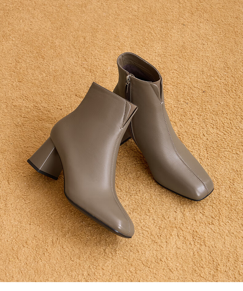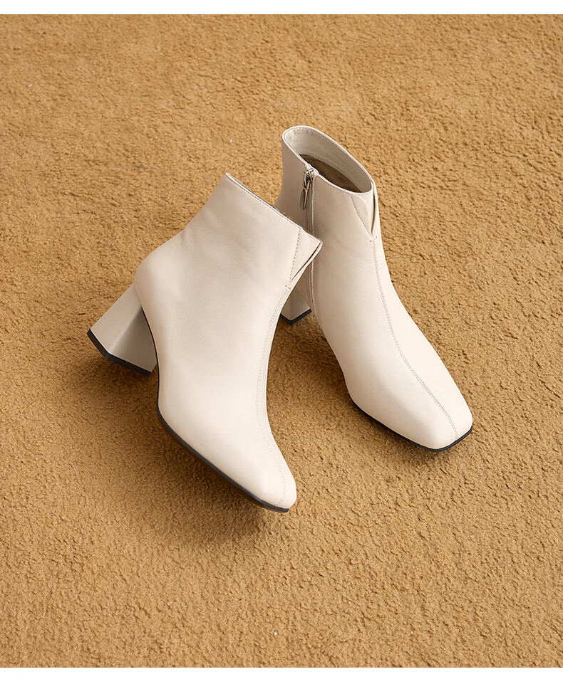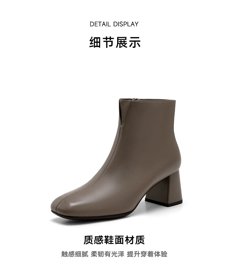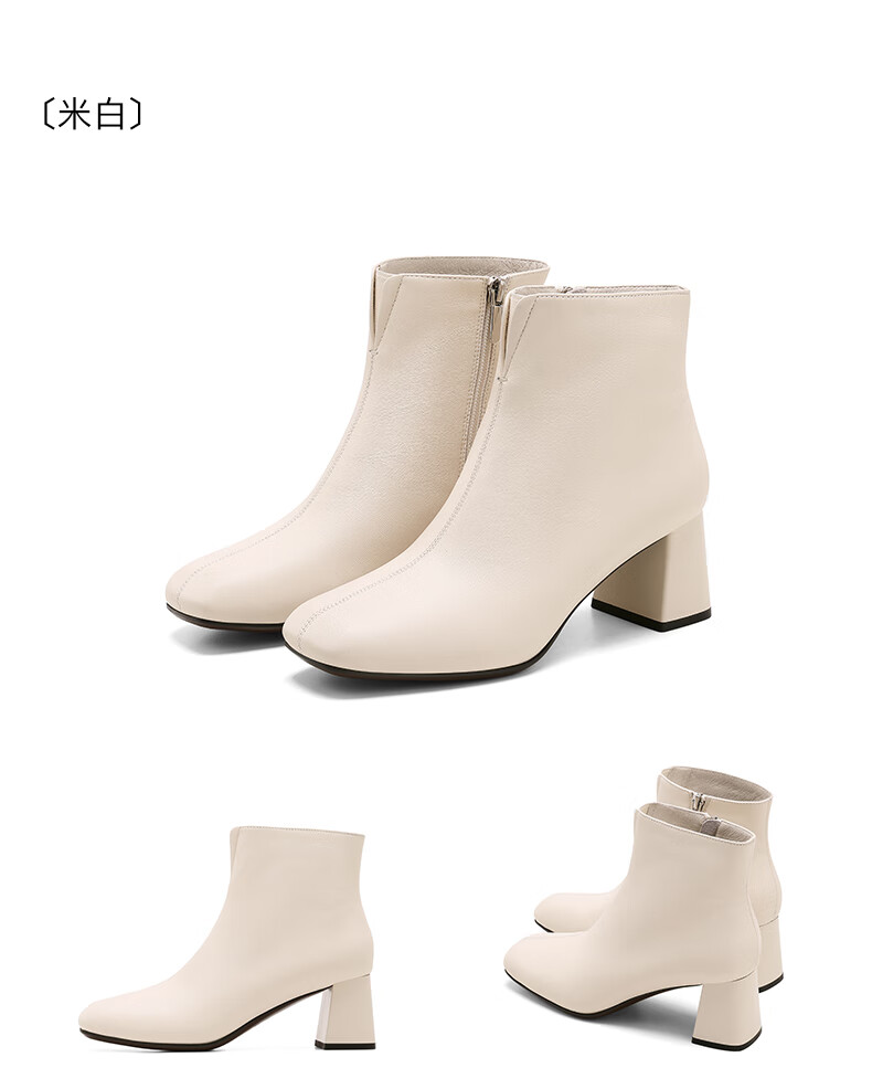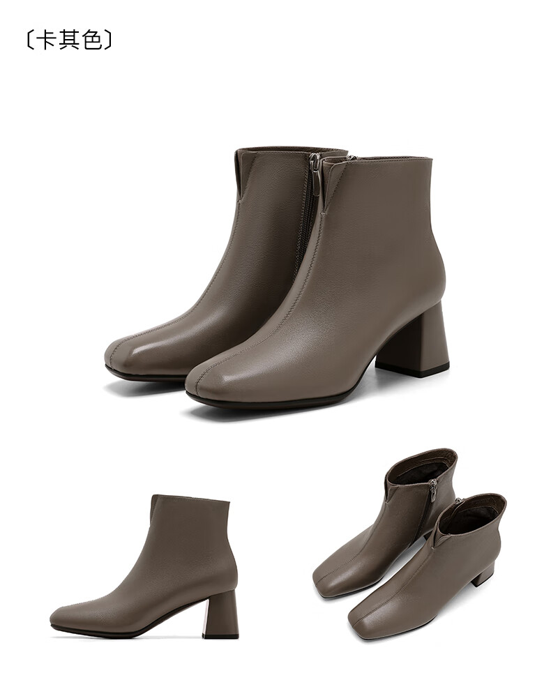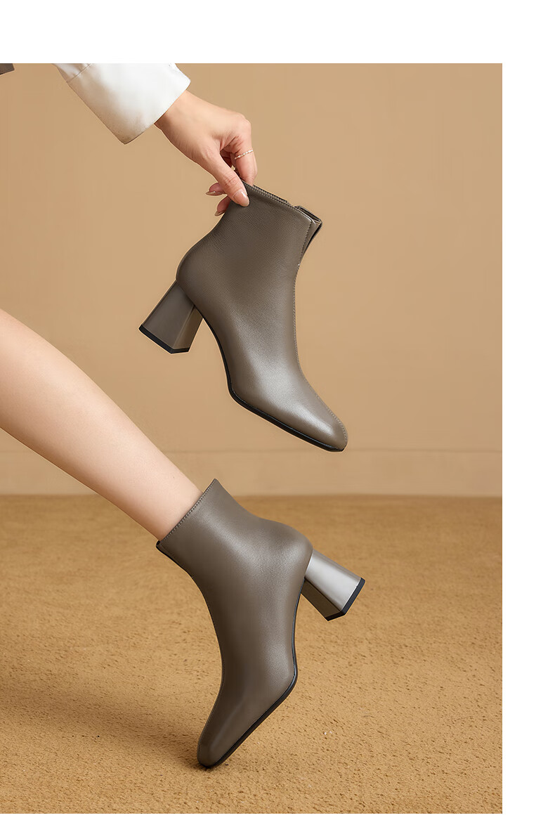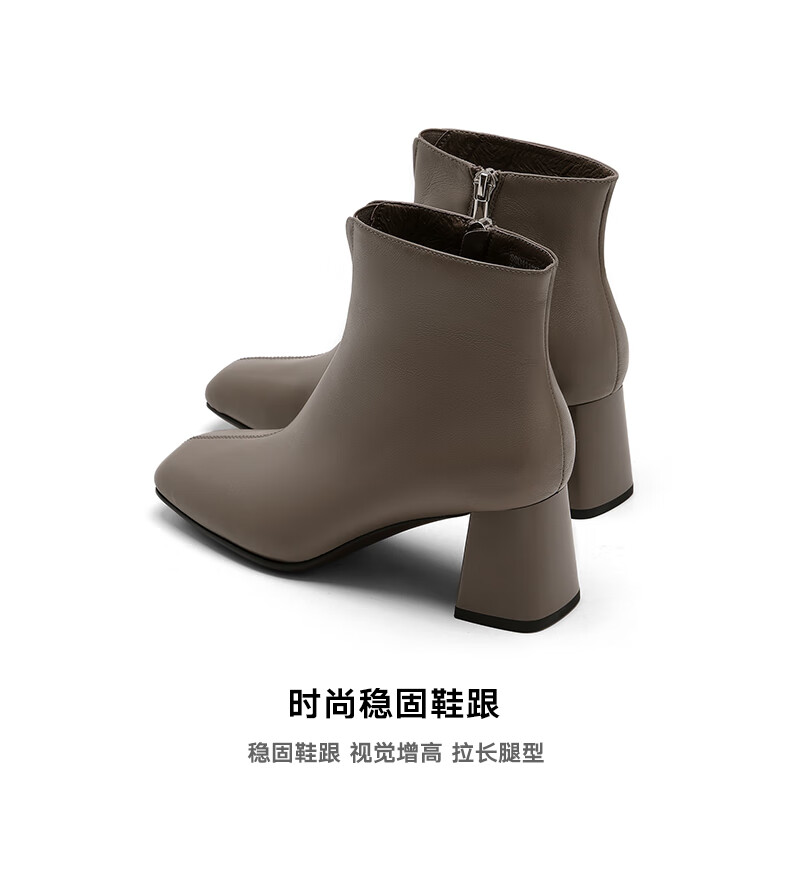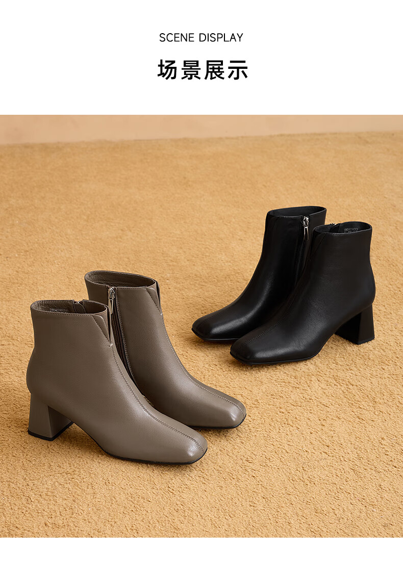 星期六高跟短靴女2025新款秋季增高靴子方头黑色真皮切尔西瘦瘦靴 黑色 37