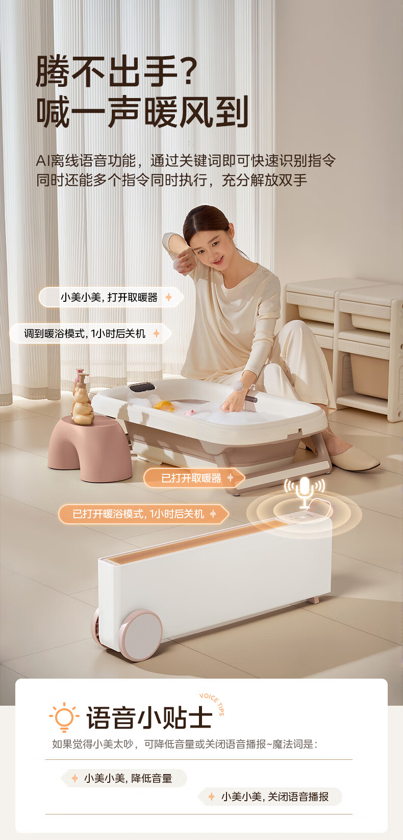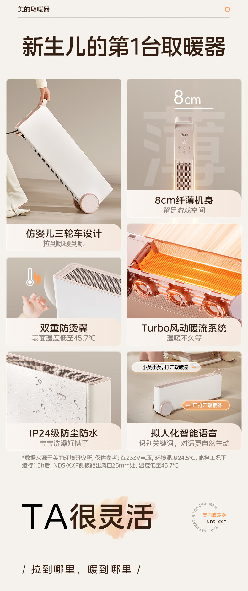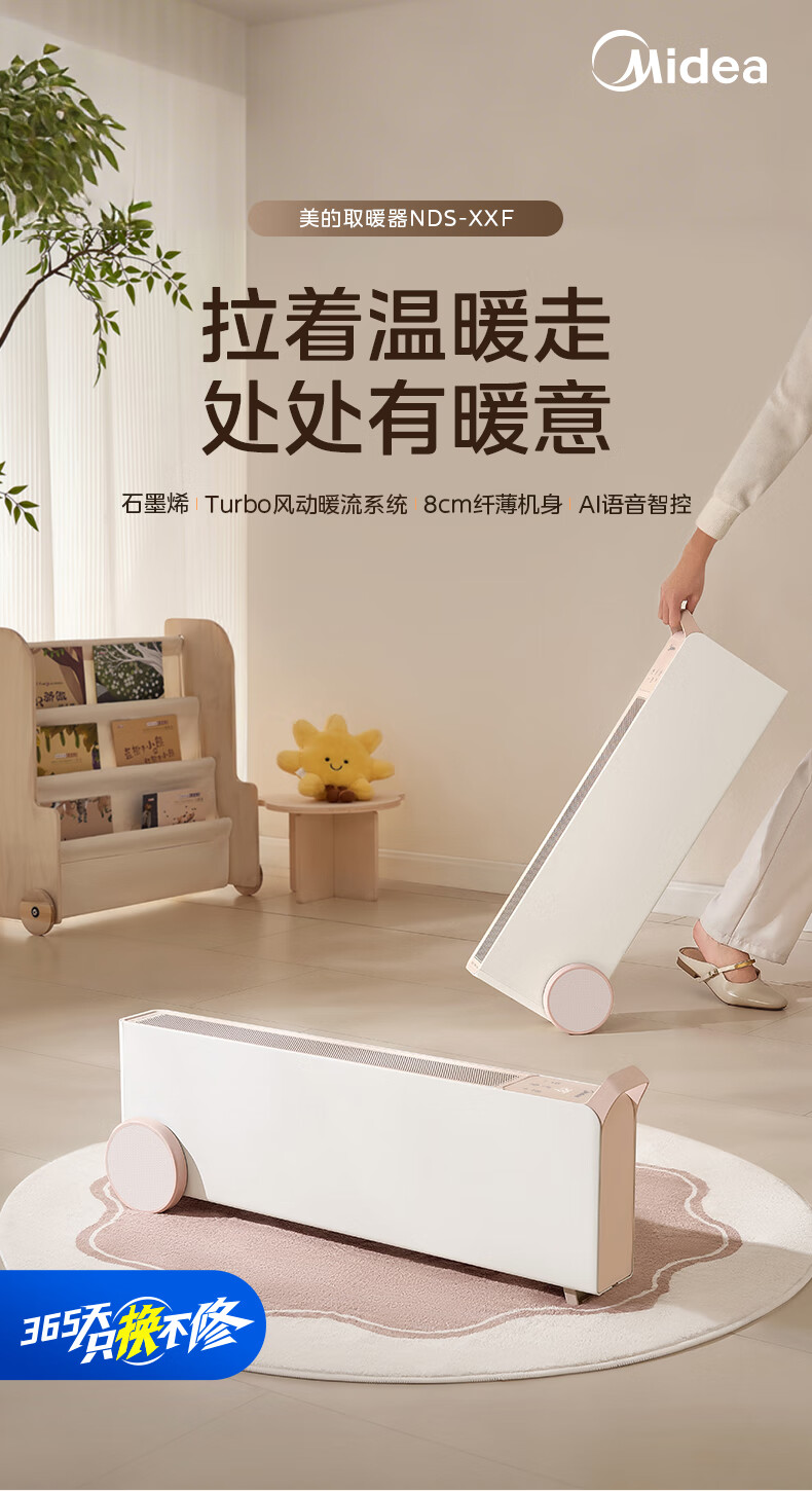 美的(Midea)【暖域无界】石墨烯智能踢脚线取暖器/语音卧室/浴室暖风机/电热电暖器/电暖气家用小太阳NDS-XXF