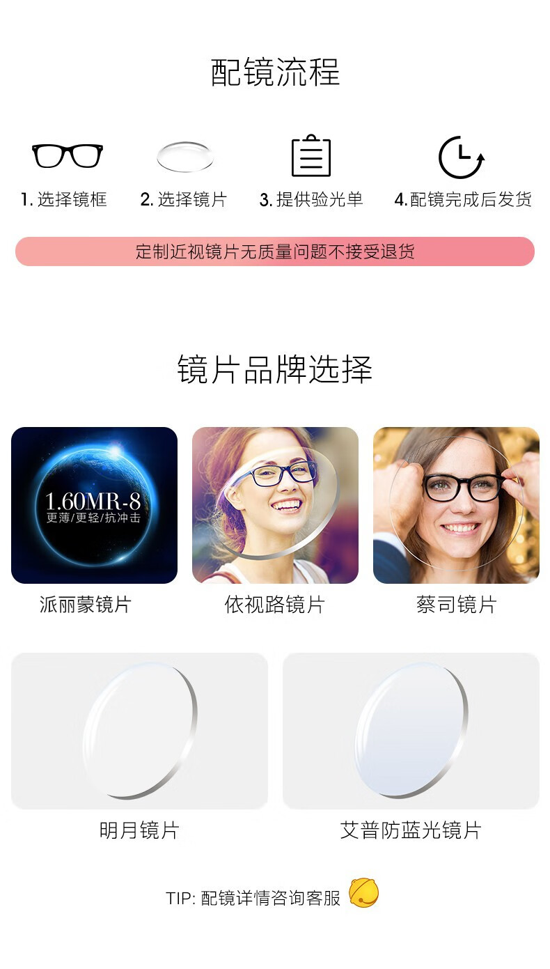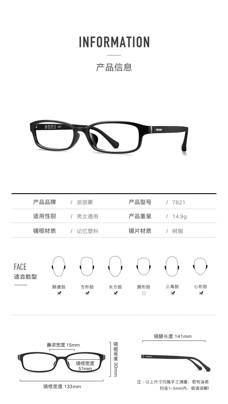 派丽蒙(PARIM) 高度近视眼镜框男小框硅胶腿镜架女小脸可配防蓝光眼镜PR7821 B1-黑色框-黑色脚