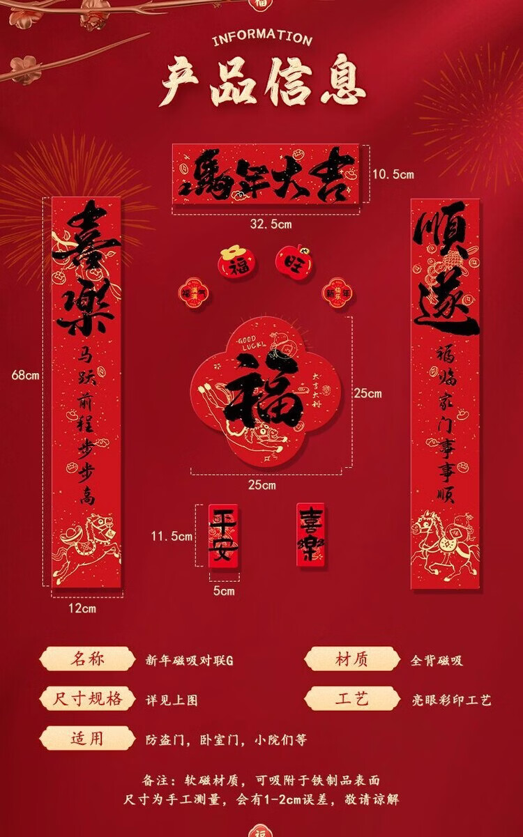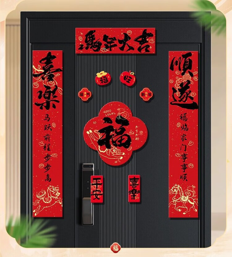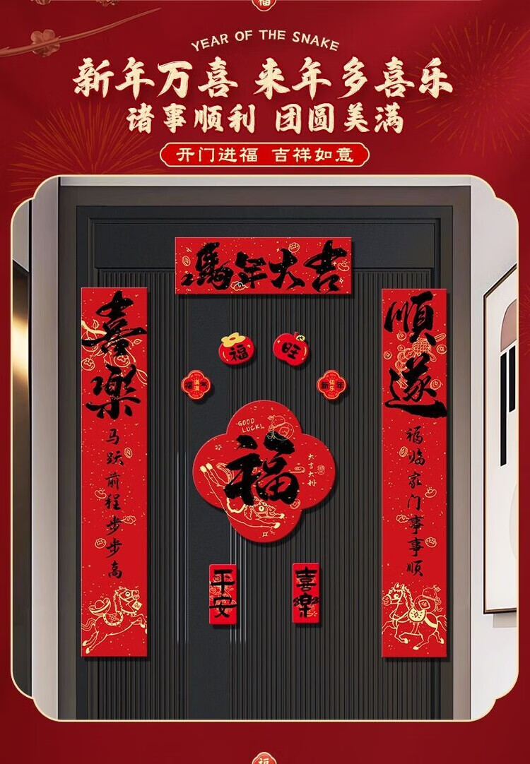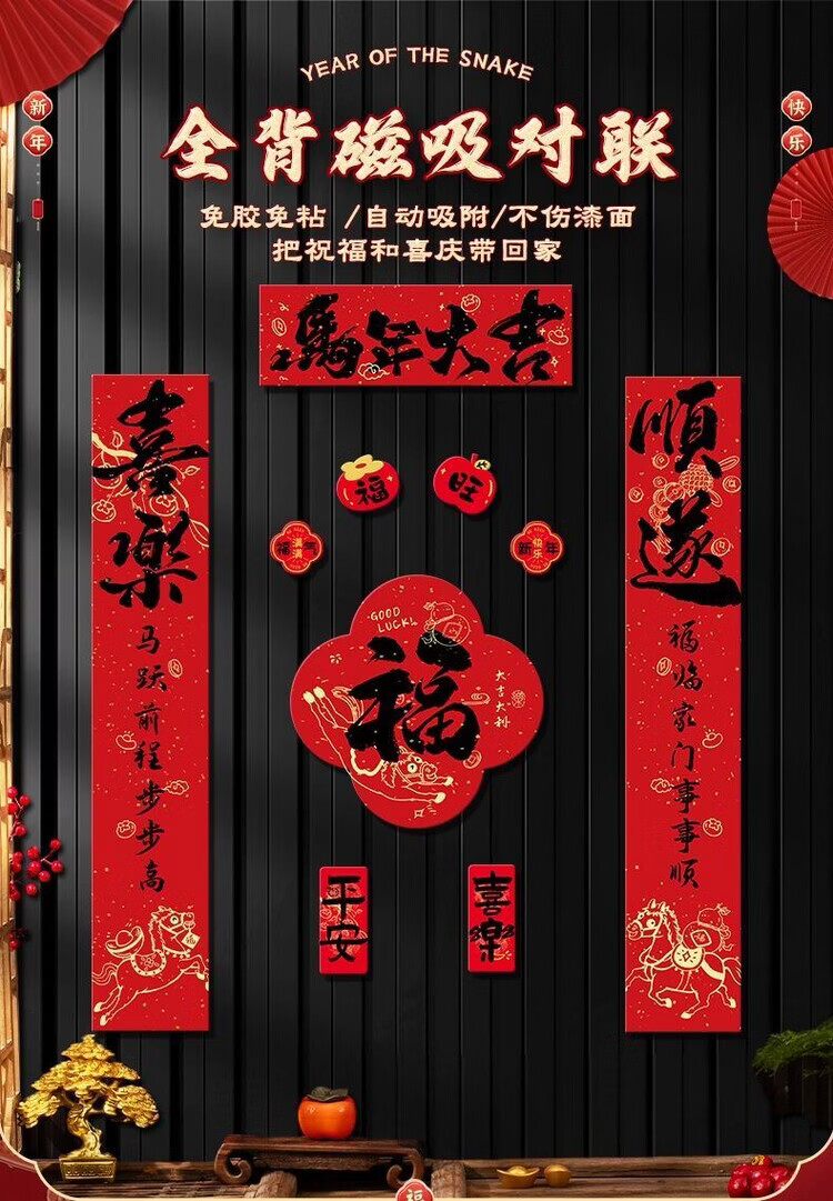 OYKTN磁吸对联2026新款马年元旦春联新年春节书法门幅过年福字装饰用 首图款-【原创设计+高清彩印】-全背磁吸 对联+福字