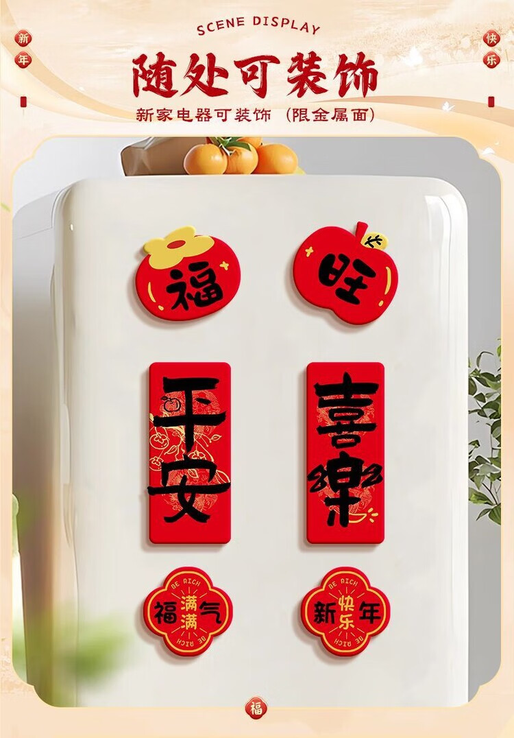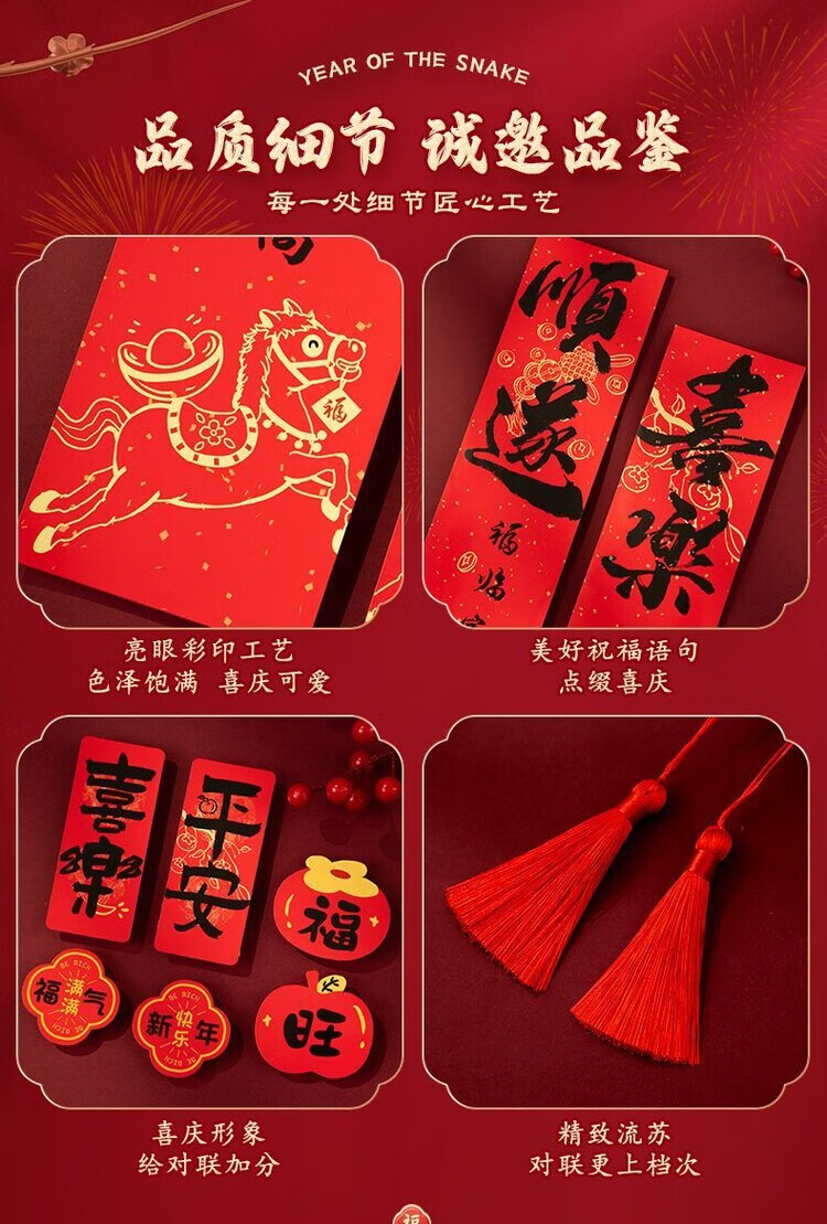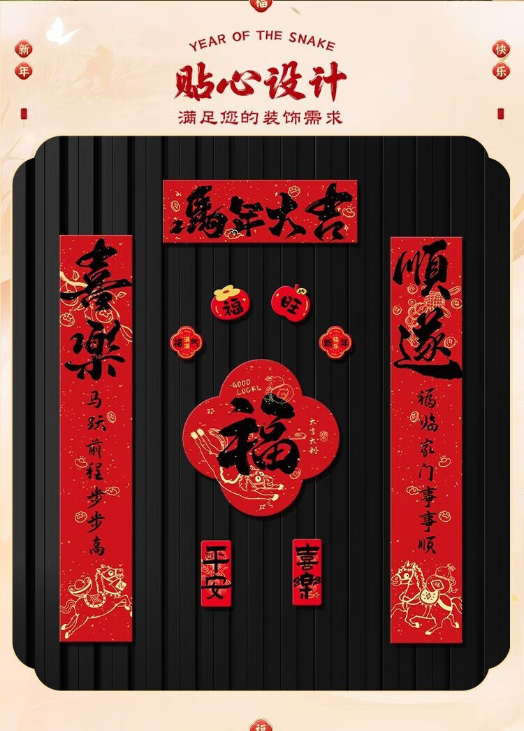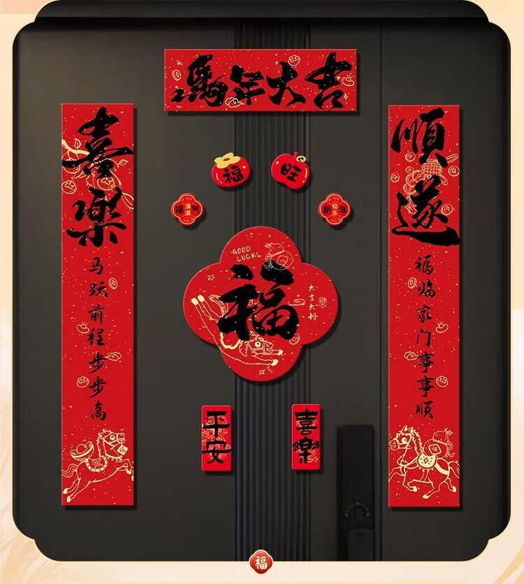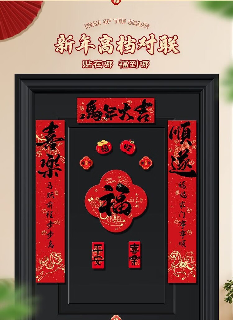 OYKTN磁吸对联2026新款马年元旦春联新年春节书法门幅过年福字装饰用 首图款-【原创设计+高清彩印】-全背磁吸 对联+福字