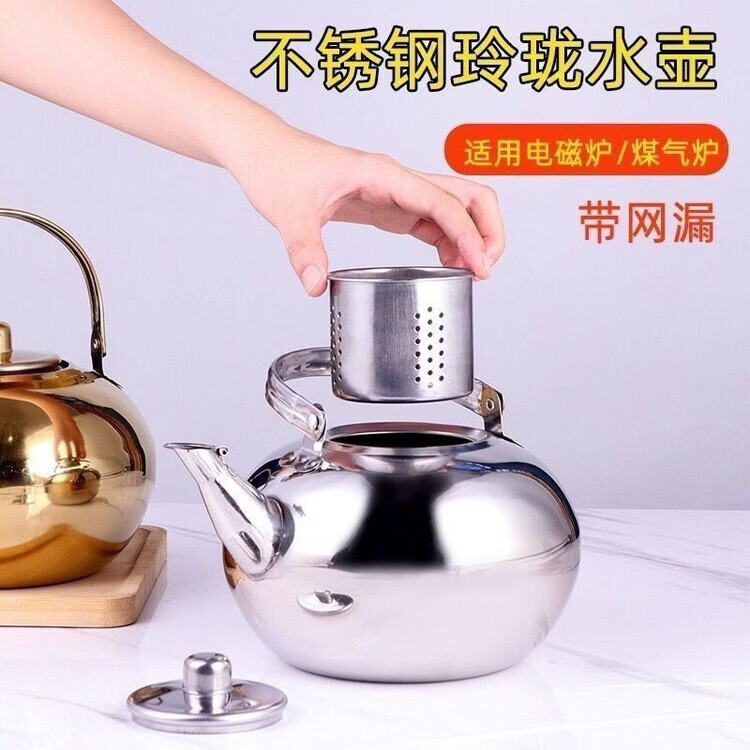 咏夏不锈钢茶壶泡茶壶玲珑壶带滤网餐厅酒店饭店用水壶家用黄酒壶 0L圆球壶 带漏格1.35斤水:小款