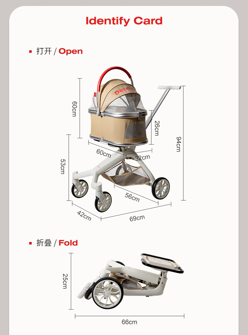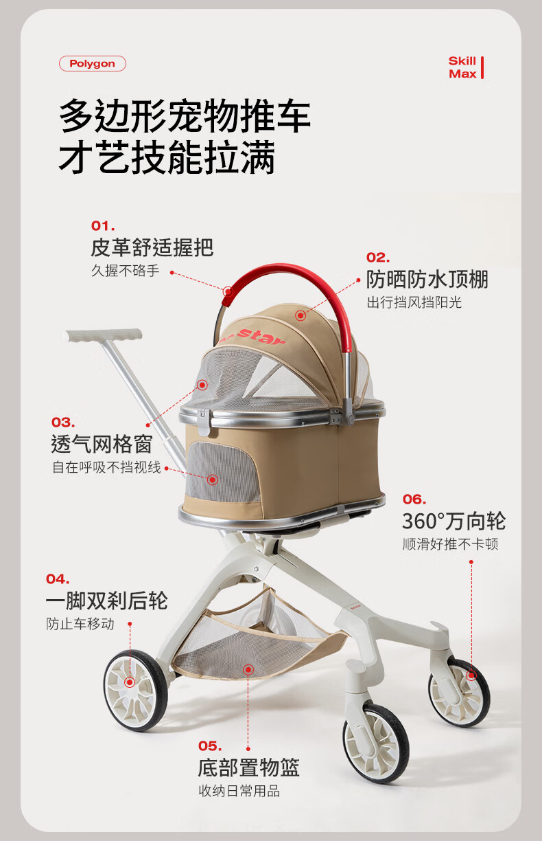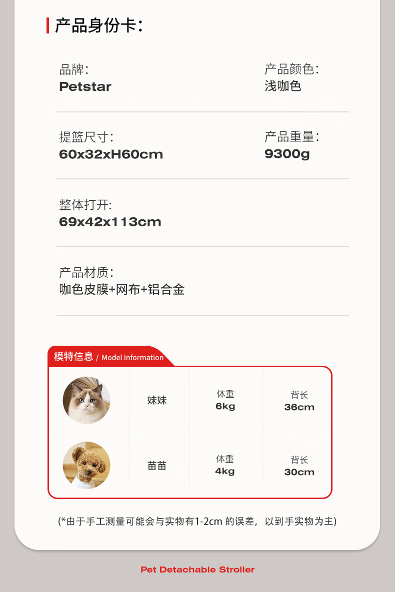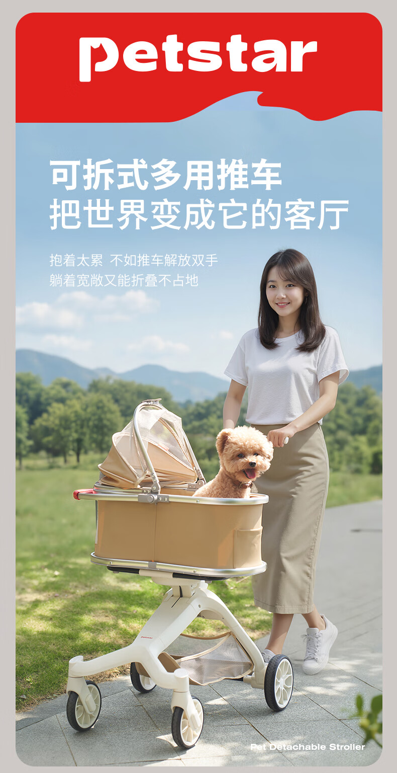 PETSTAR可折叠宠物推车 中小型猫狗外出代步推车【20斤内可用】