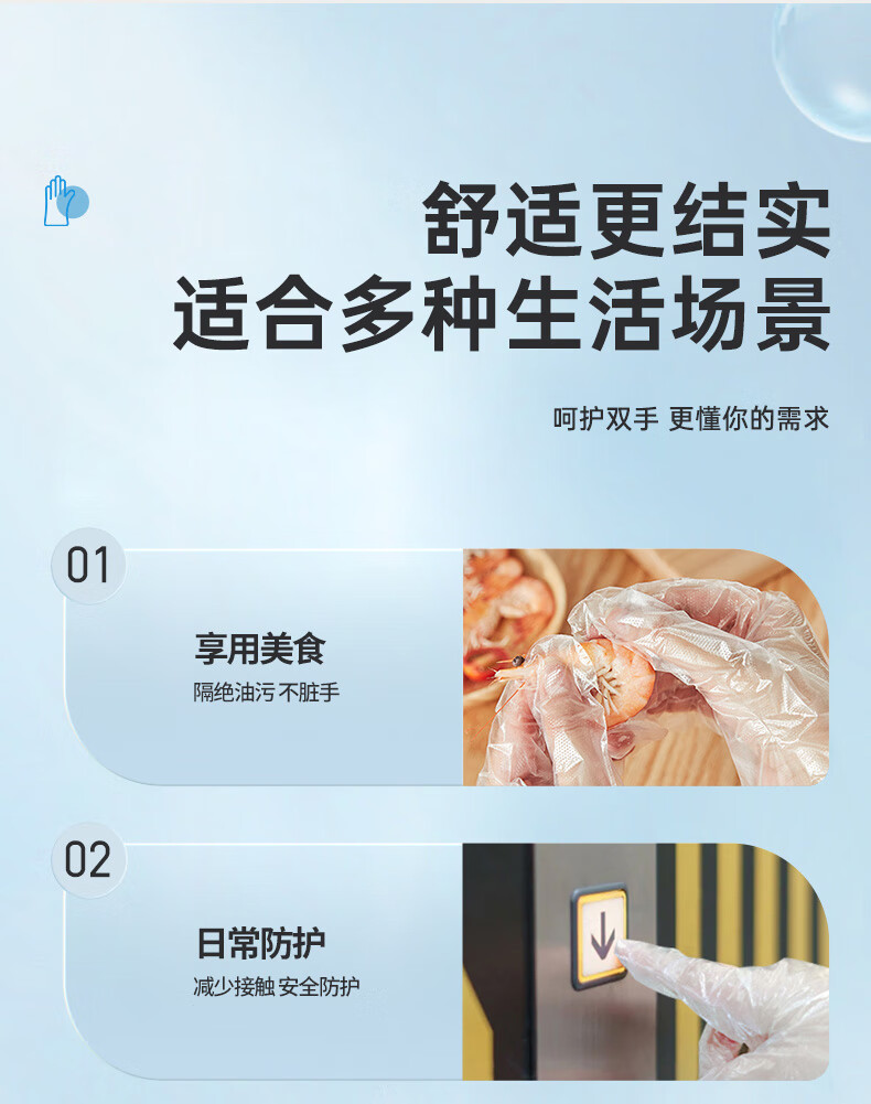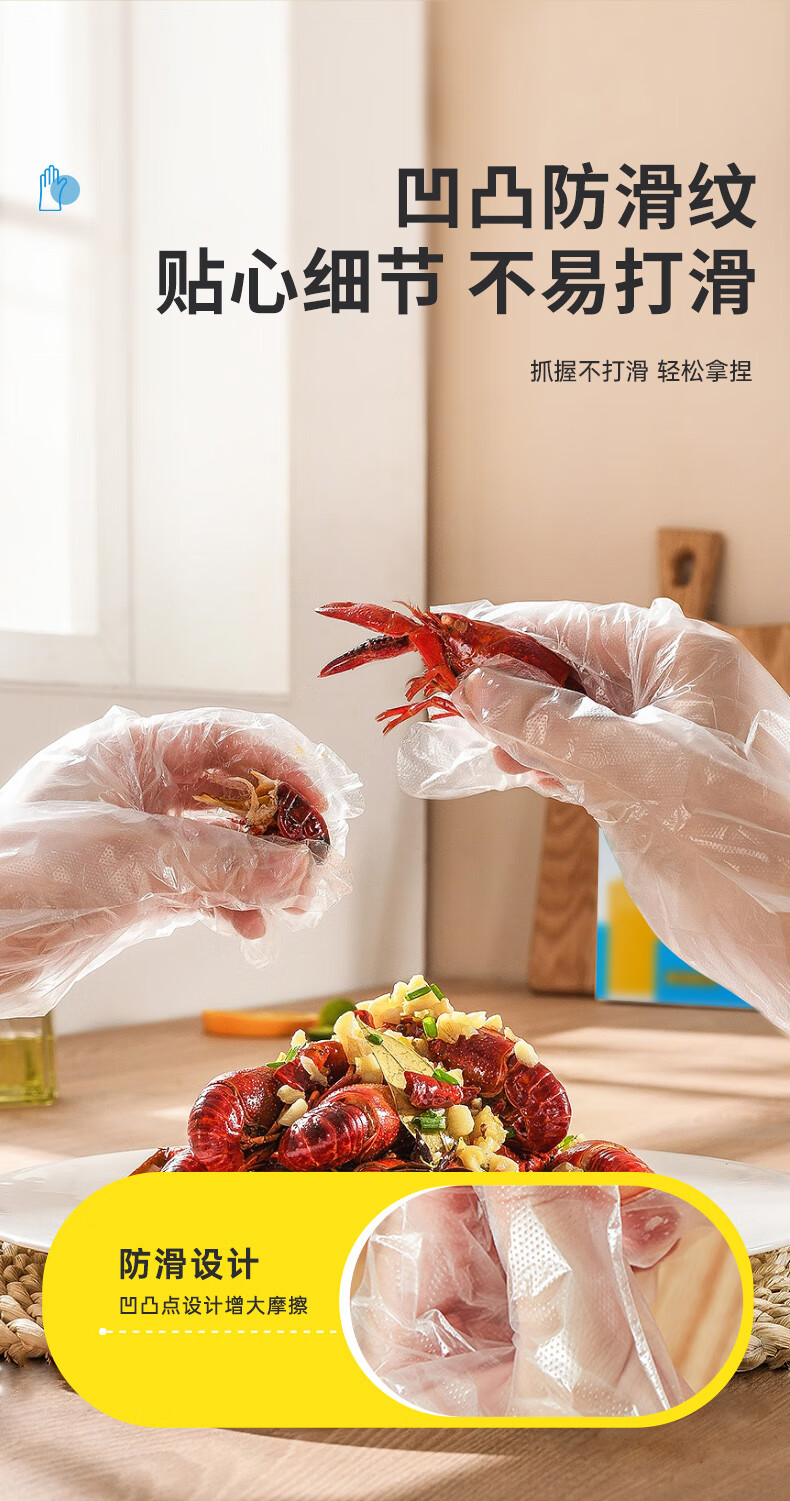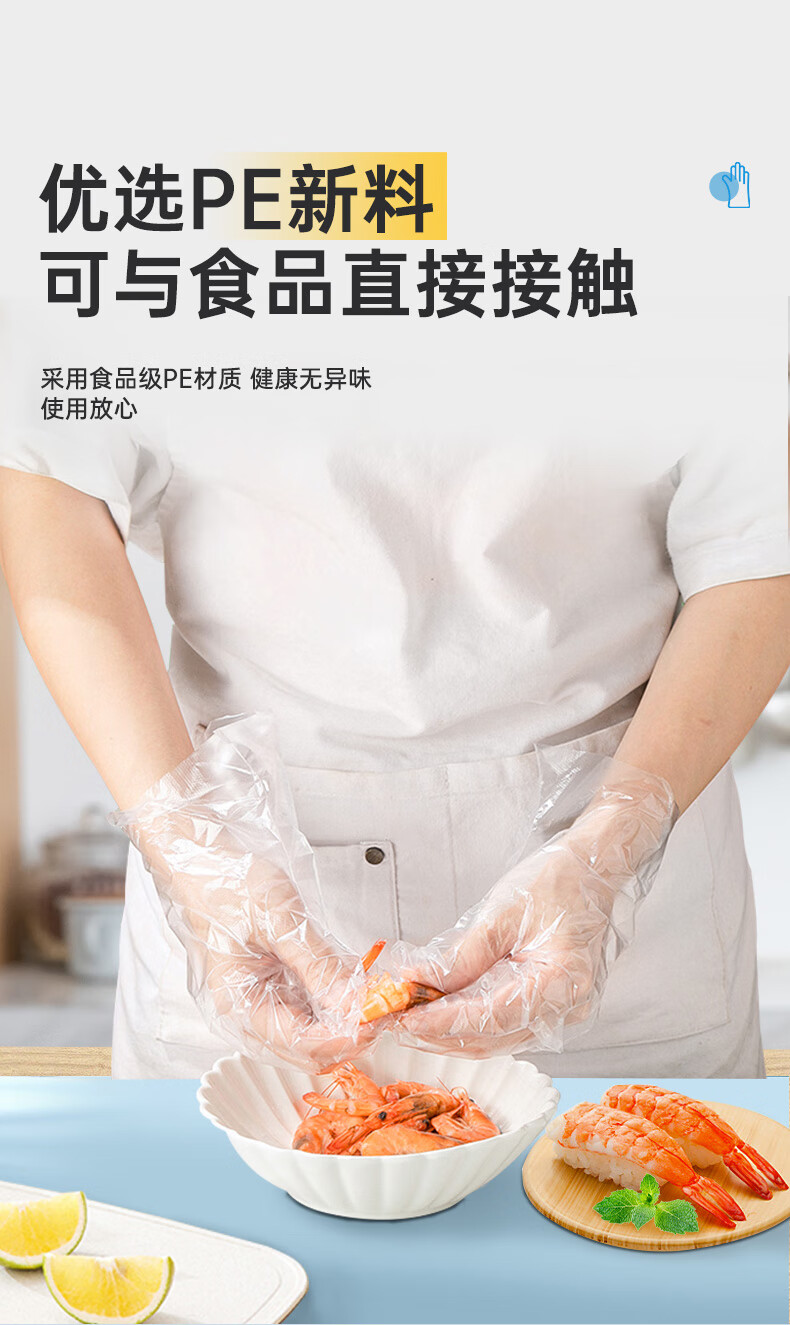 屋田一次性手套食品级500只盒装抽取式加厚塑料PE防漏手套厨房烘焙