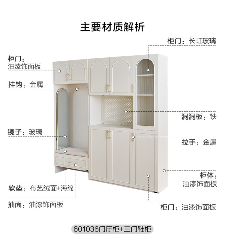 全友家居奶油风入户鞋柜玄关柜家用储物收纳门厅柜挂衣架进门置物柜 【奶油白】门厅柜
