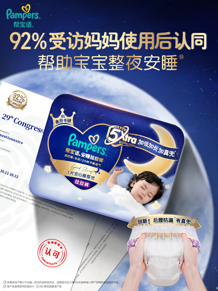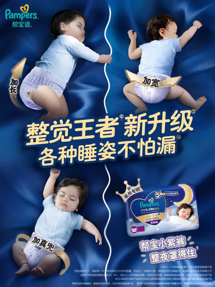 帮宝适【整觉王者】新帮宝适安睡拉拉裤超薄透气L-3XL透气尿不湿 XL52片(12-17kg)