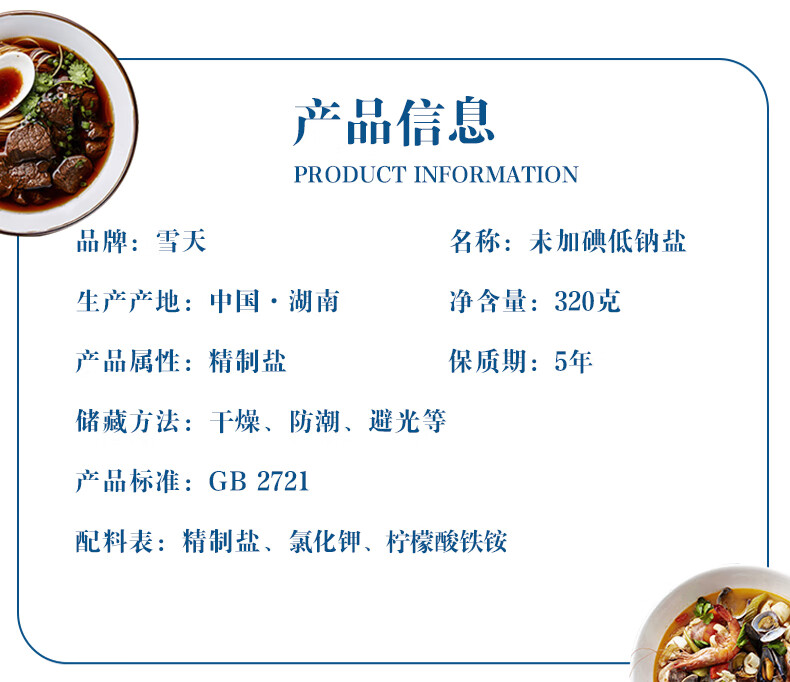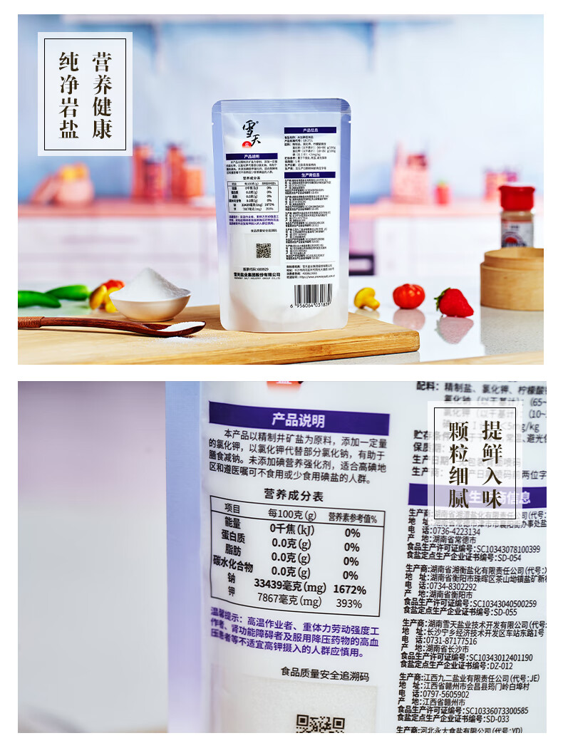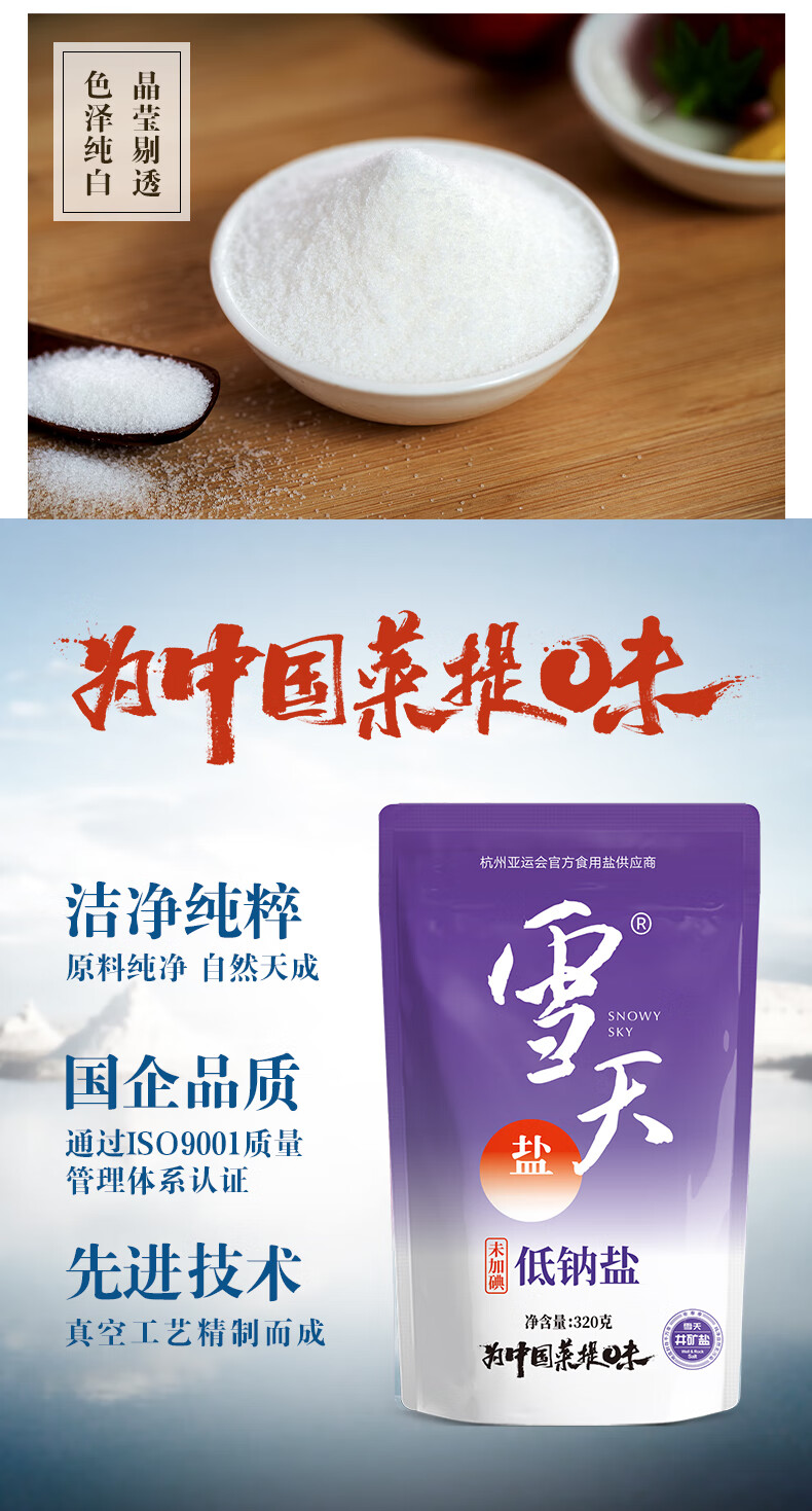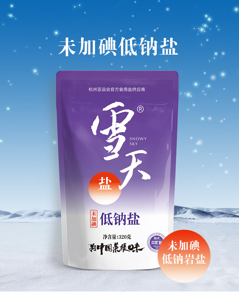 雪天低钠盐320g*3【未加碘】高纯食用盐 家用烹饪调味品调料 纯净岩盐