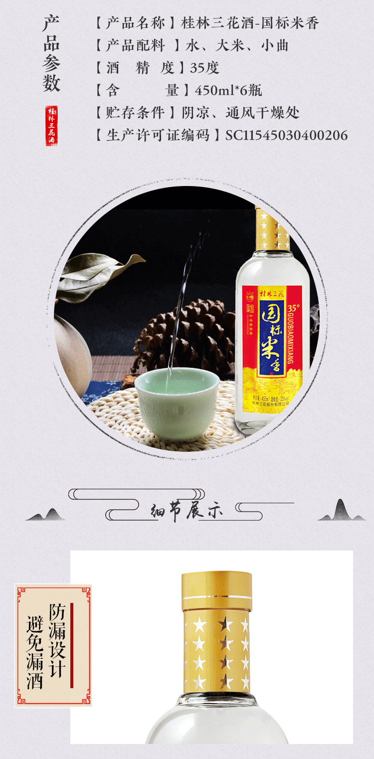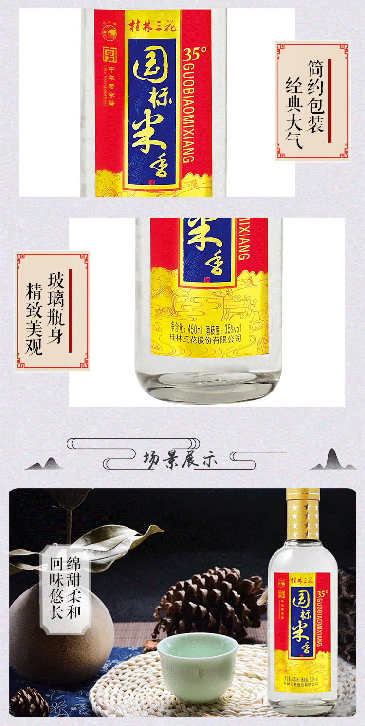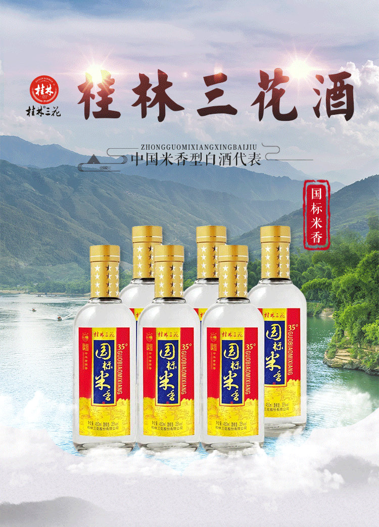桂林三花酒 国标米香 米香型 35度 450ml*6瓶 整箱装 低度 送礼
