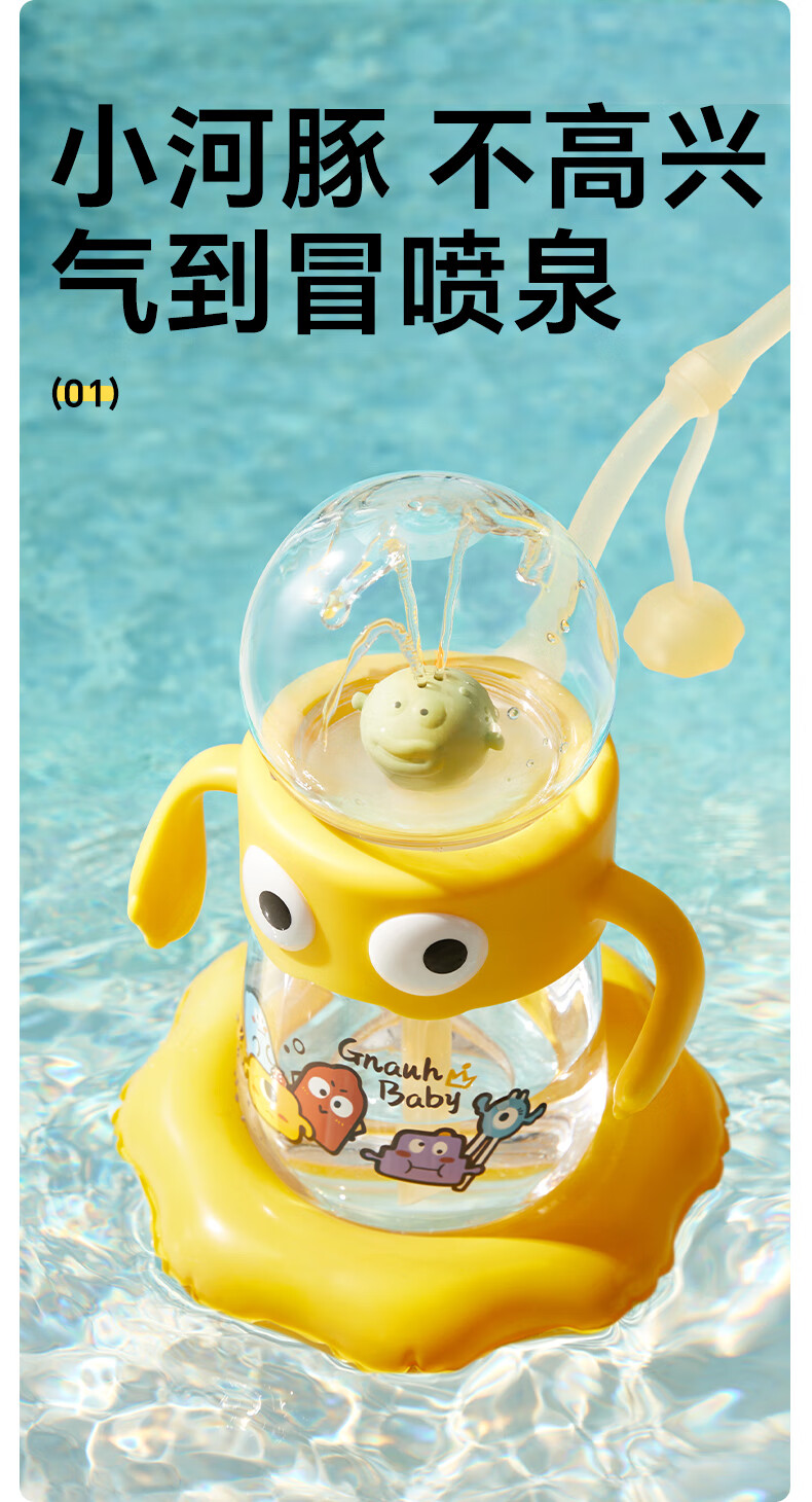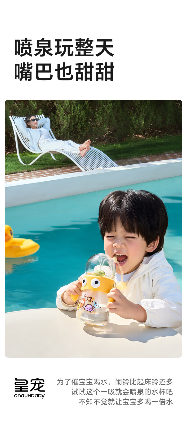 皇宠喷泉杯2-3岁以上儿童水杯家用幼儿园喝水直饮吸管杯宝宝水杯 330ml喷泉杯【24月+】