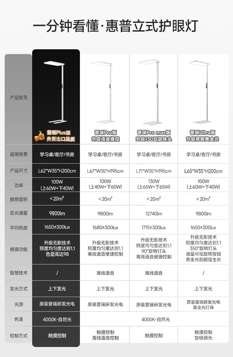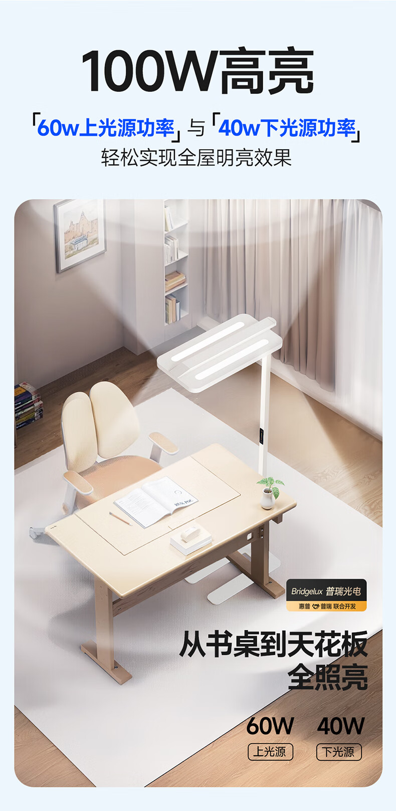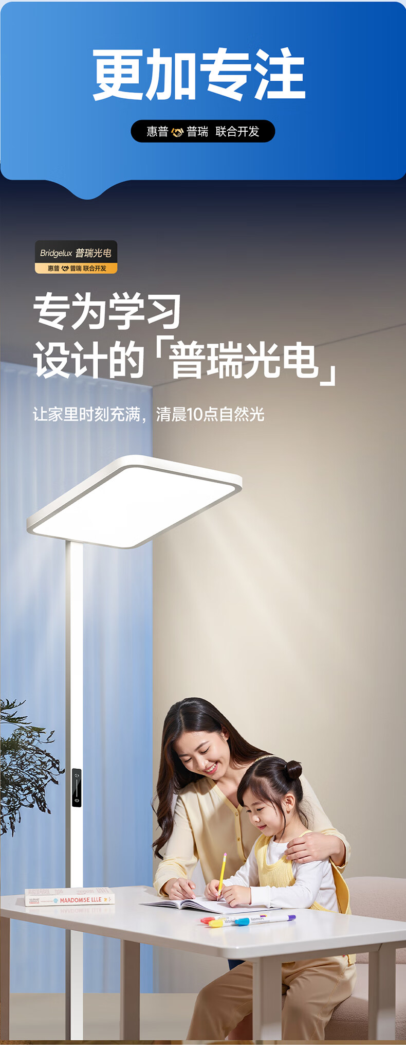 惠普【全新升级】学习阅读台灯氛围落地灯儿童普瑞立式大路灯护眼灯