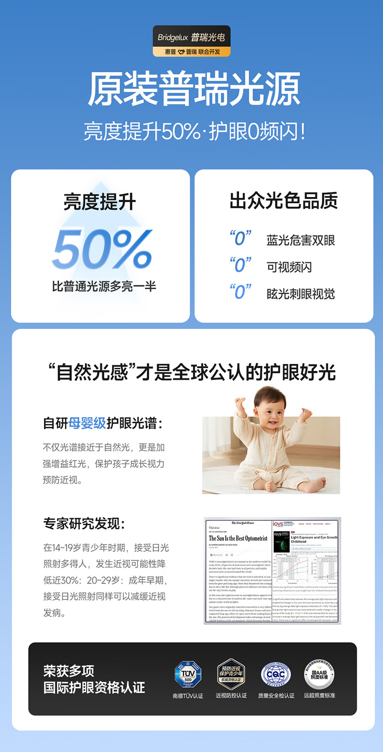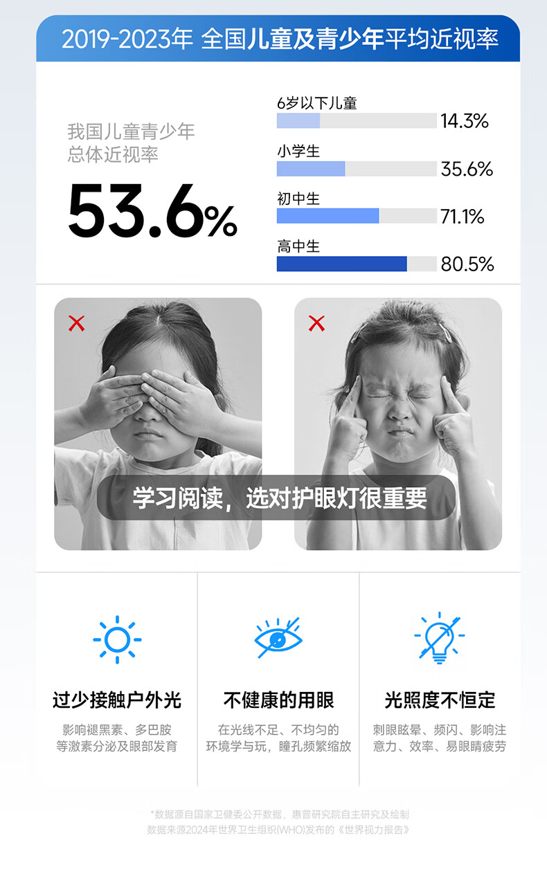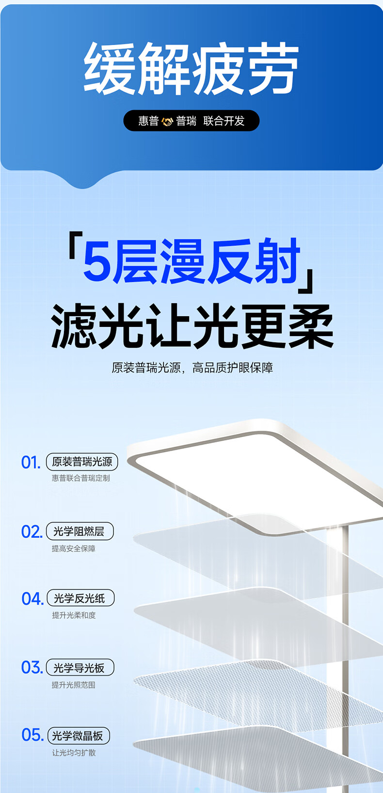 惠普【全新升级】学习阅读台灯氛围落地灯儿童普瑞立式大路灯护眼灯