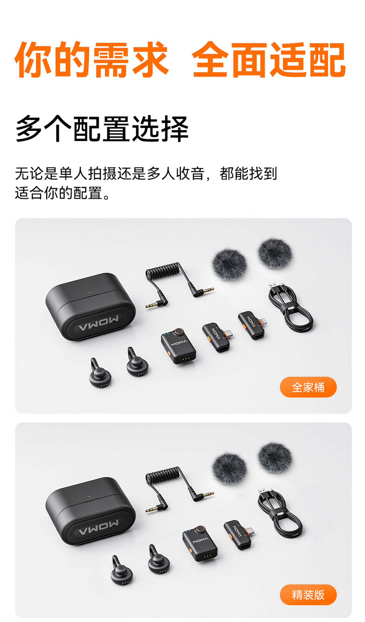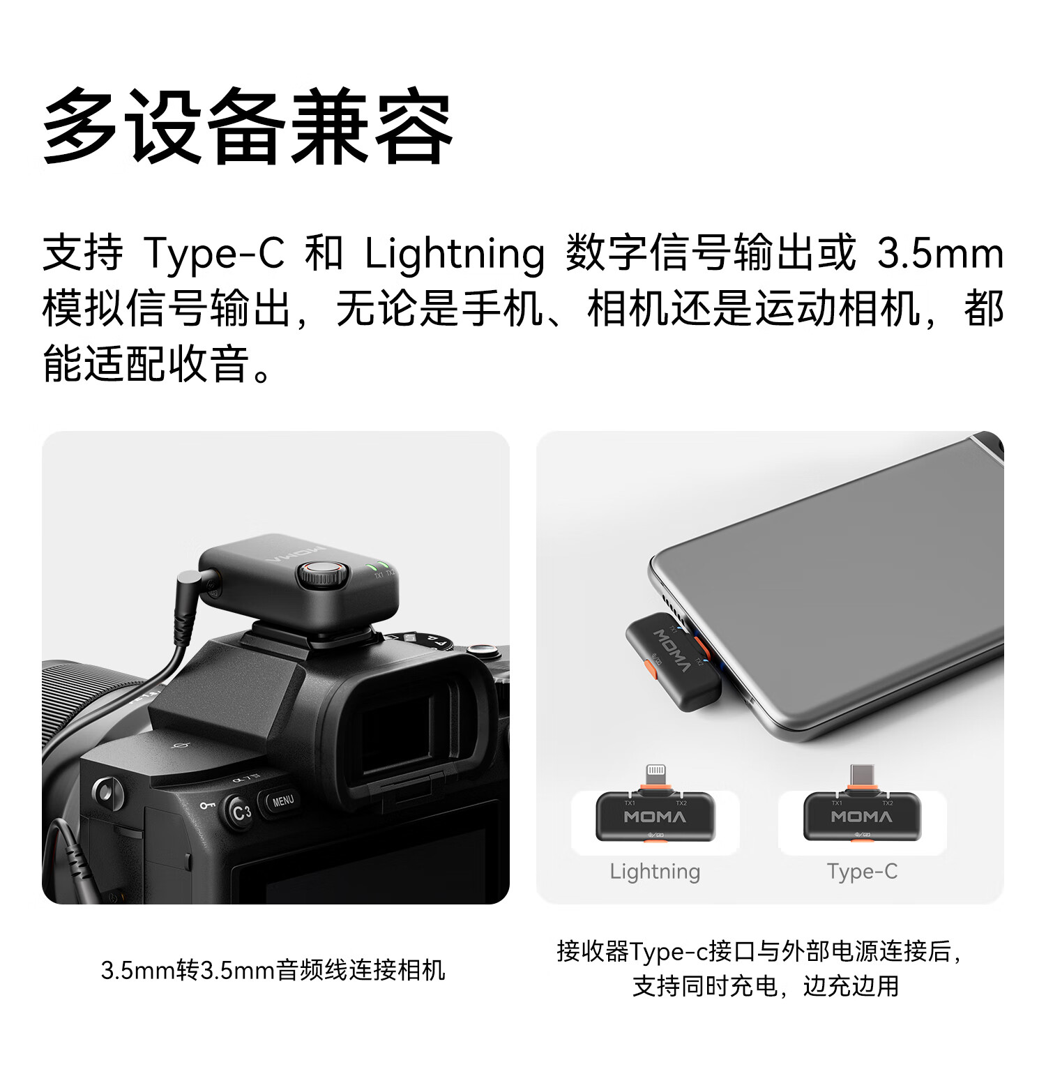 猛玛LARK M2无线领夹麦克风 直播降噪MOMA猛犸一拖二手机电脑自媒体采访拍摄收音麦话筒拾音器 【精装版】相机版+Type-C版 双接收器