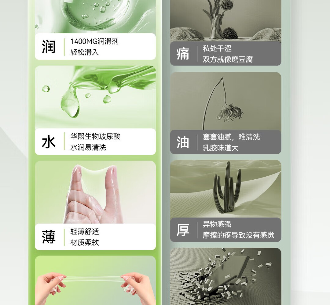 羽感【000裸入无套感】避孕套超薄1400mg玻尿酸男用安全套计生品 【比薄更薄】24只:小绿罐12只+003/12只