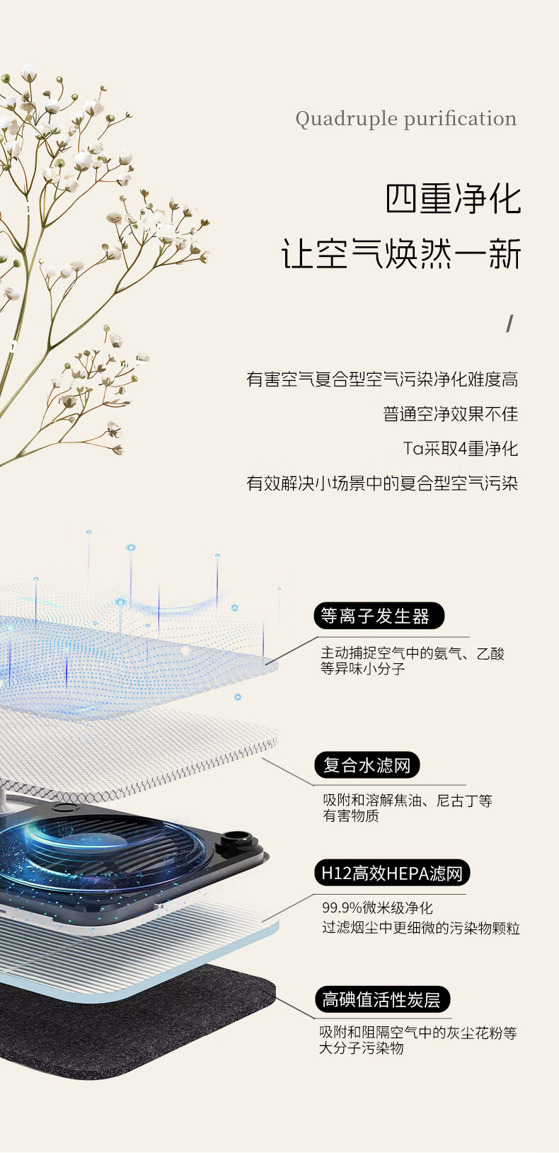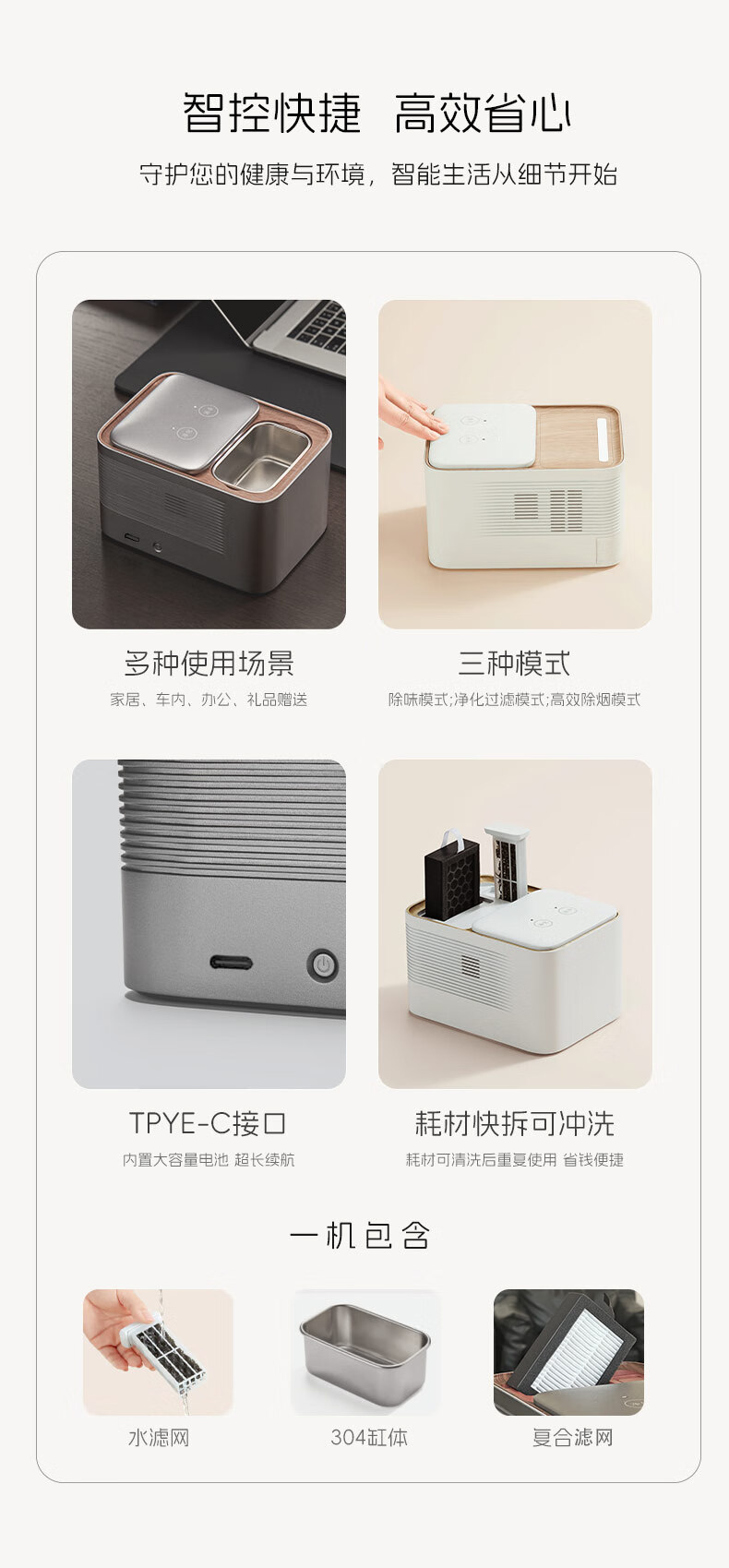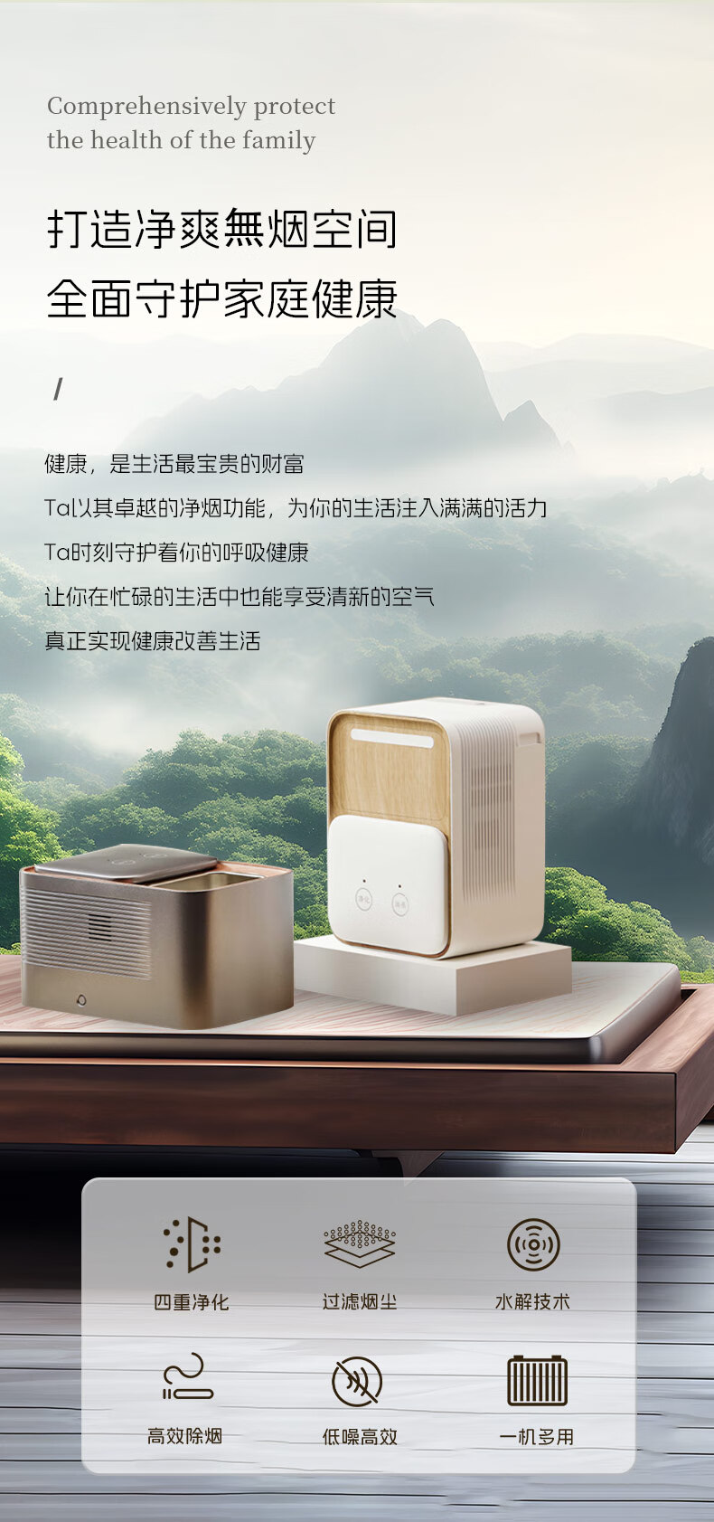 浦尔乐智能烟灰缸四重净化二手烟除尼古丁焦油空气净化器送领导送男友车载家用防飞灰除烟净化 秘银色礼盒装[含三套滤芯+烟灰缸]