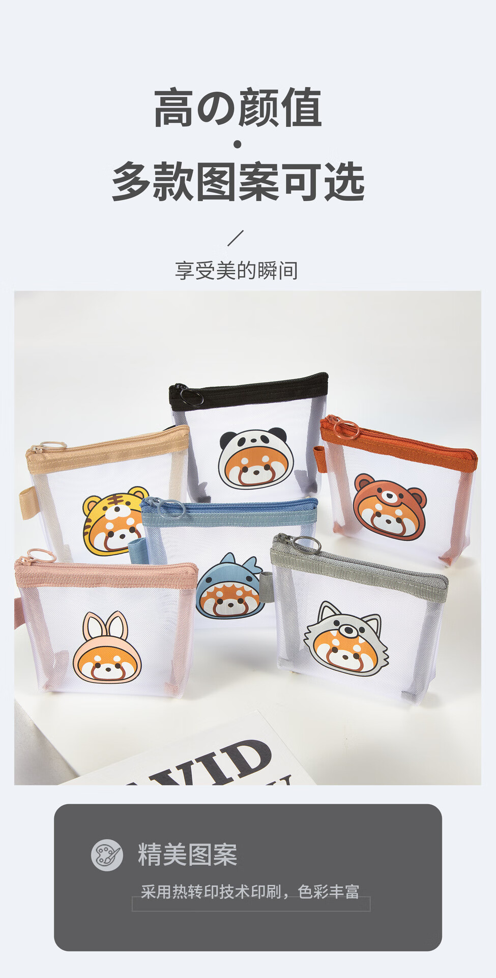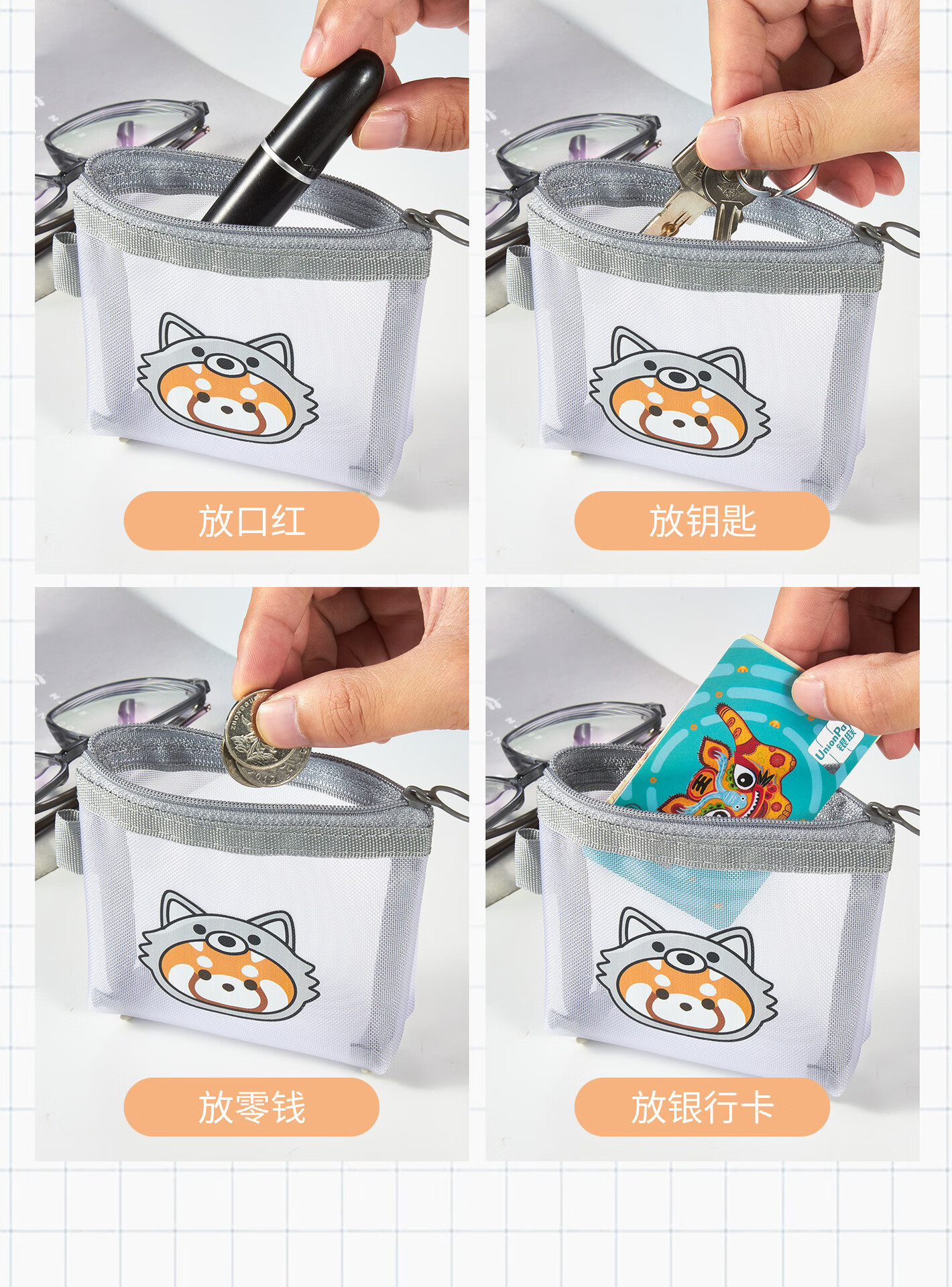 其他【精选好礼】小熊猫收纳袋透明网纱零钱袋耳机数据线收纳包随身钥 小兔子