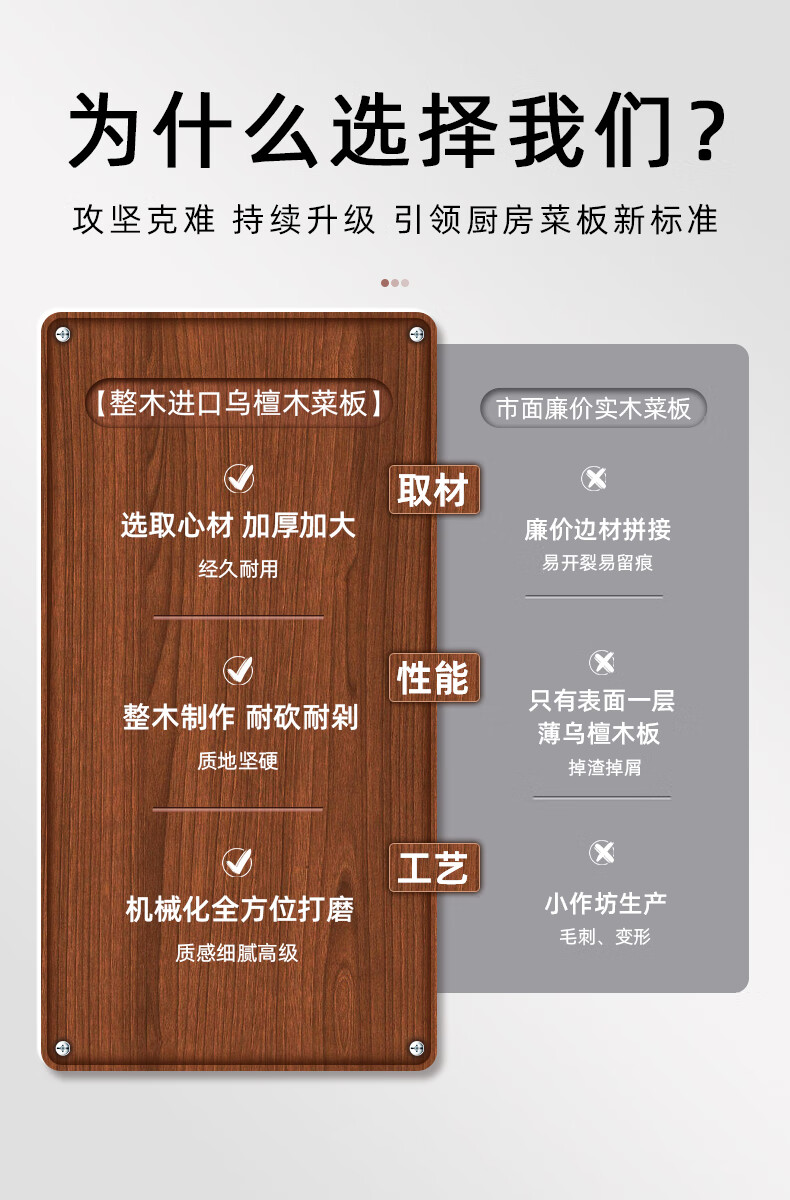 GNNDXX德国厨房菜板乌檀木整木切菜板实木砧板抗菌防霉家用厨房专用案板 【特厚乌檀木—整木】 50*35*3cm