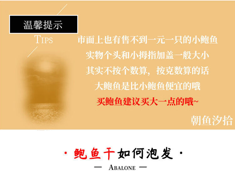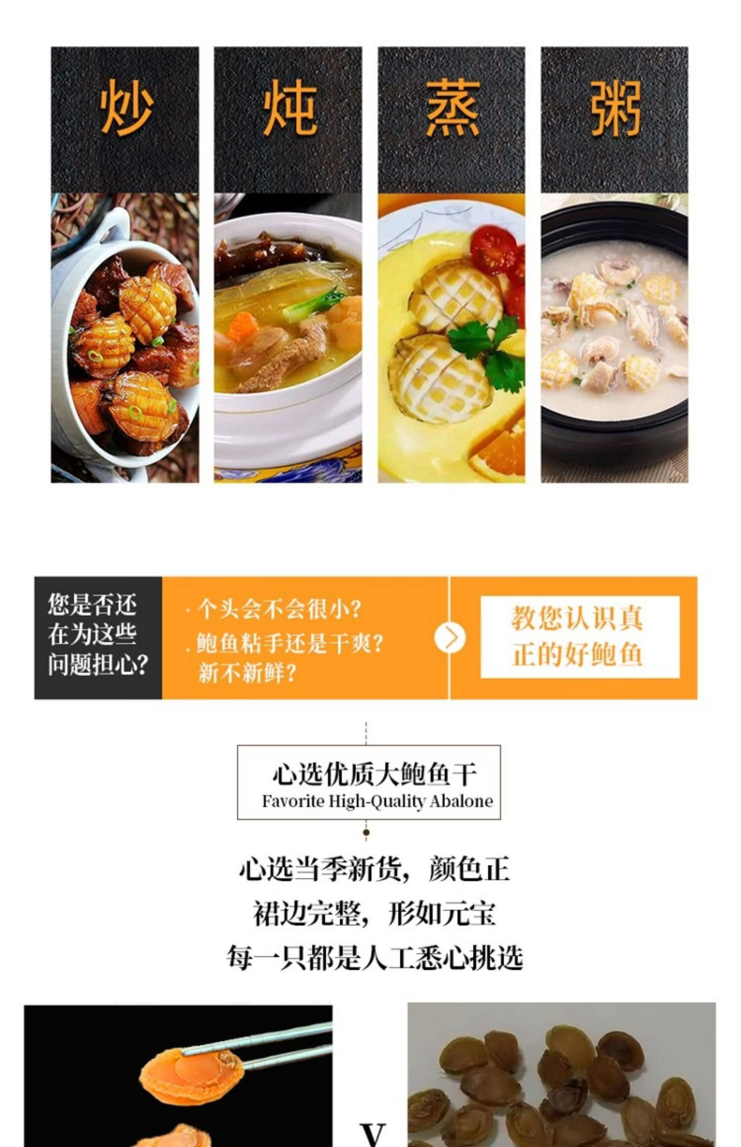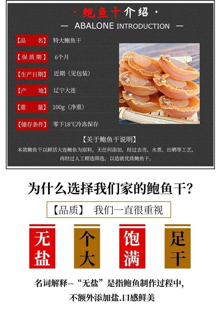 朝鱼汐拾鲍鱼干特大大连黄金淡干佛跳墙原材料50头干货粽子小鲍仔100g 100-101只1斤