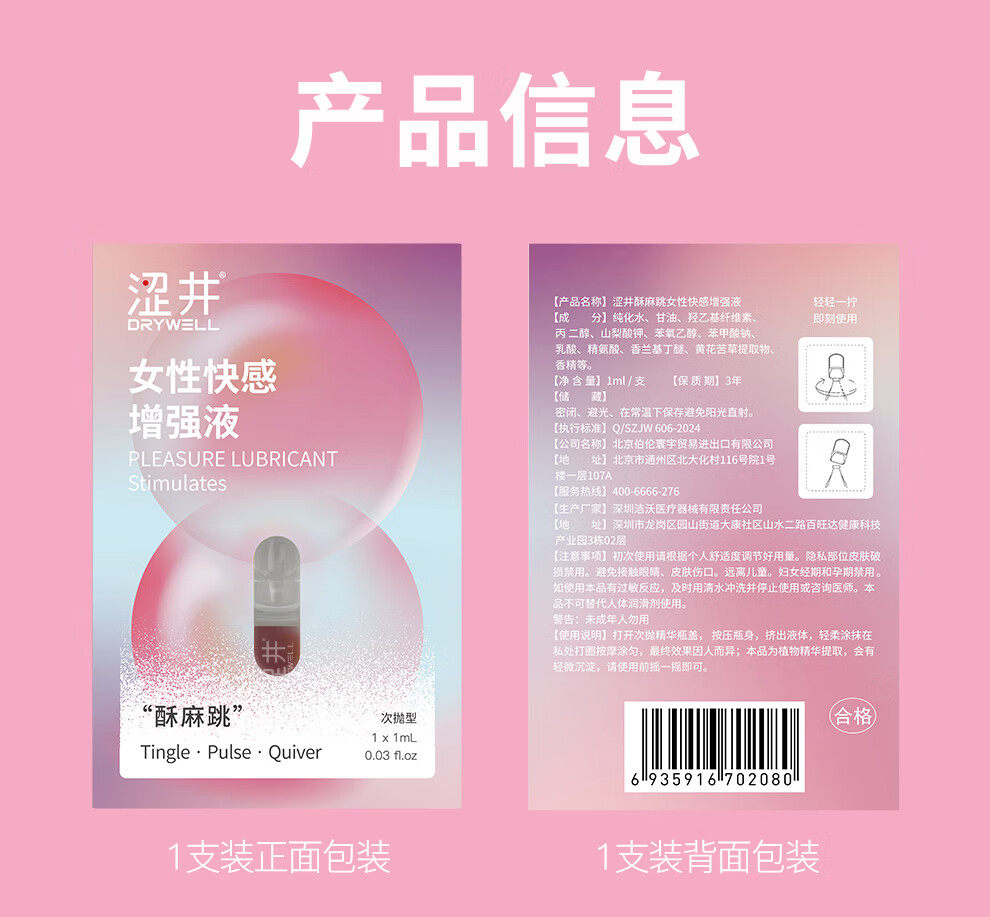 涩井新款润滑液女用增强液震颤酥麻成人液体跳蛋震感因子增强液 1ml