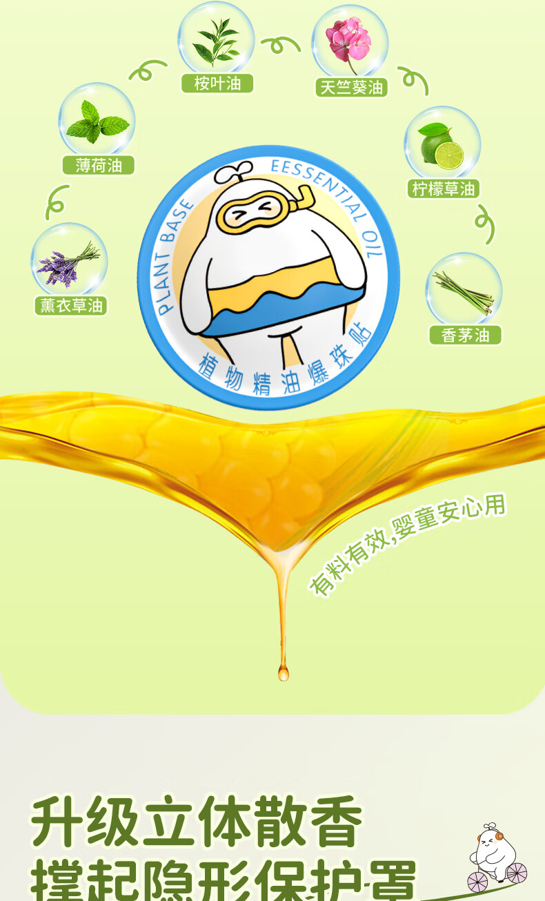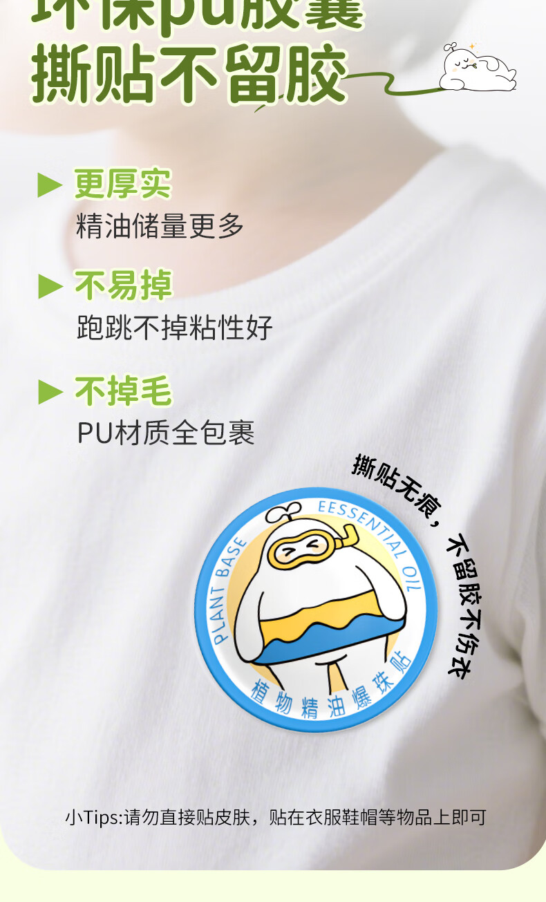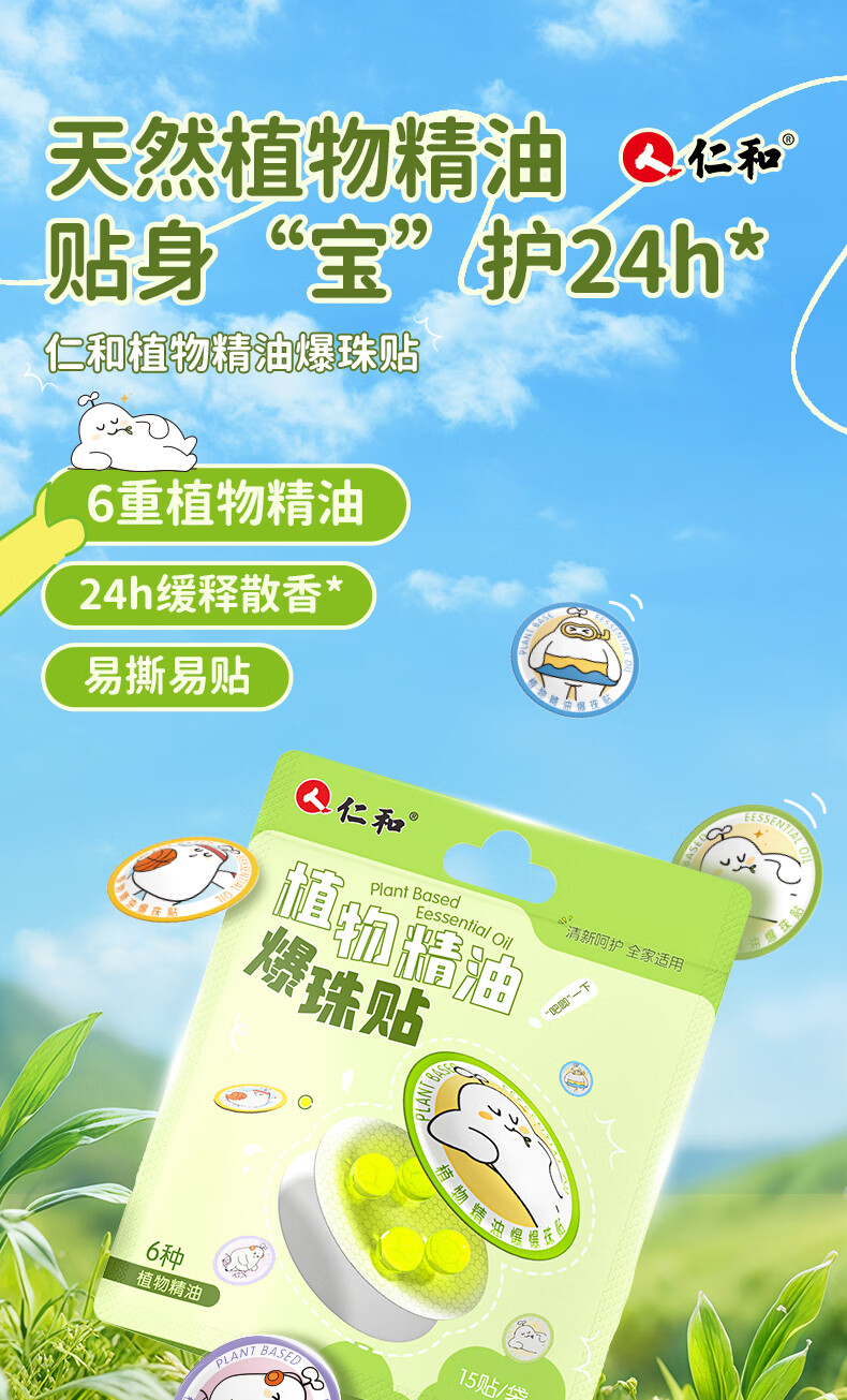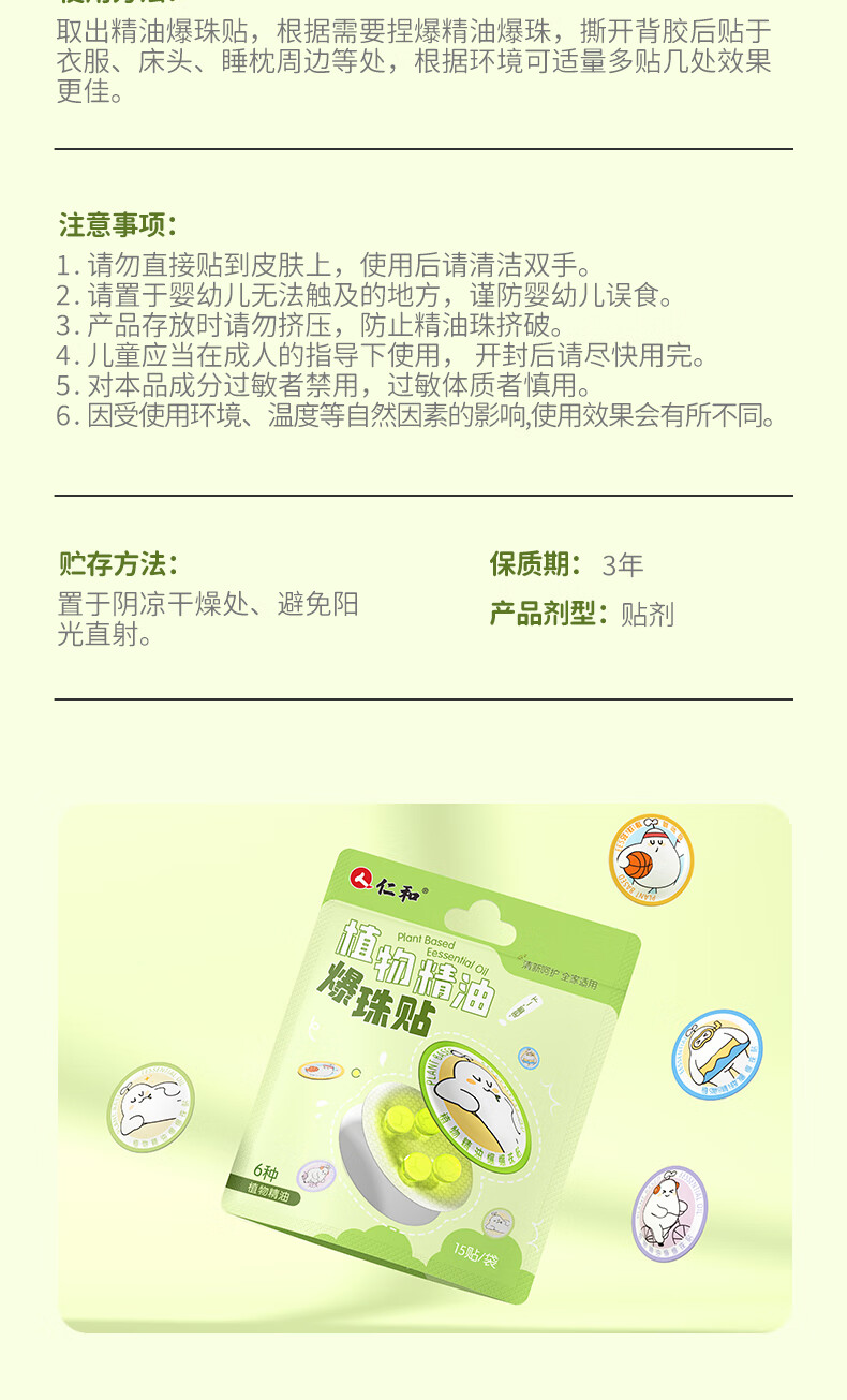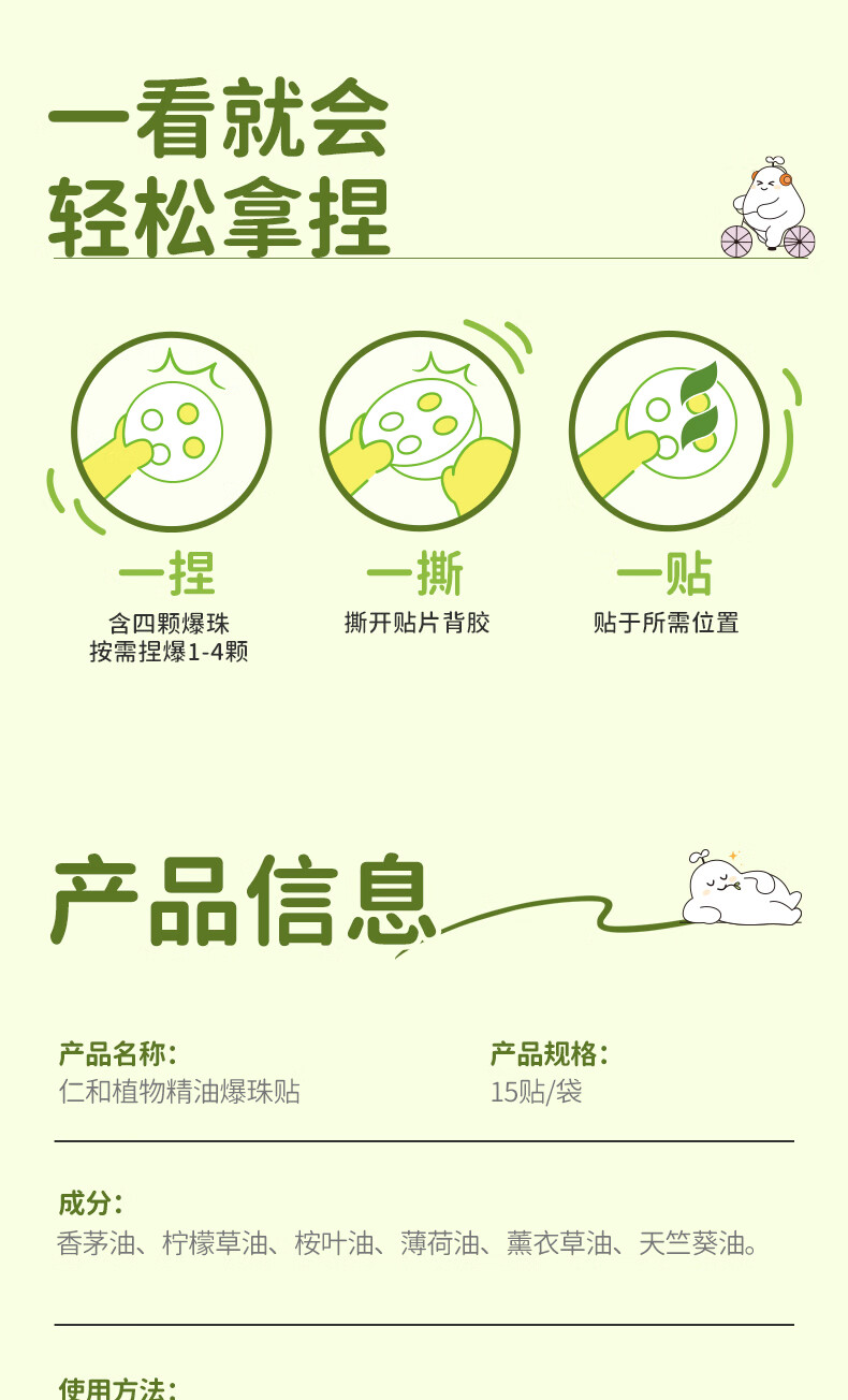 仁和精油爆珠贴痱子水儿童防叮咬贴婴儿户外随身防护贴宝宝防蚊液易撕 2袋【15贴/袋到手30贴】