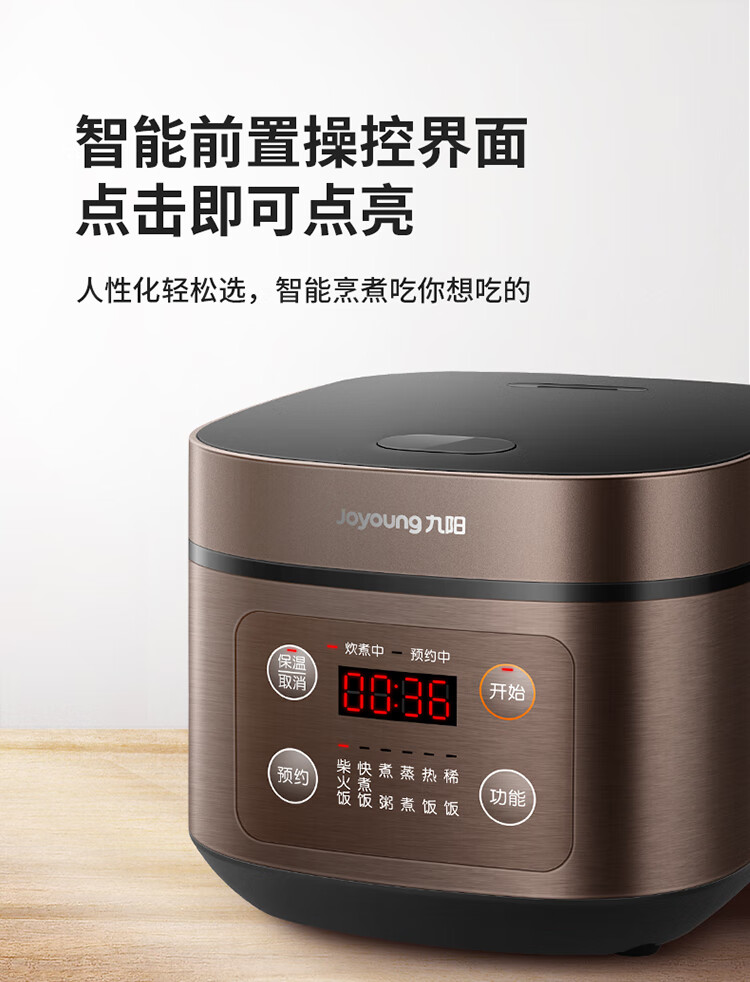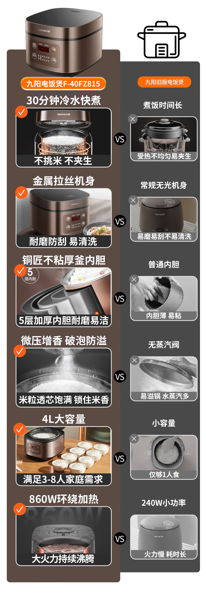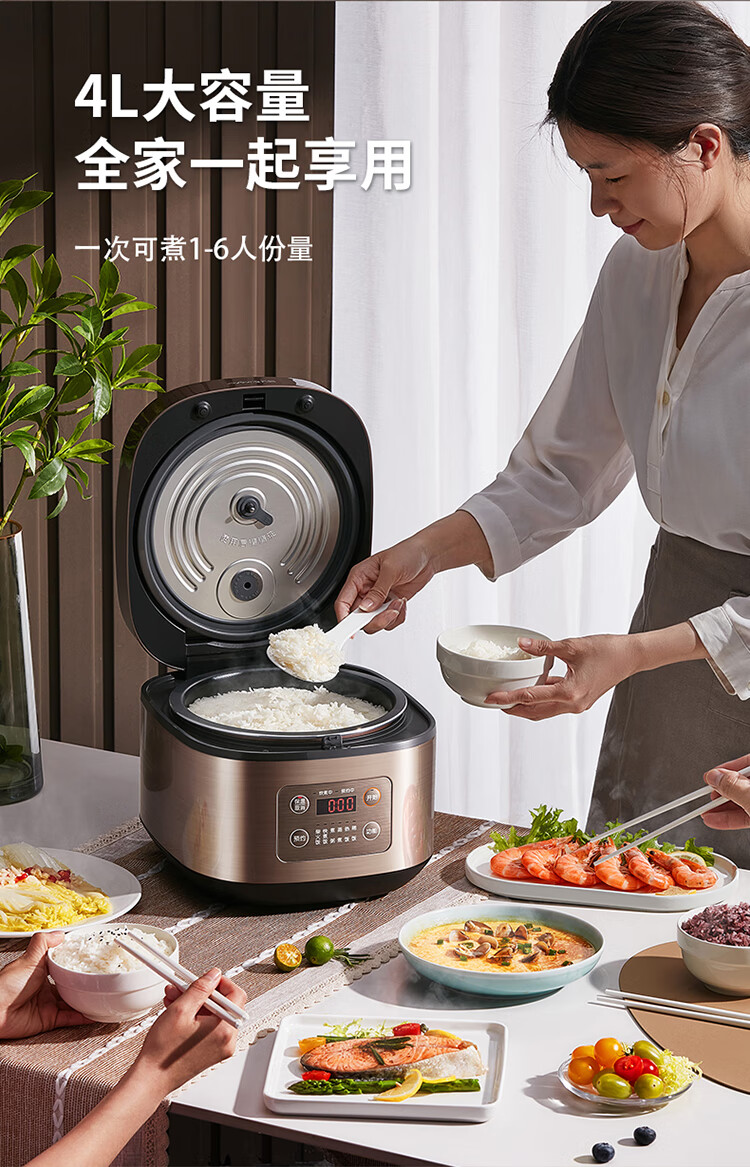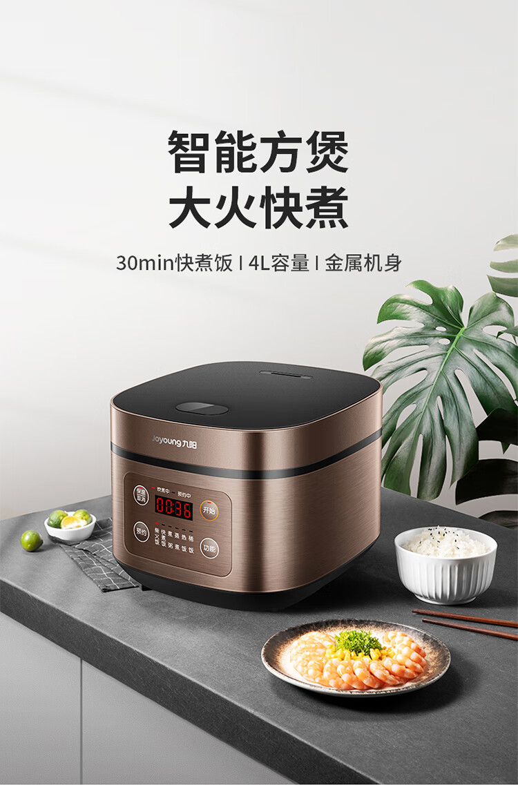 九阳(Joyoung)30分钟快煮饭大火力柴火饭4升家庭容量3~4人电饭煲电饭锅多功能微压焖煮方煲F-40FZ815