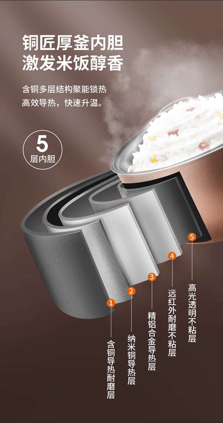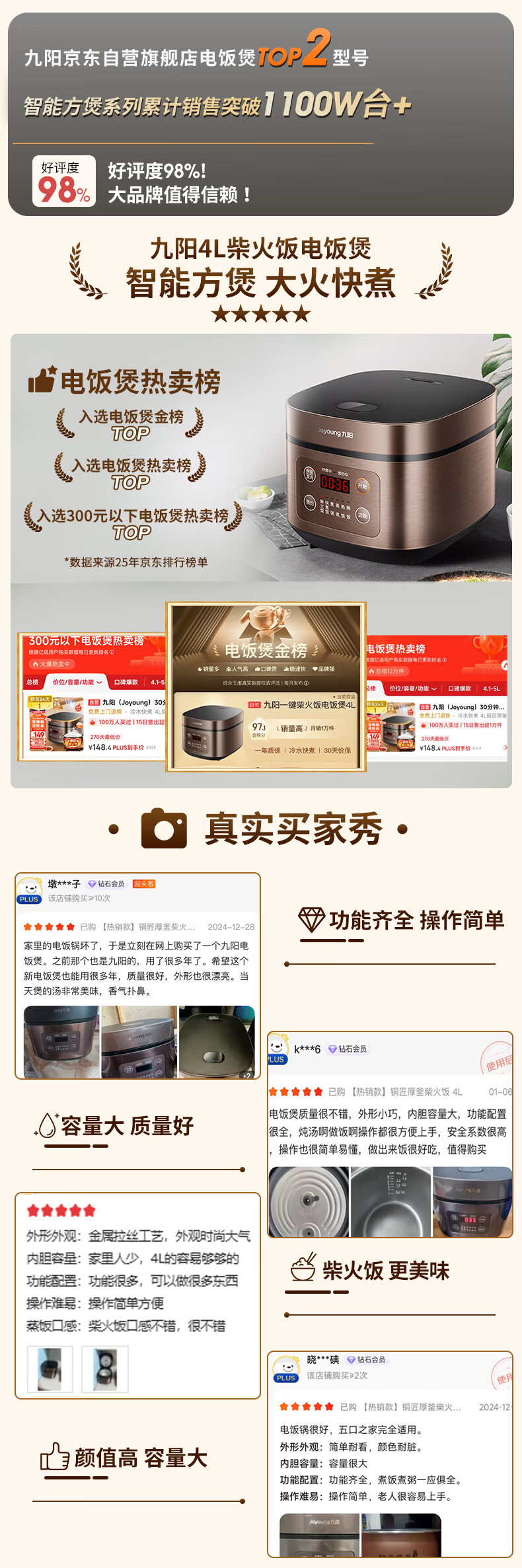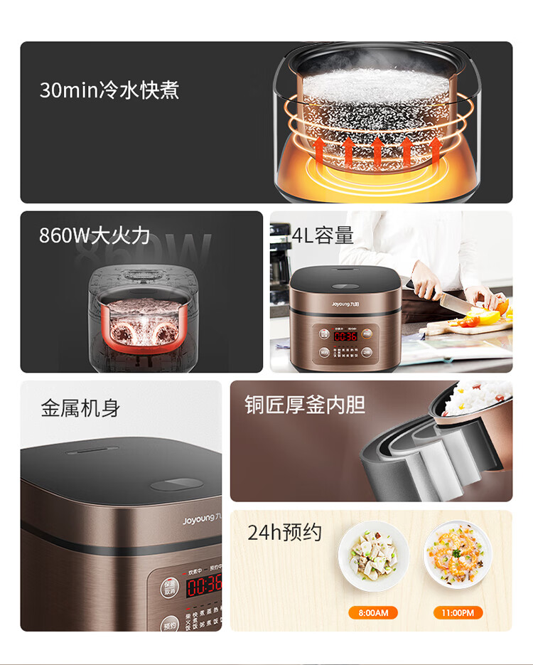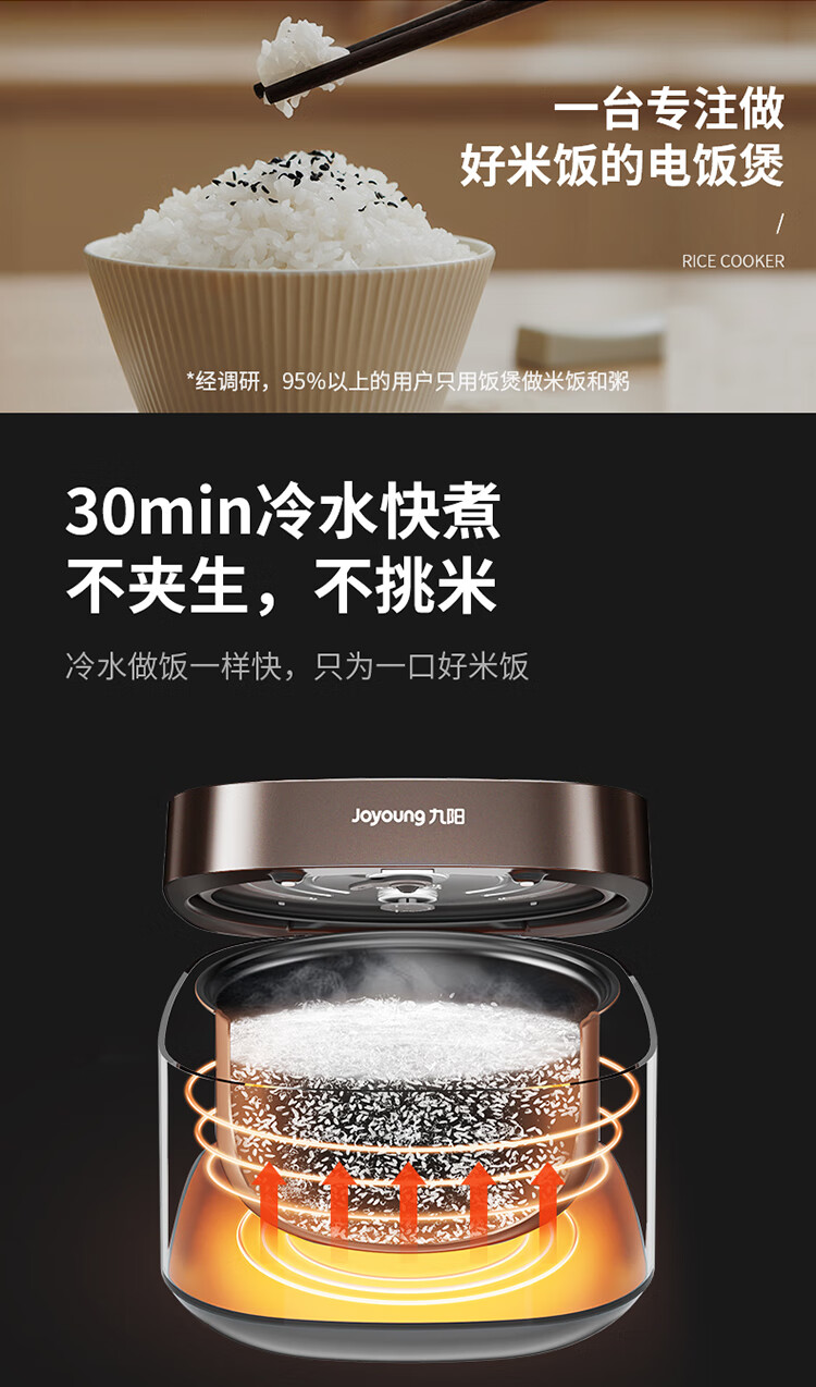 九阳(Joyoung)30分钟快煮饭大火力柴火饭4升家庭容量3~4人电饭煲电饭锅多功能微压焖煮方煲F-40FZ815