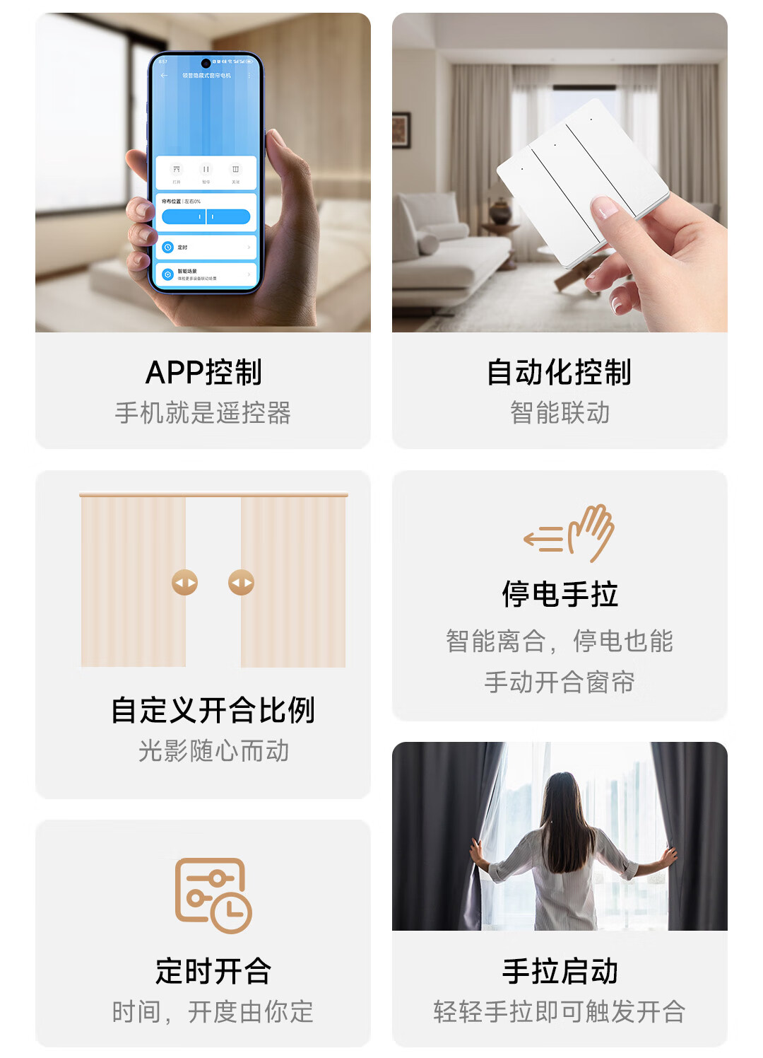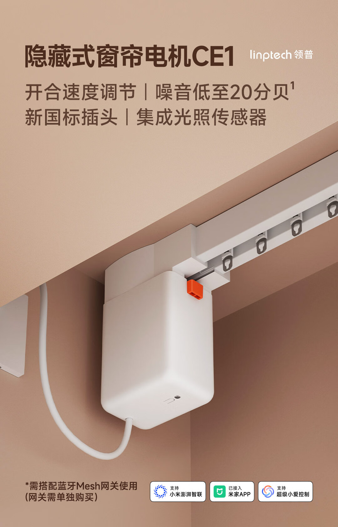 领普CE1窗帘电机蓝牙Mesh2.0智能电动窗帘轨道静音家用自动隐藏式 CE1单电机(不含轨道和安装)