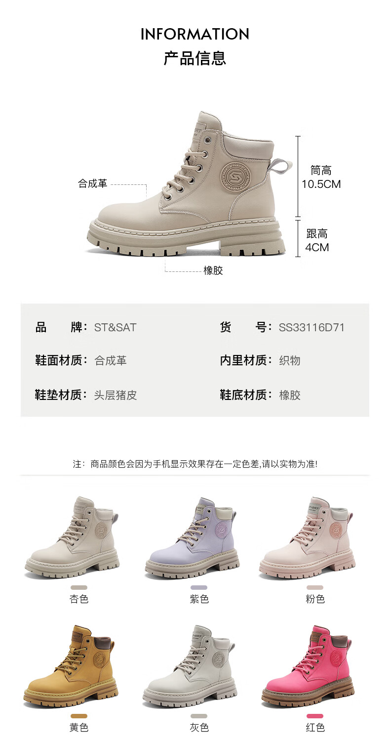 星期六驼色厚底增高马丁靴女款2025新款秋季美拉德潮流百搭靴子女 驼色 【四季百搭】跟高5cm 35 225
