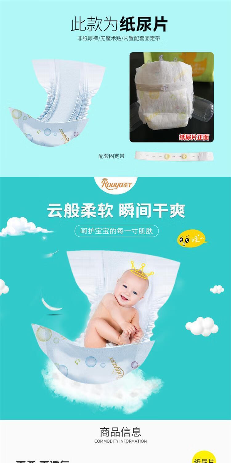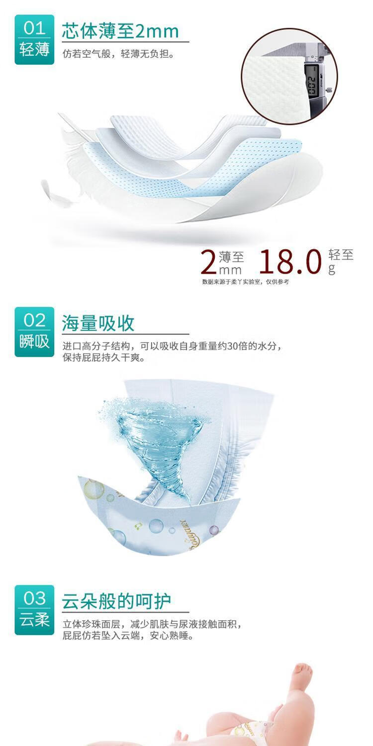 AILUKI柔丫纸尿片超薄干爽透气男女宝宝通用全芯体尿不湿XL码44片加大号 M码尿片