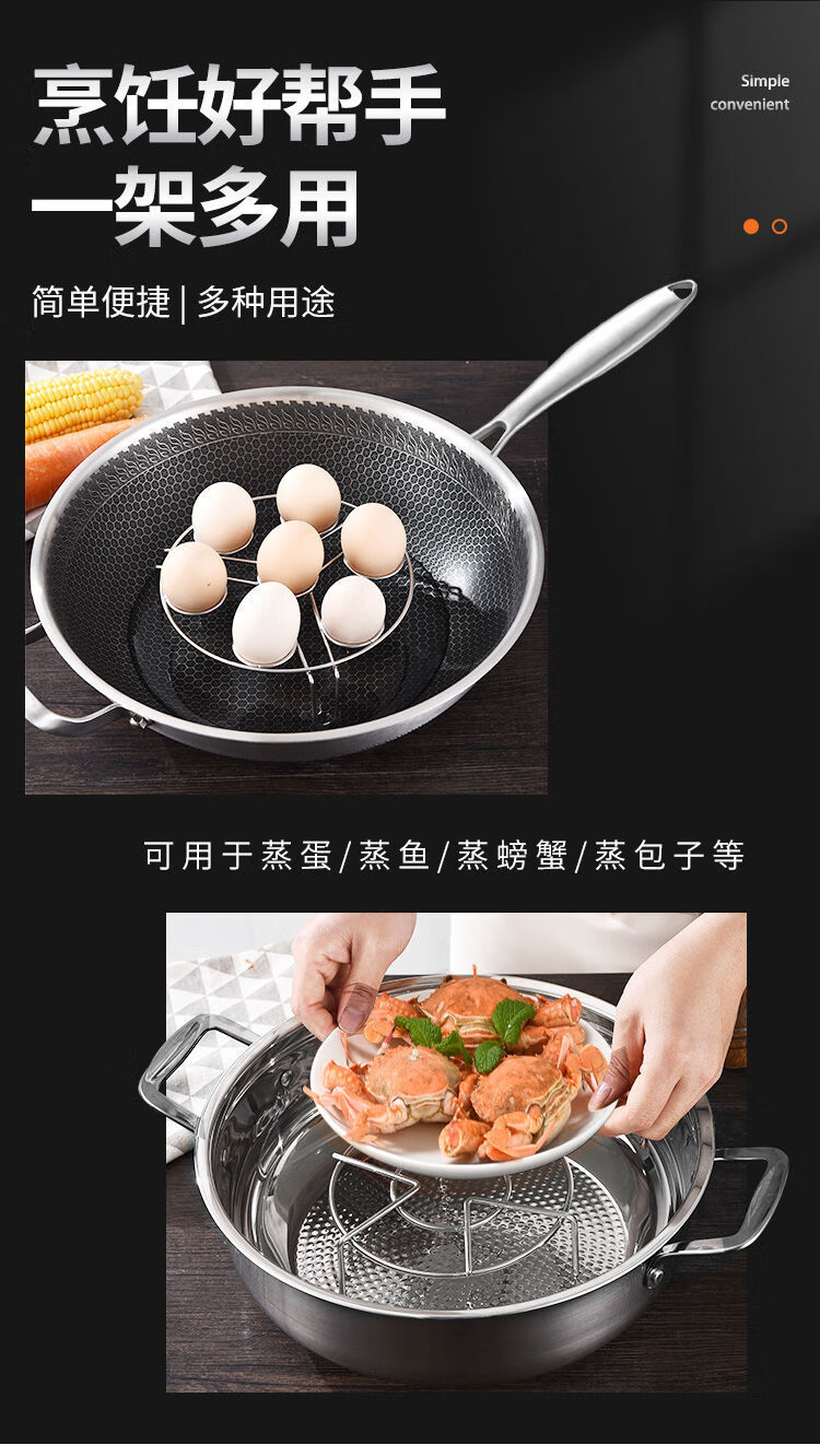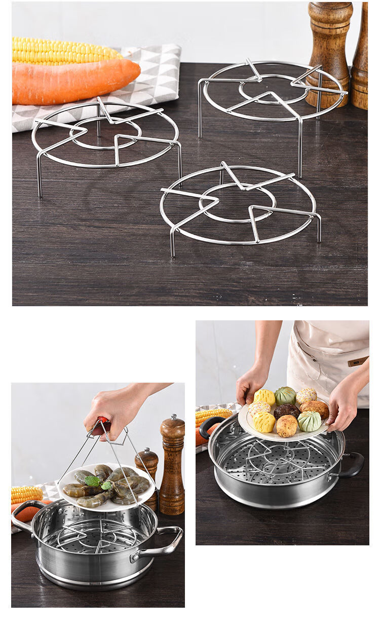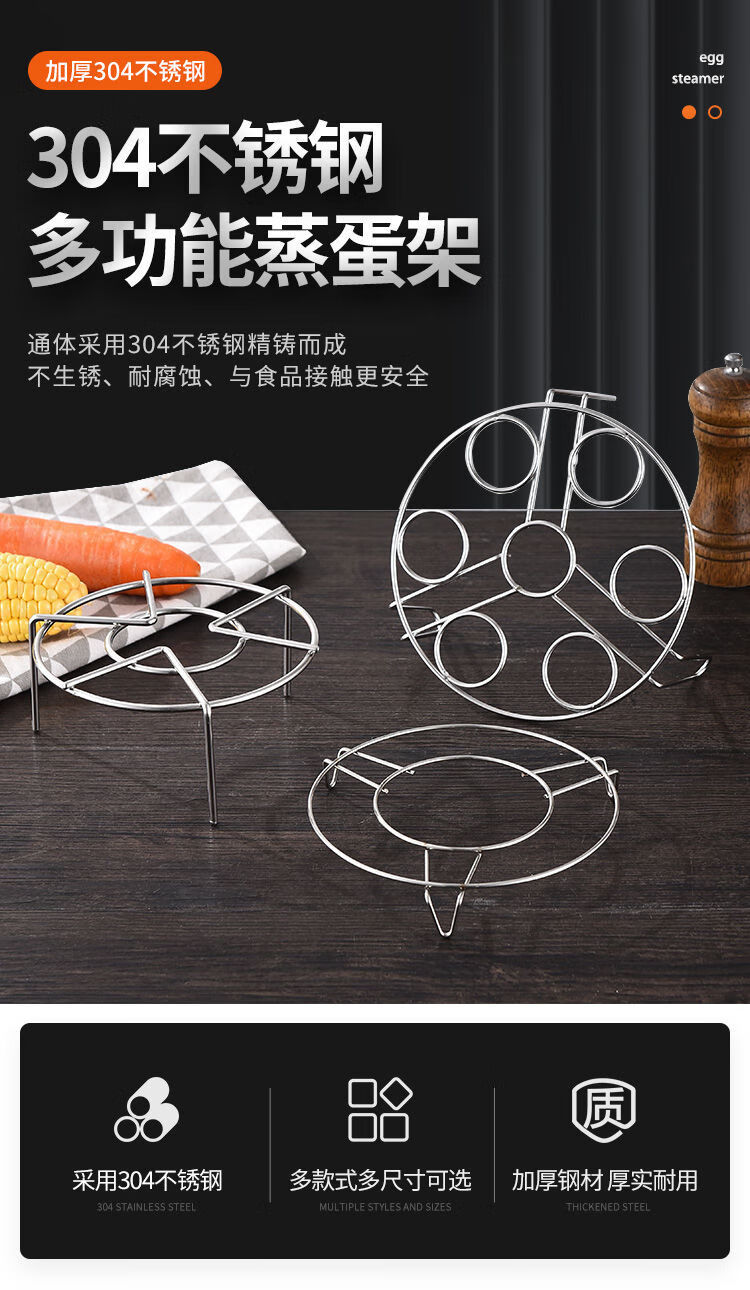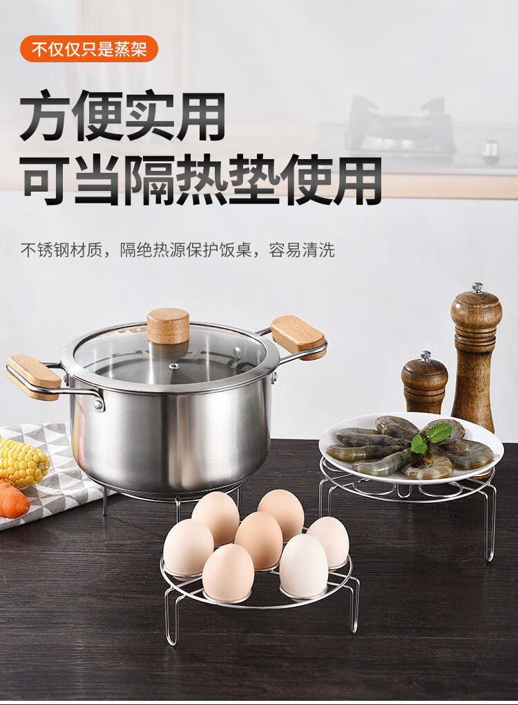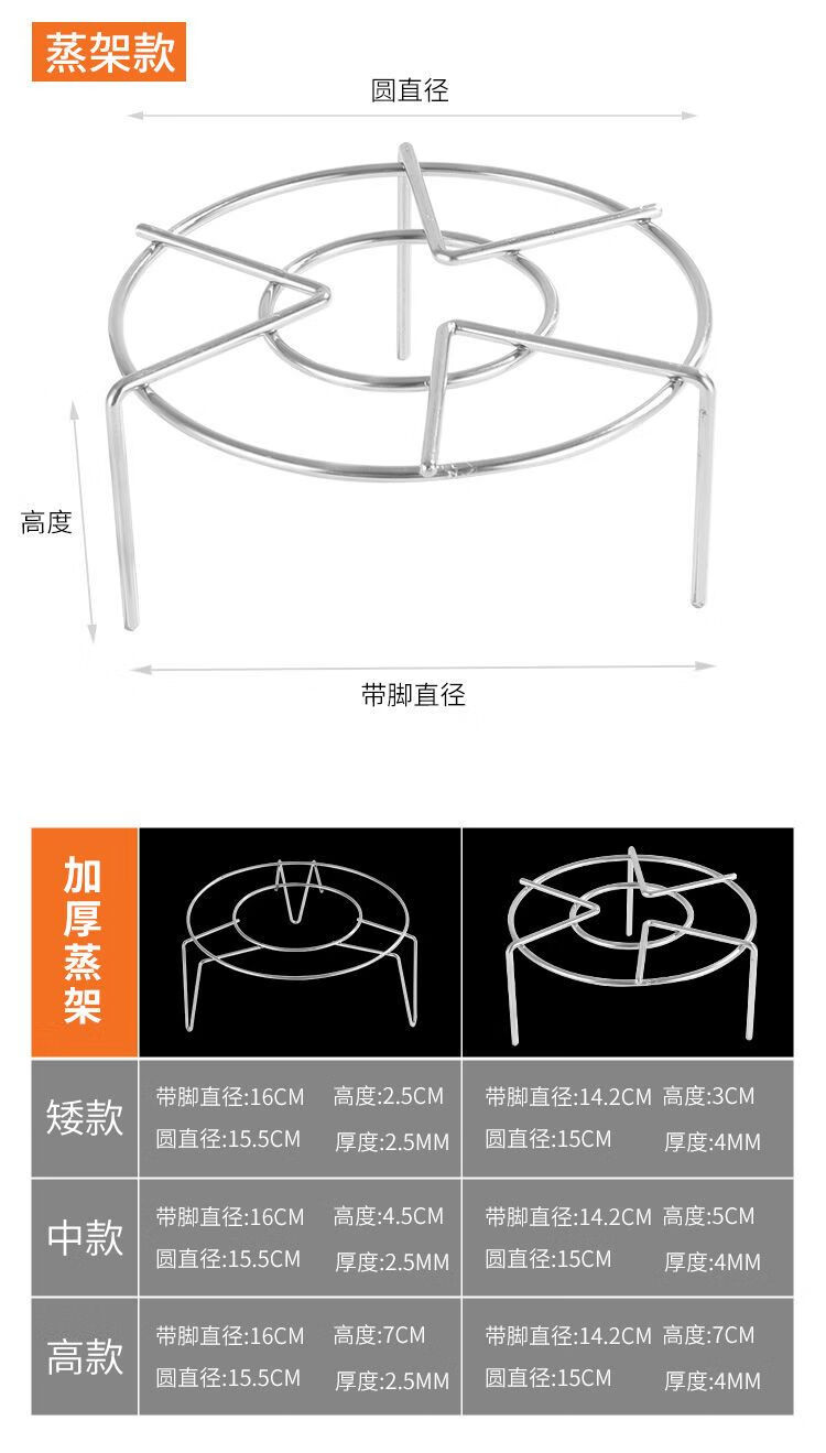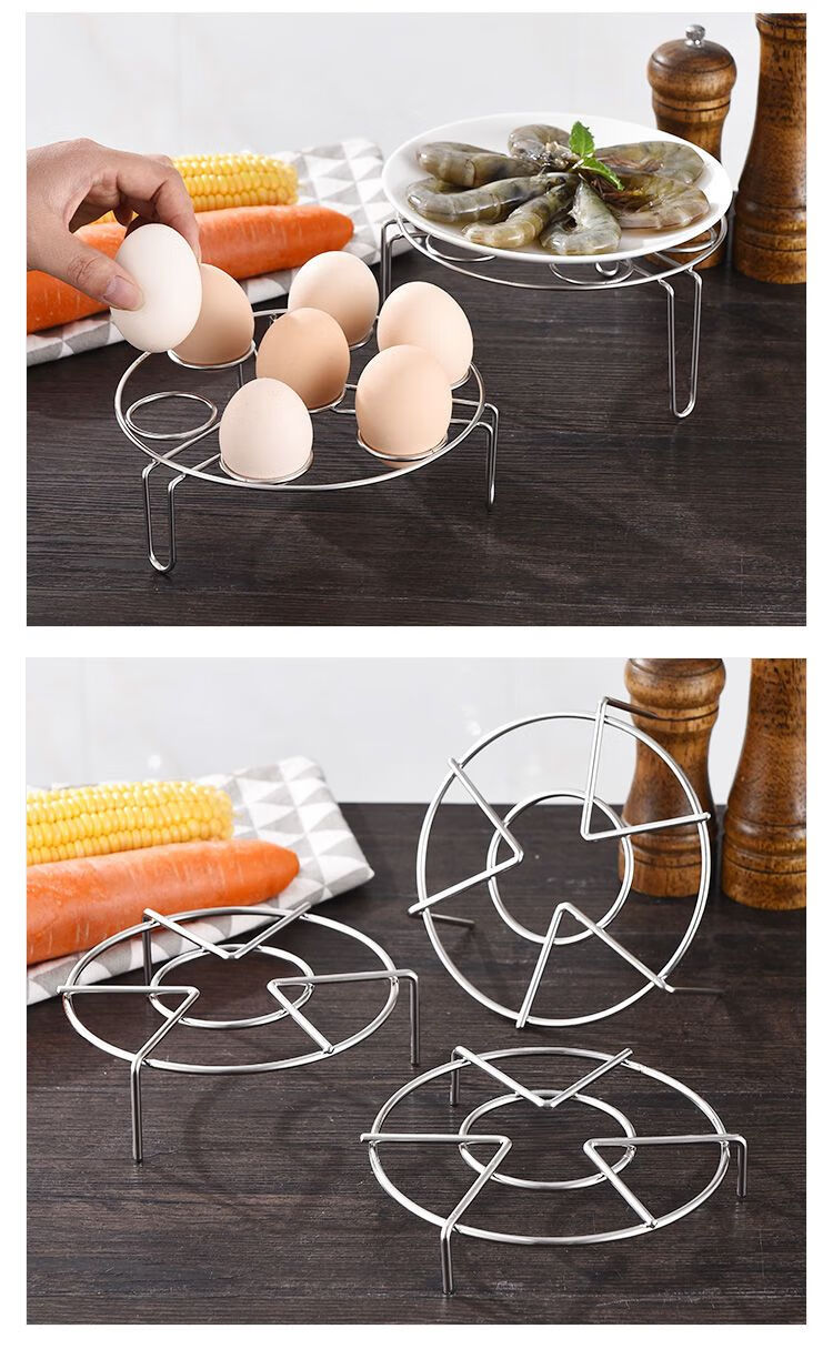 LZJV304加粗加厚不锈钢家用多功能支架高低脚蒸架蒸鸡蛋架隔热架蒸饭 鸡蛋款加厚17.5+5