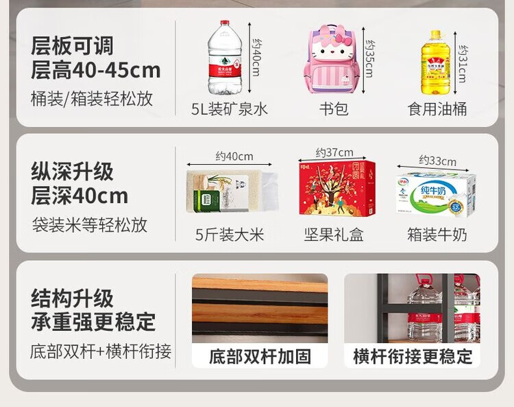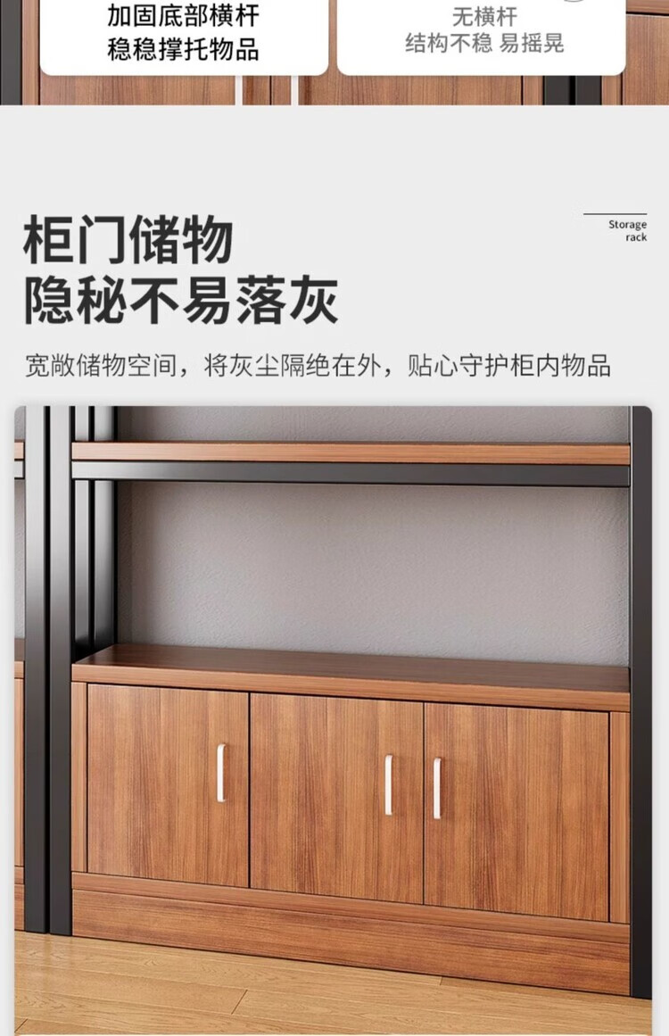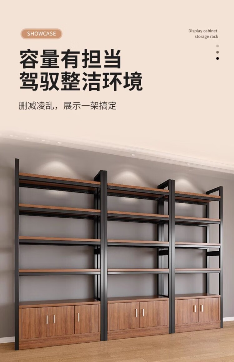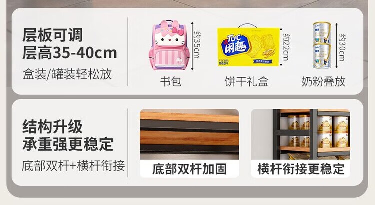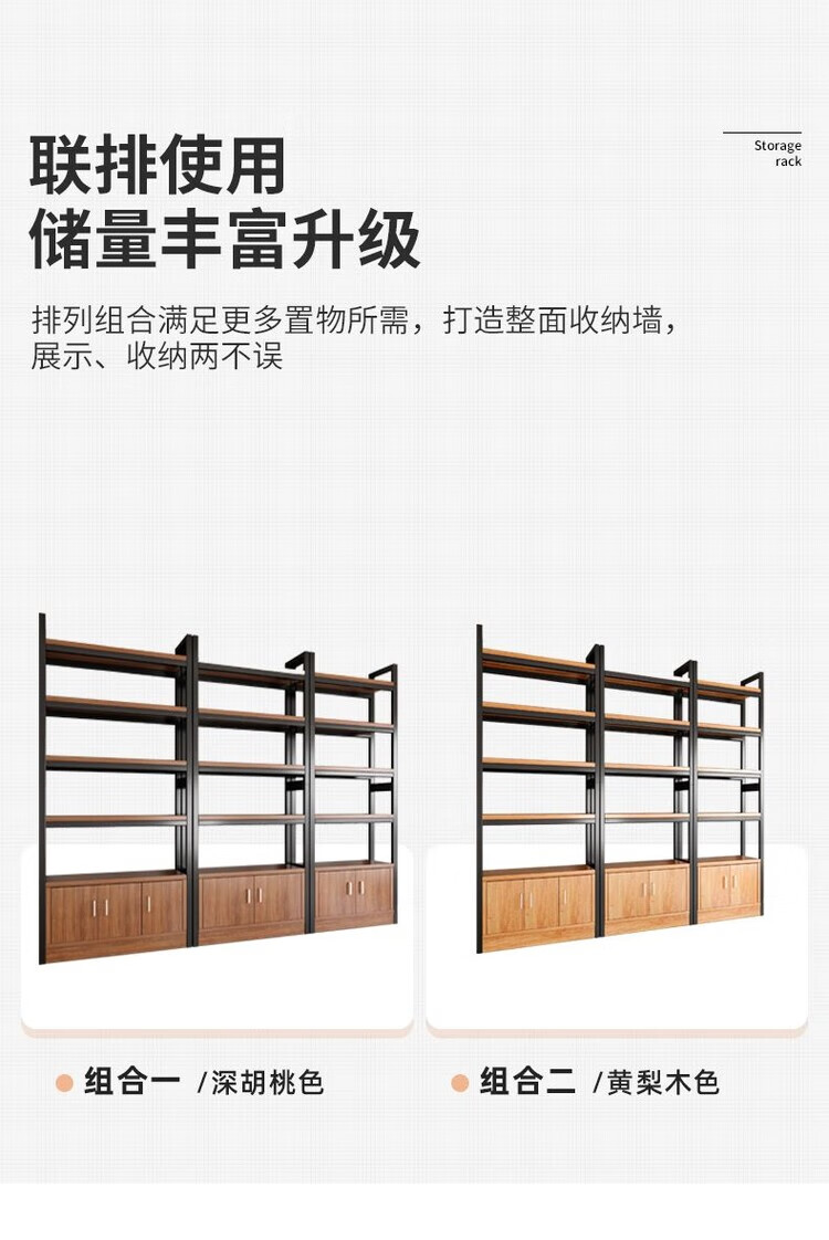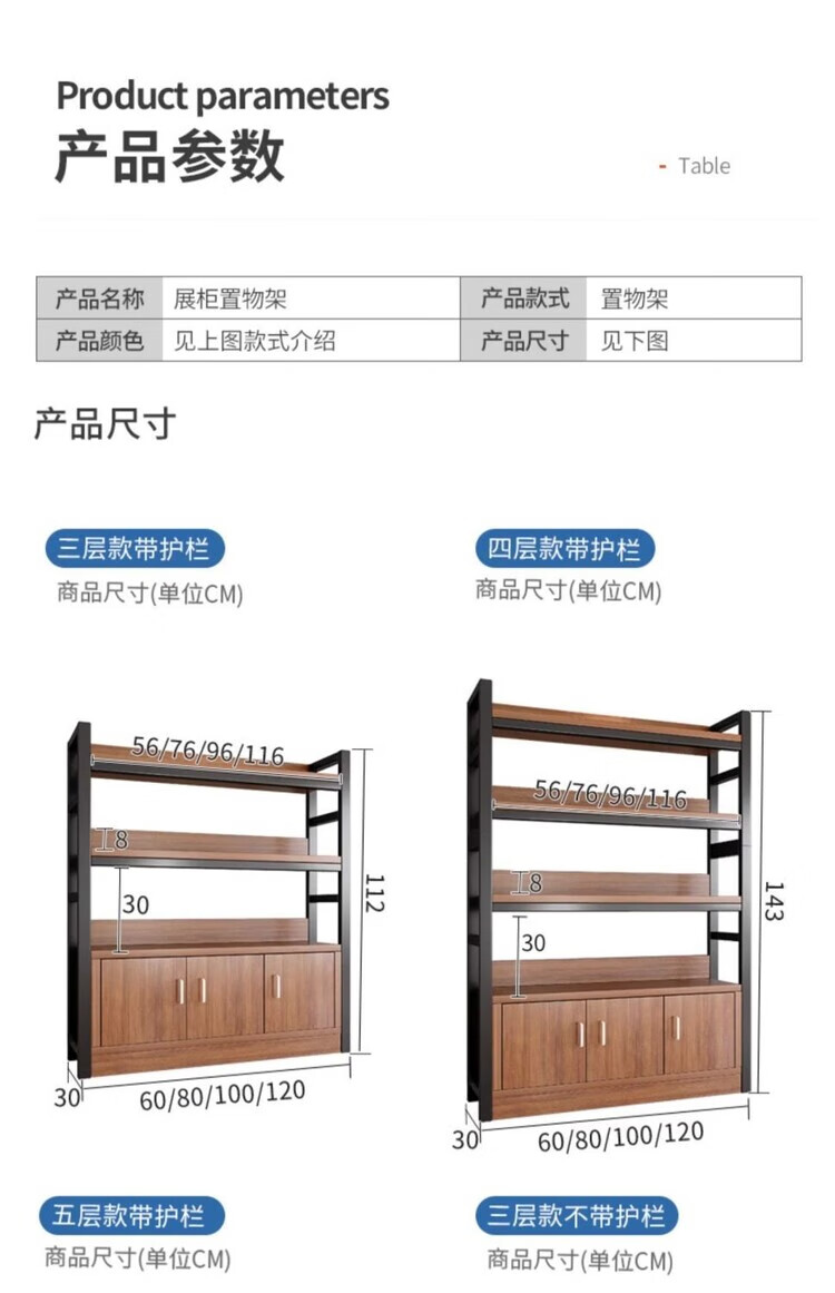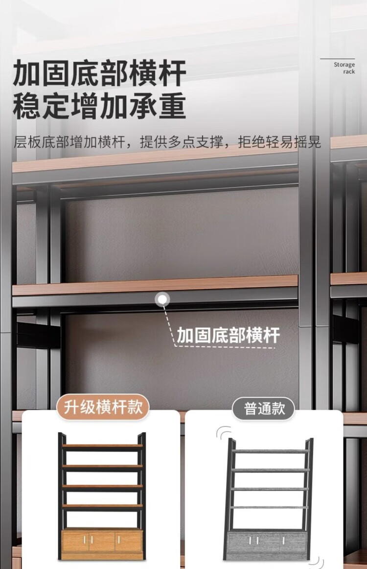 弘星隆超市货架置物架多层收纳架家用架子展示架仓库阳台大储物架化妆品 【升级侧边护栏】深胡桃+黑架三层80CM