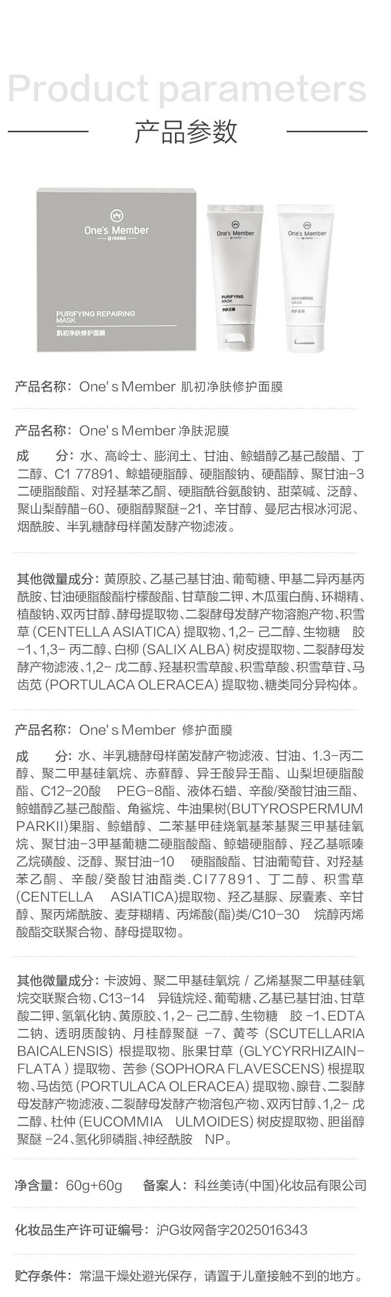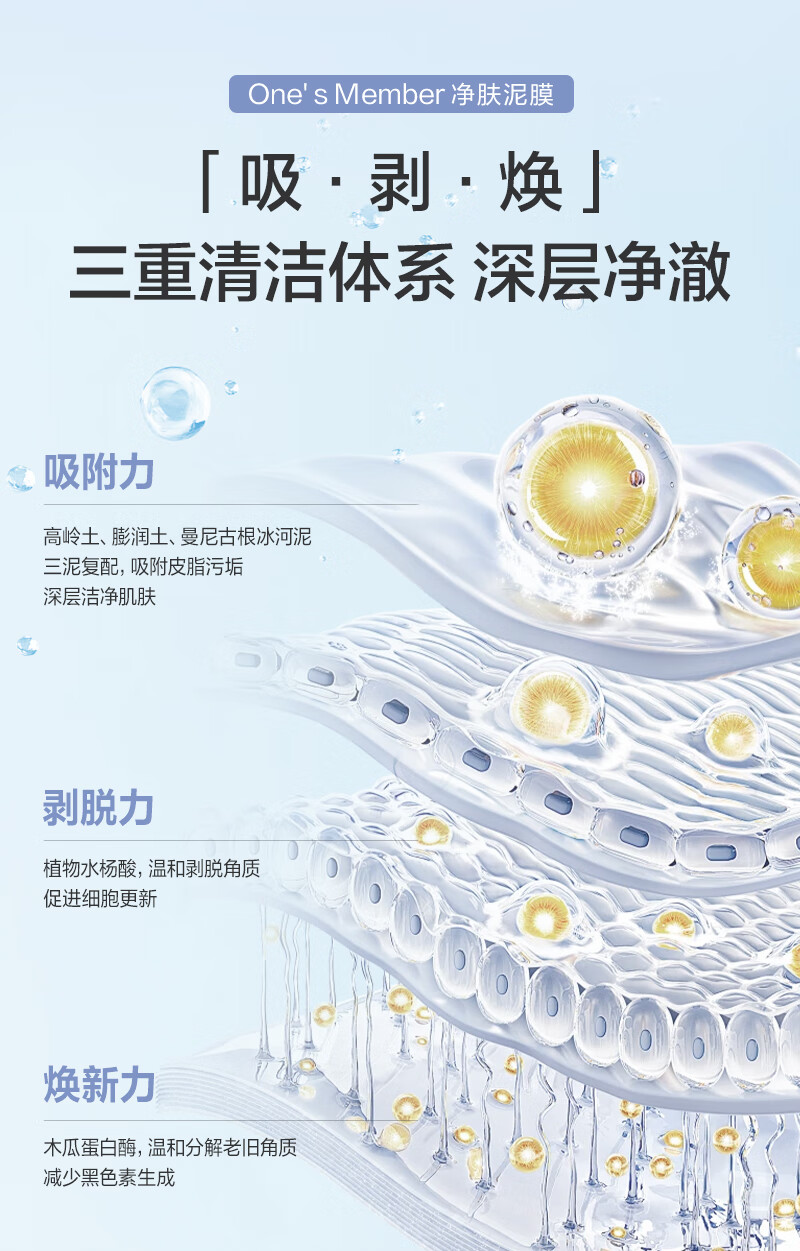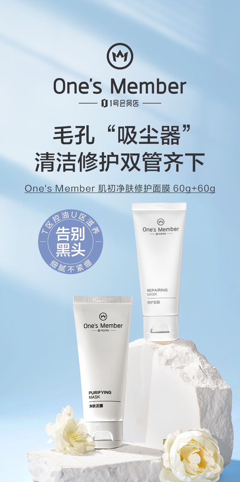 1号会员店(One's Member)肌初净肤修护面膜60g+60g 泥膜控油去黑头收缩毛孔补水修护