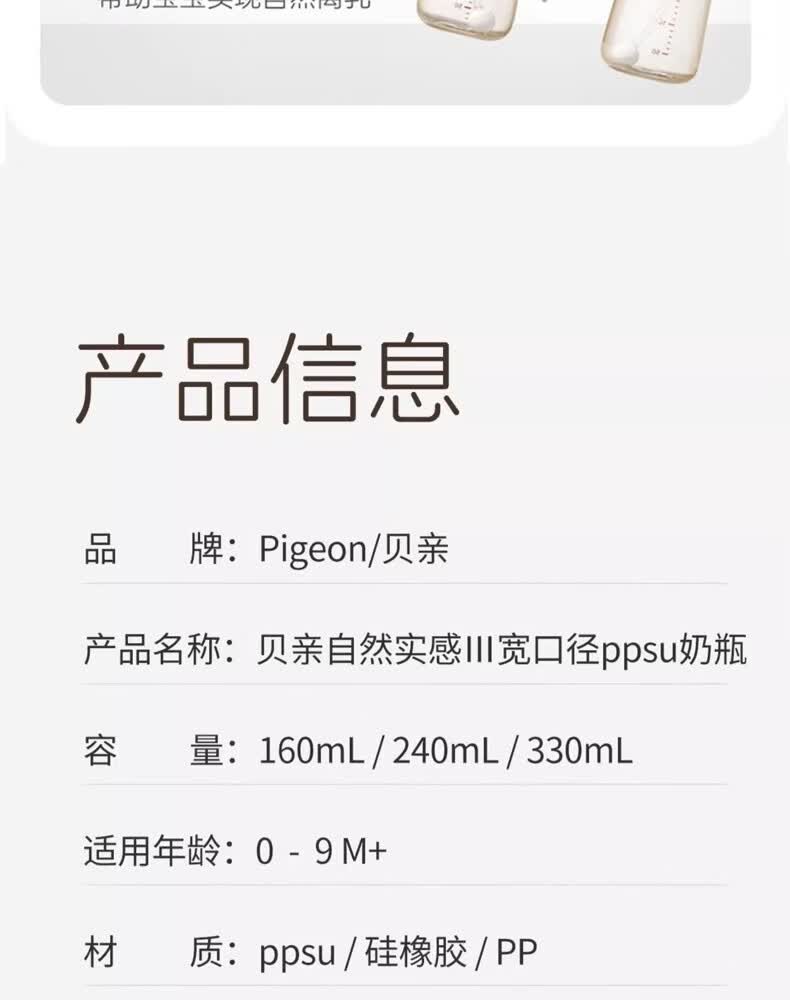 贝亲自然实感III宽口径PPSU奶瓶160mL(SS号奶嘴)