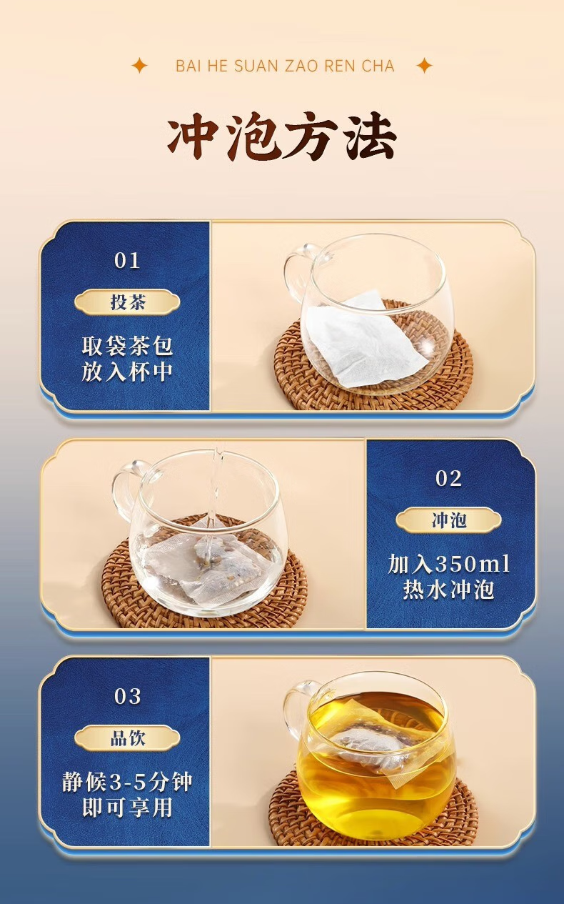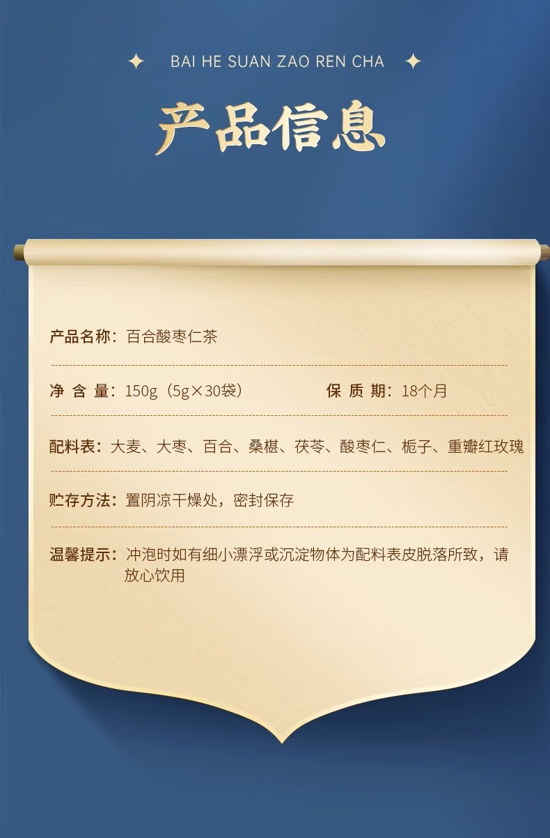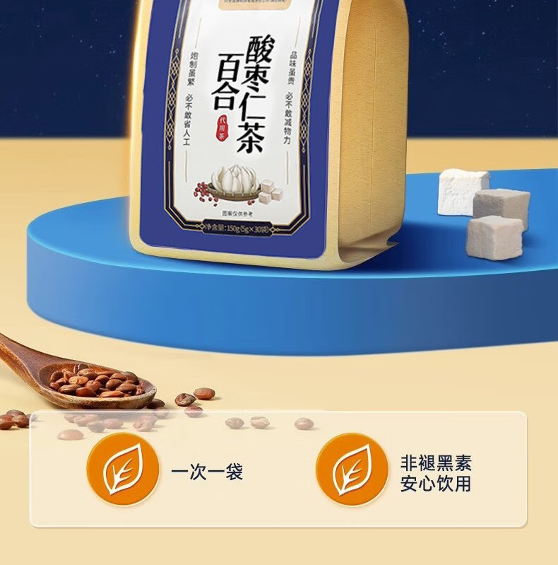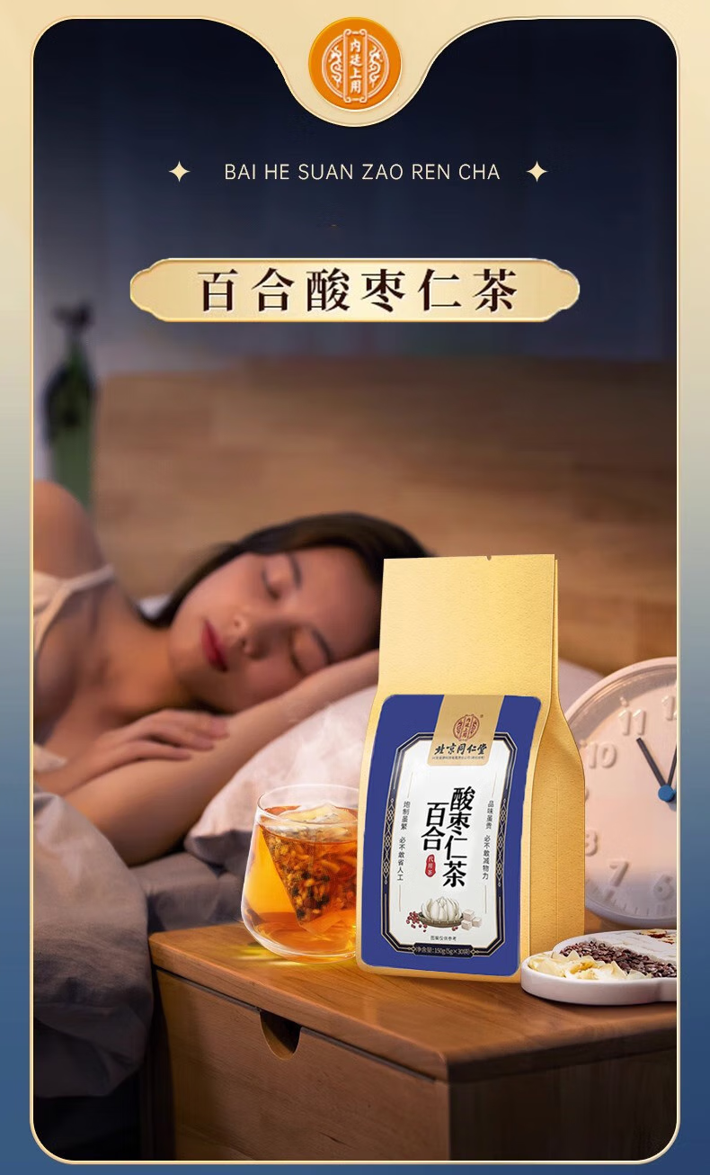 北京同仁堂百合酸枣仁茶失眠多梦改善睡眠养生茶睡眠茶安神茶 【1袋试饮装】(5g*30包)/袋